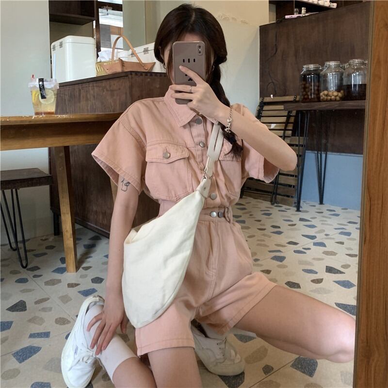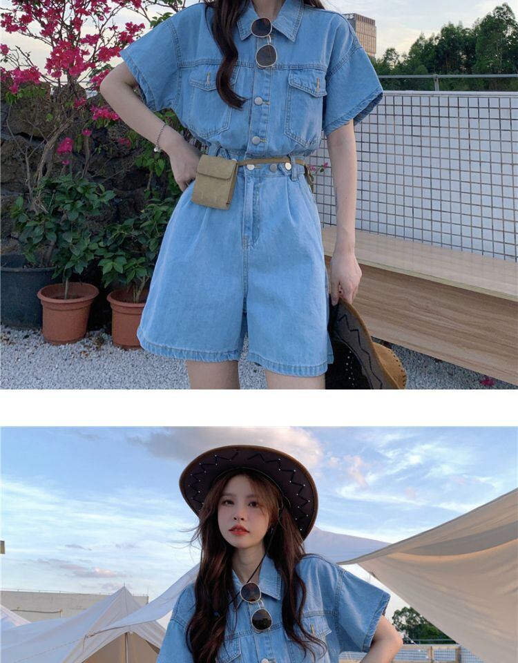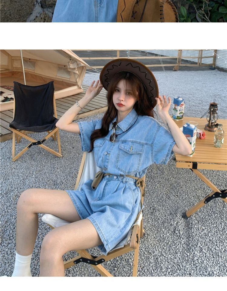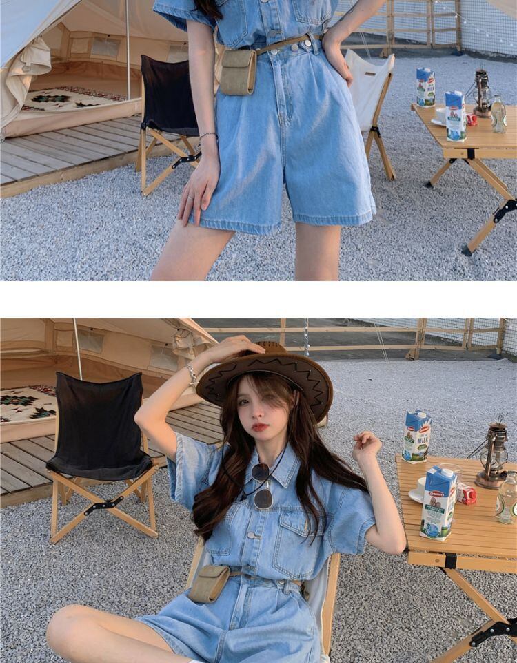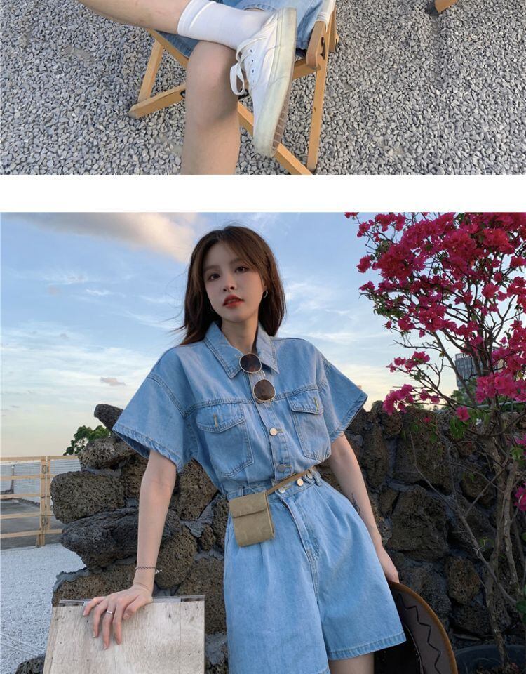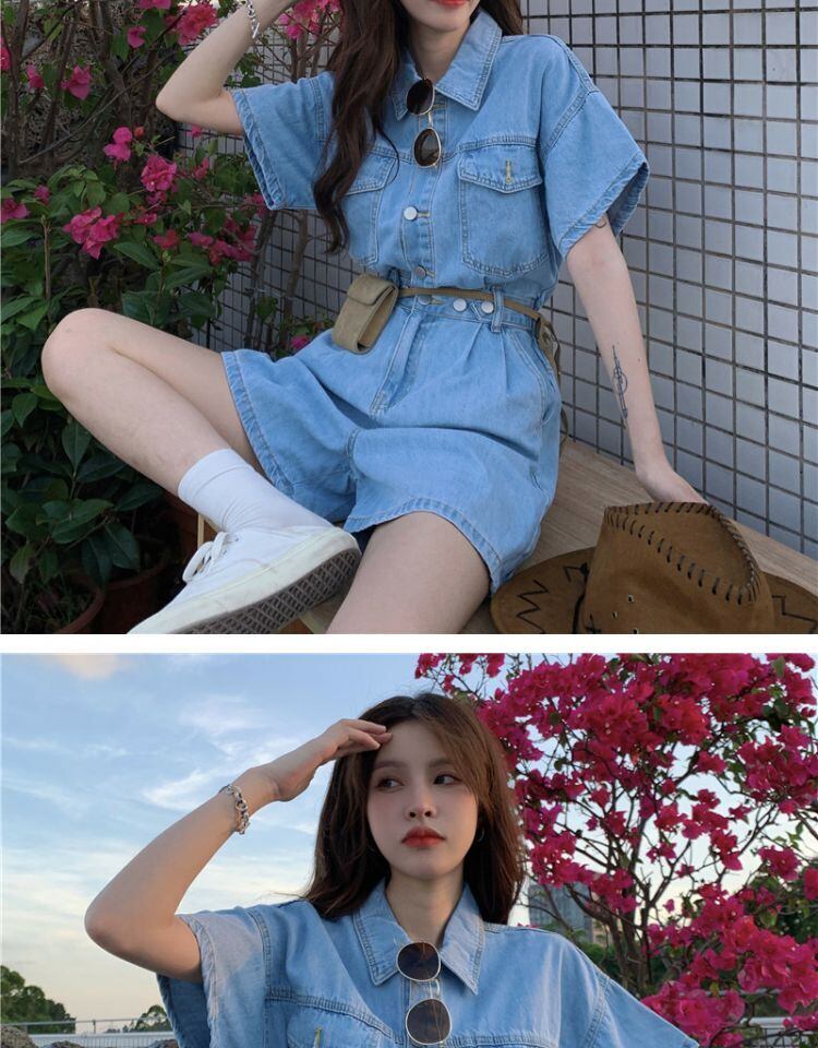 サマー薄手ハイウェストショーツ ジャンプスーツ オールインワン Aラインパンツ ブルー 夏物 ブルマー 萌量不足5770631948