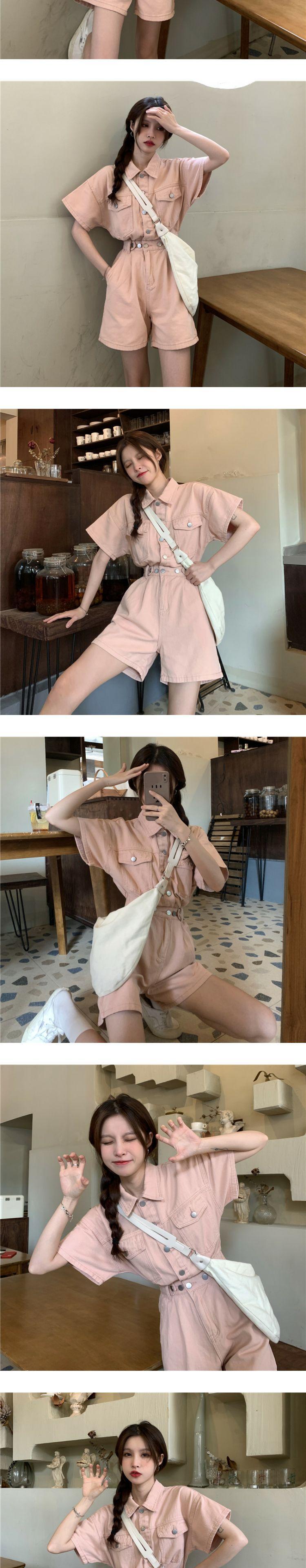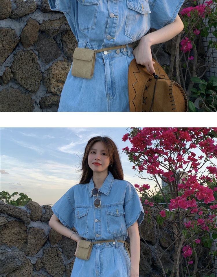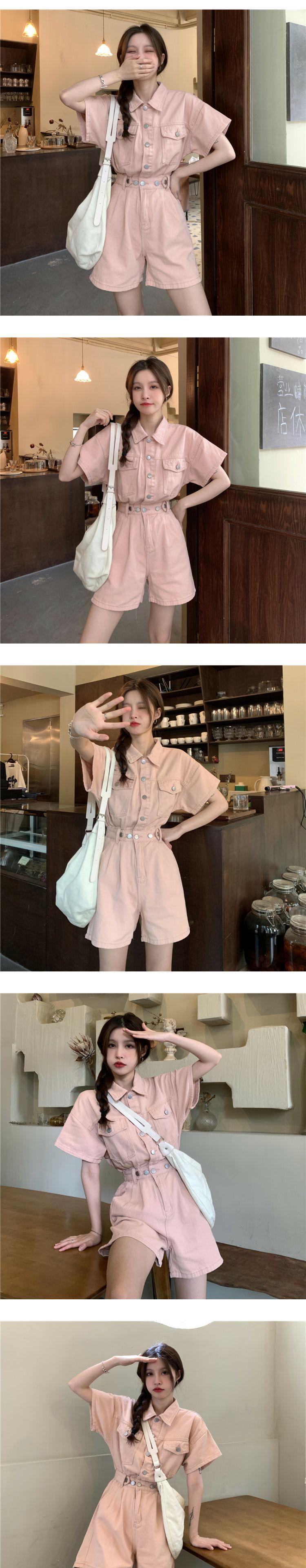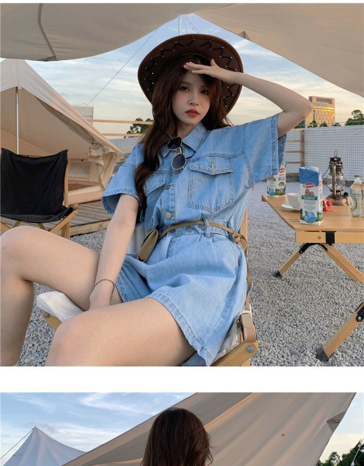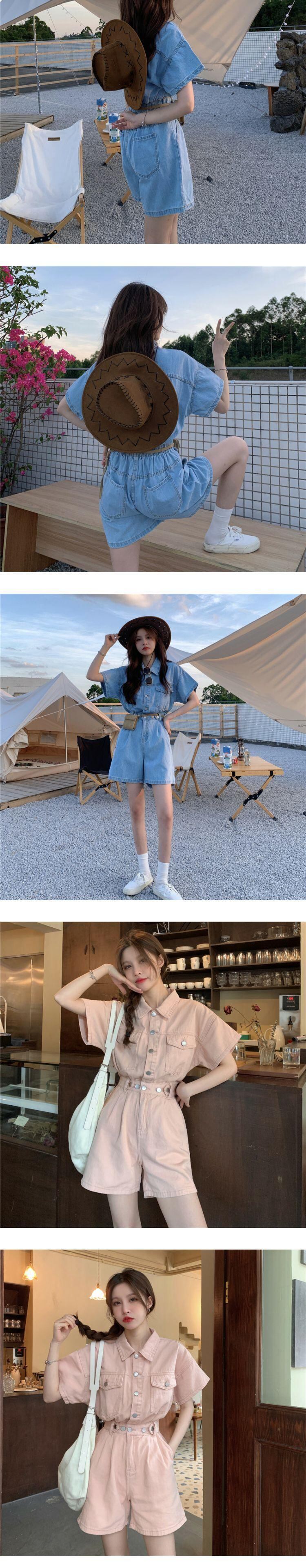 サマー薄手ハイウェストショーツ ジャンプスーツ オールインワン Aラインパンツ ブルー 夏物 ブルマー 萌量不足5770631948