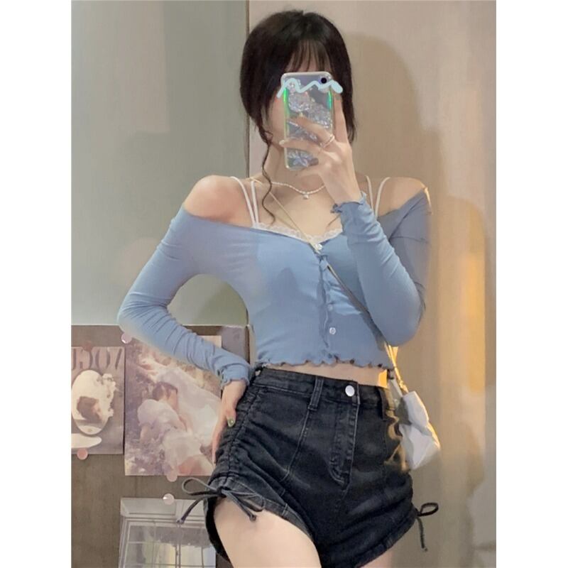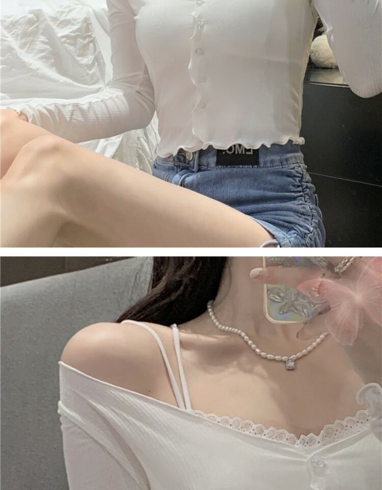 スリムカーディガンショートトップス セーター オータムジャケット ロング 秋物 ピュア 萌量不足52120213204
