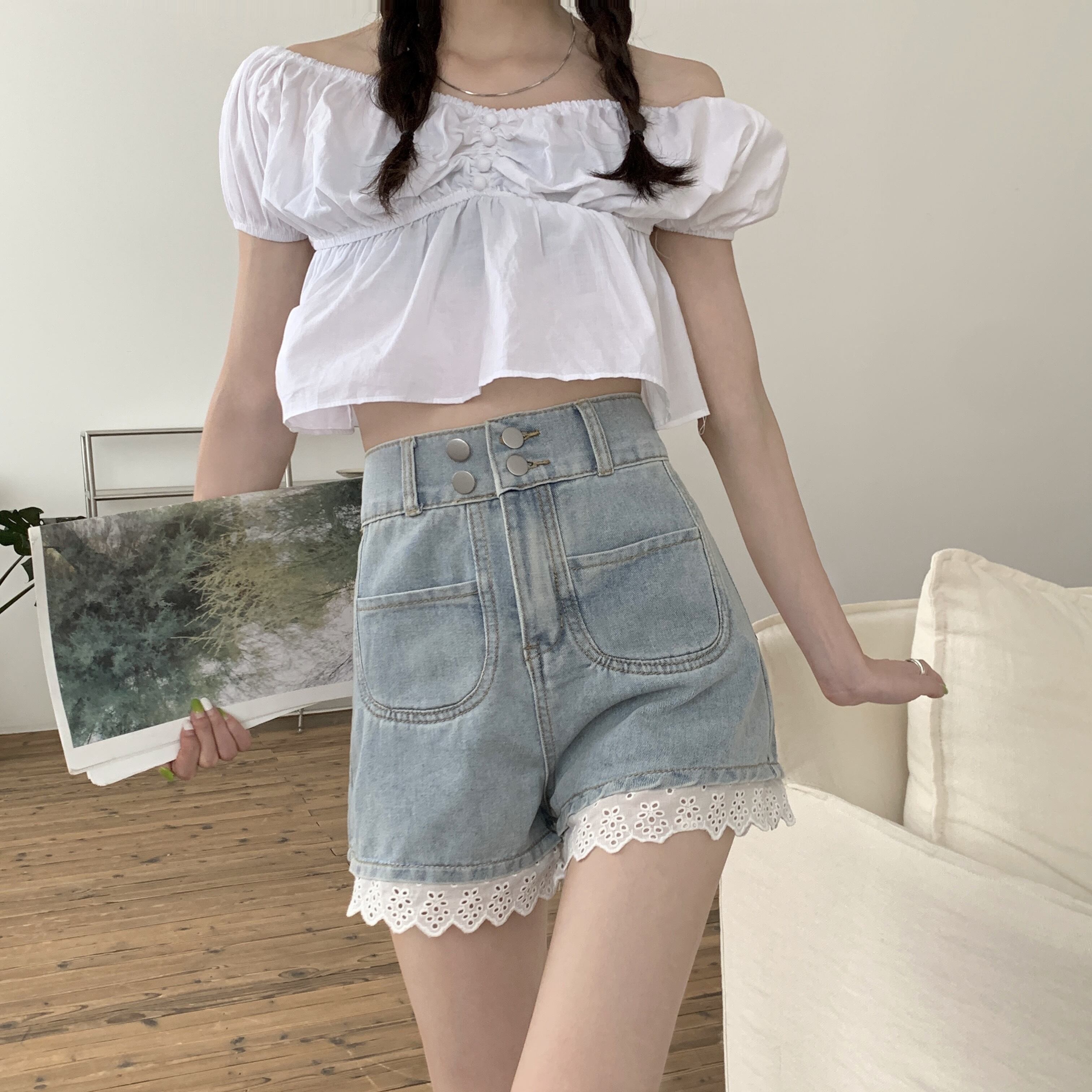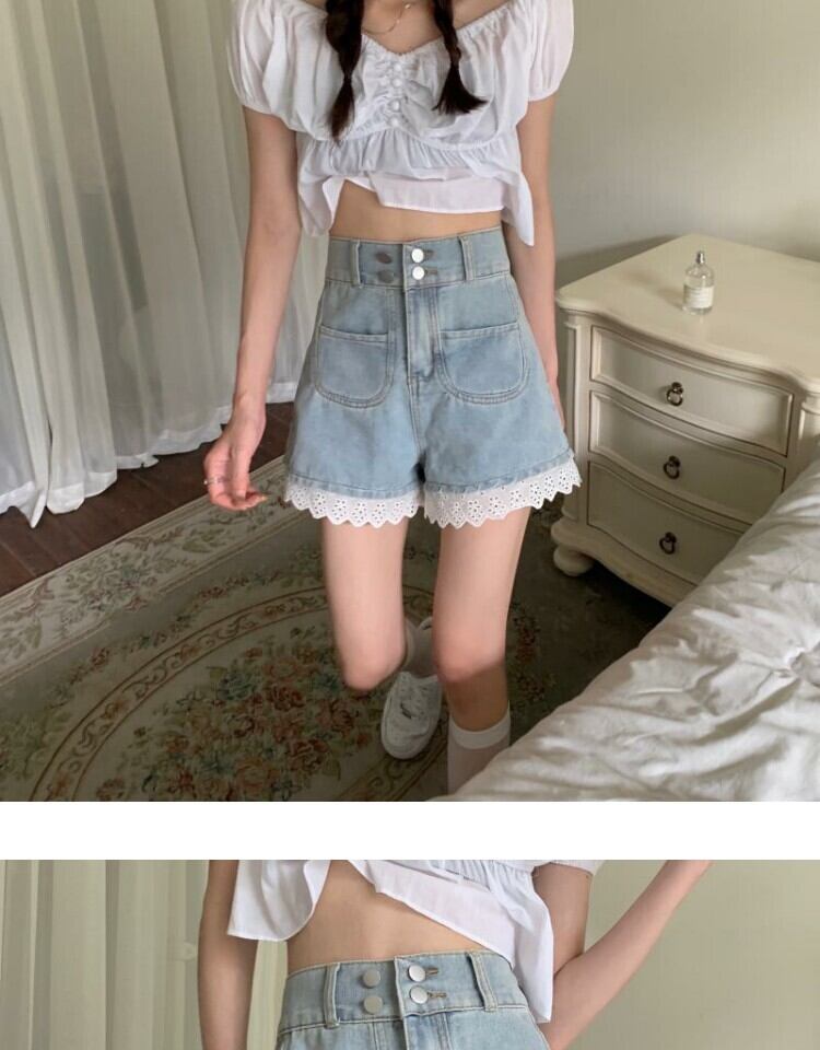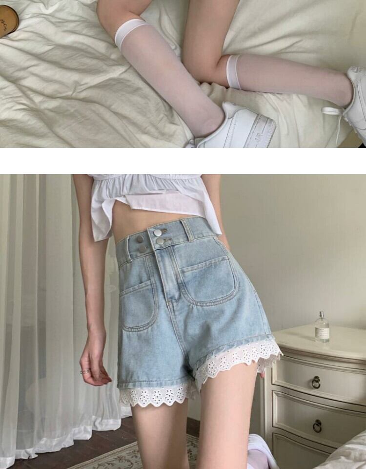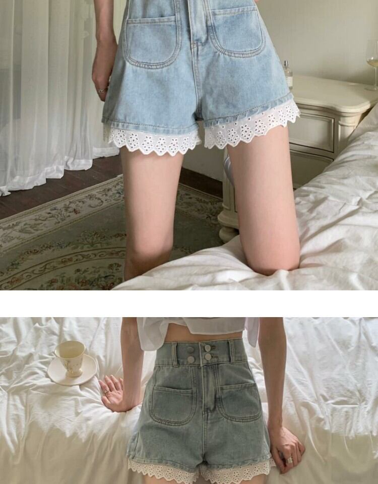 ウェストジーンズ サマー薄手スタイルレースパンツ ルーズショーツ 大人ガーリー スウィート キュート カジュアル 夏物 ブルマー 萌量不足59333083873