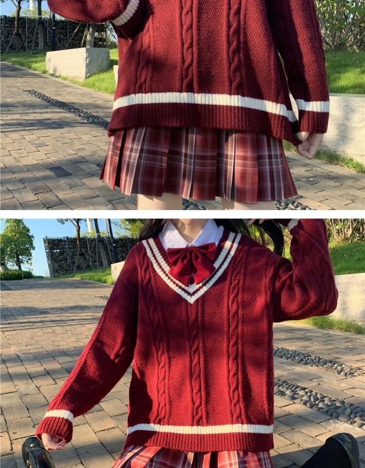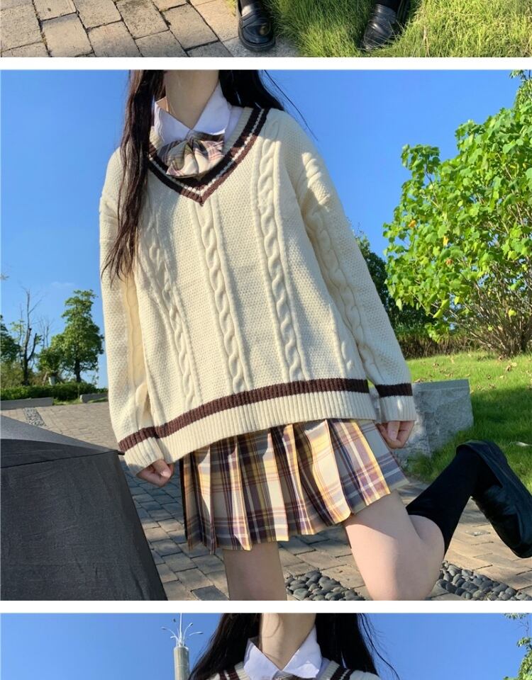 Vネックスタイルオータムウィンタールーズニットセーター スプリングジャケット 春物 秋物 冬物 萌量不足53090643528
