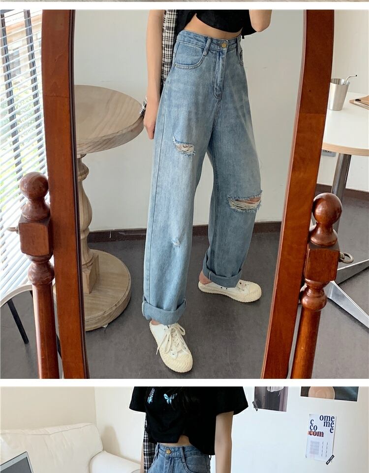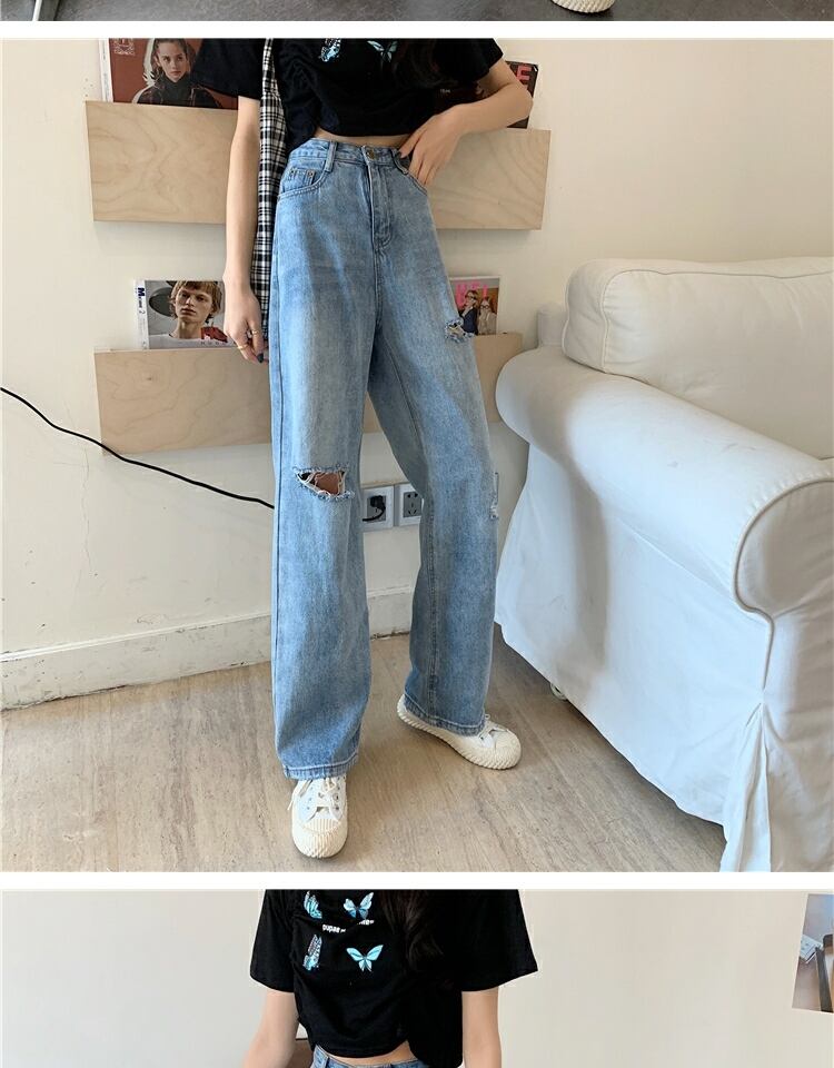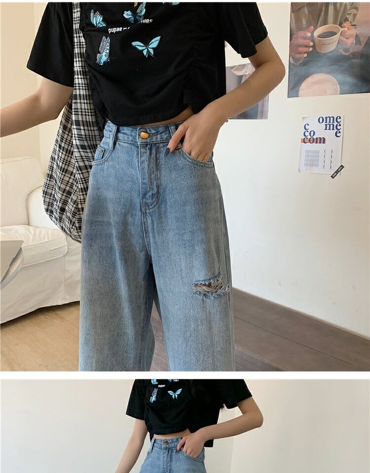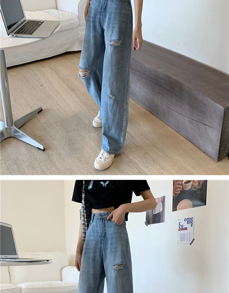 ジーンズ サマーオータム薄手スタイルルーズワイドレッグパンツ ハイウェストウェストスリム 夏物 秋物 ワイドパンツ 萌量不足96852335592