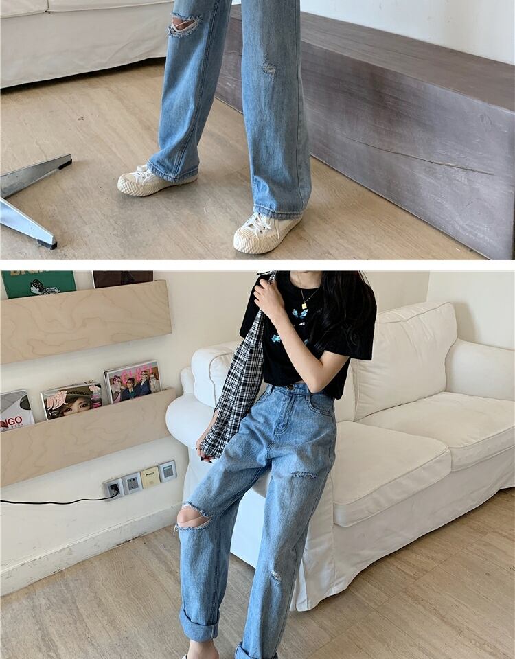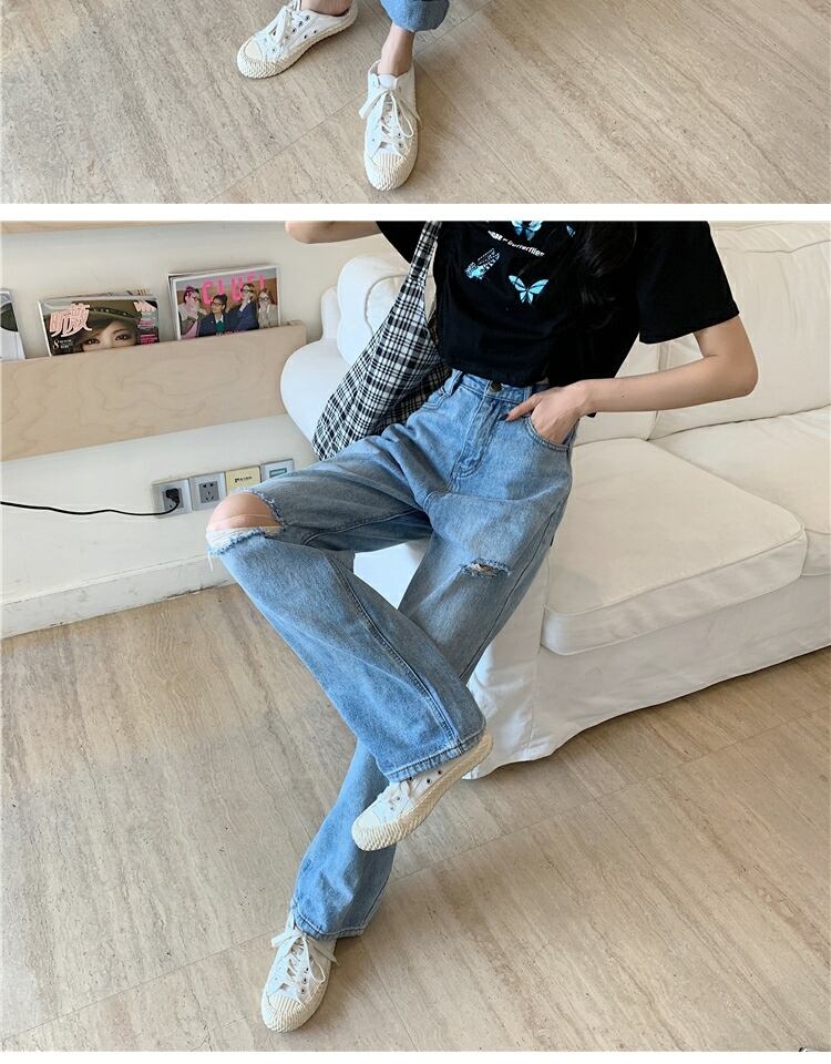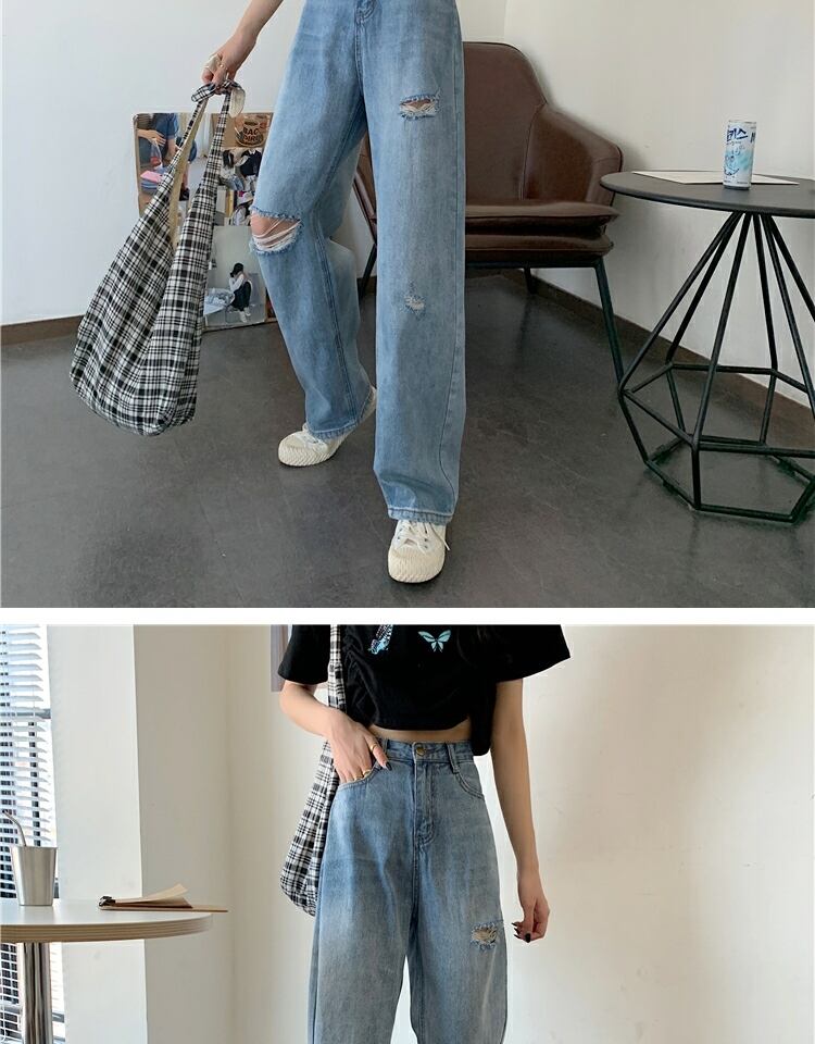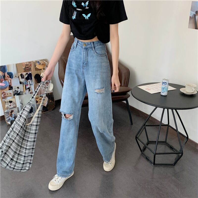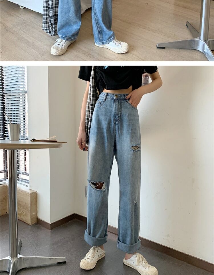 ジーンズ サマーオータム薄手スタイルルーズワイドレッグパンツ ハイウェストウェストスリム 夏物 秋物 ワイドパンツ 萌量不足96852335592