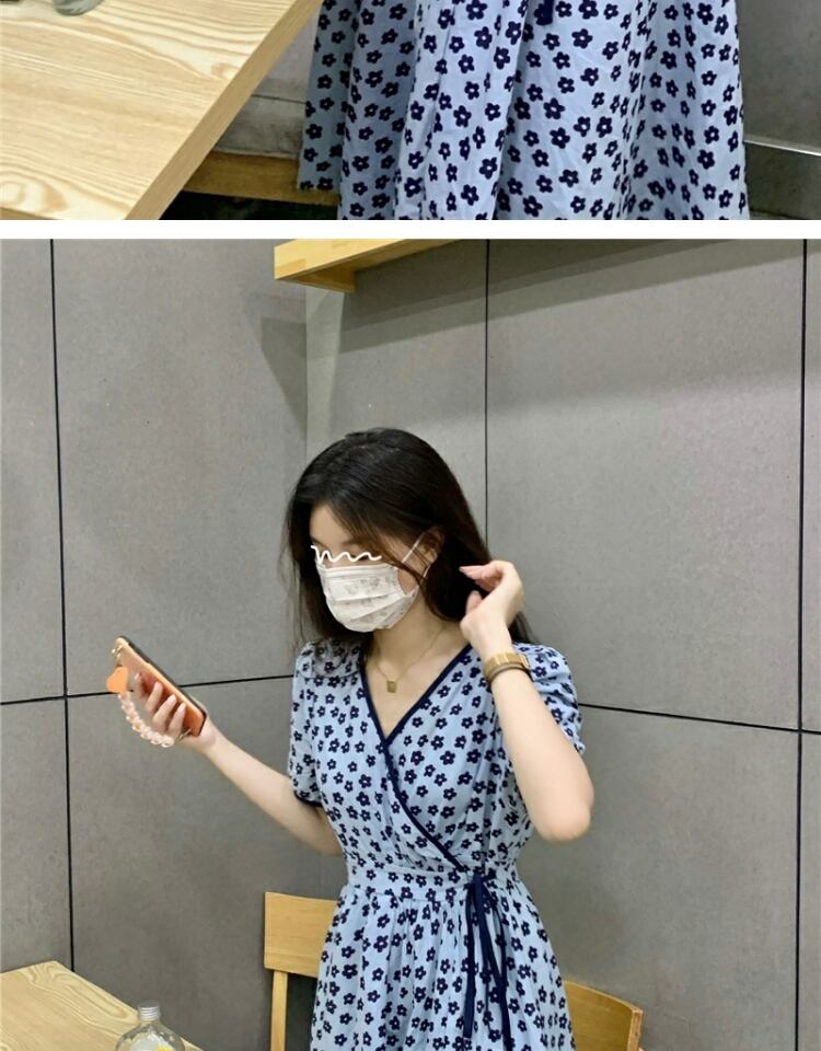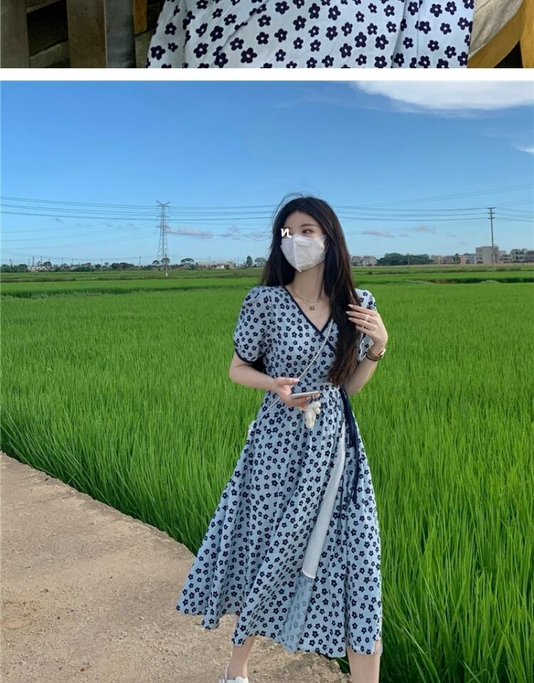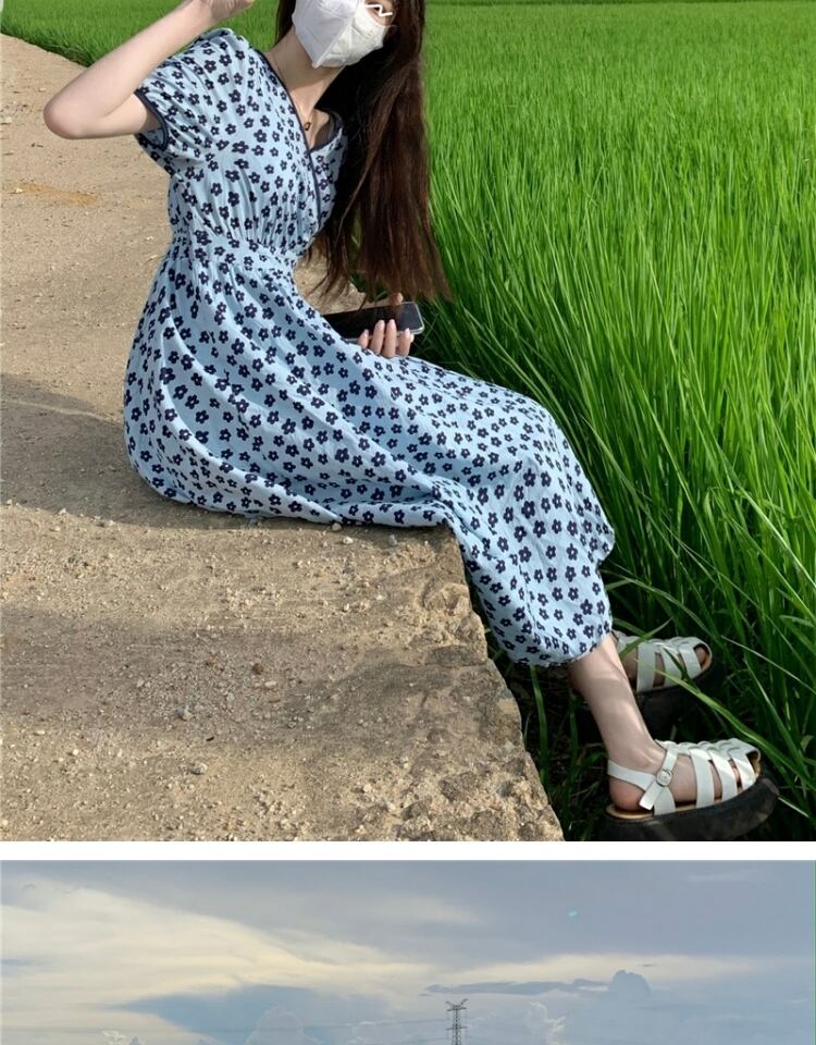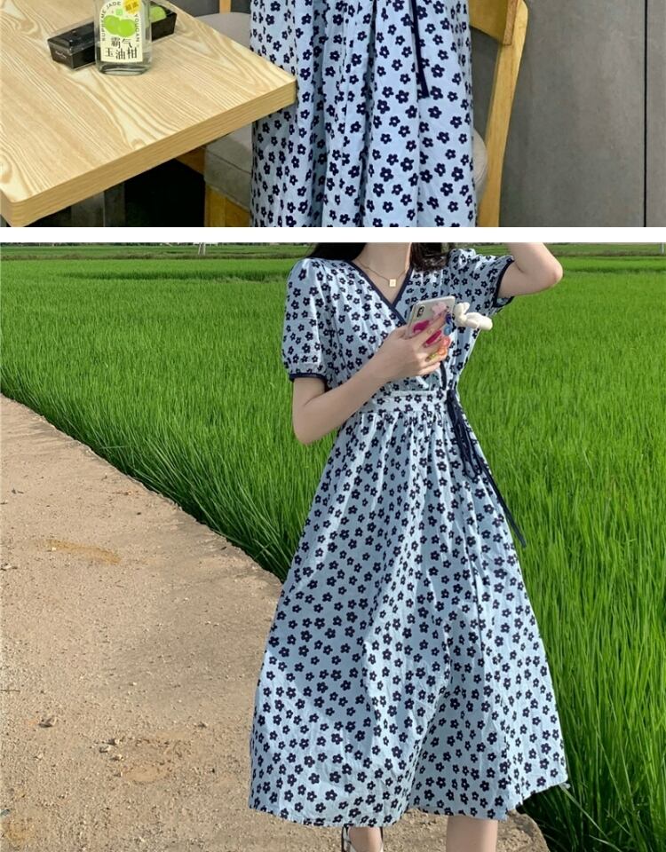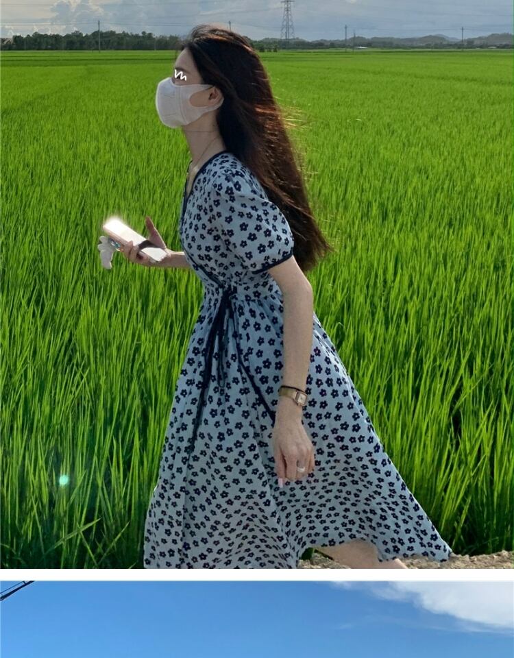 フローラル刺繍Vネックスカート ワンピーススタンダードドレス サマー レトロ 夏物 花柄 萌量不足21268760836