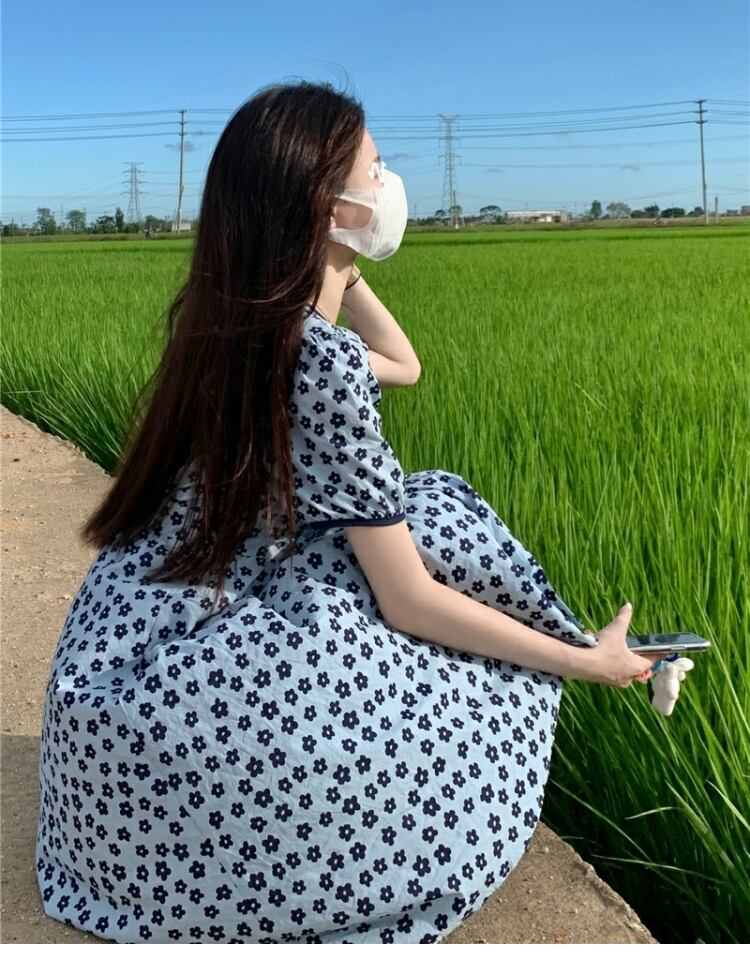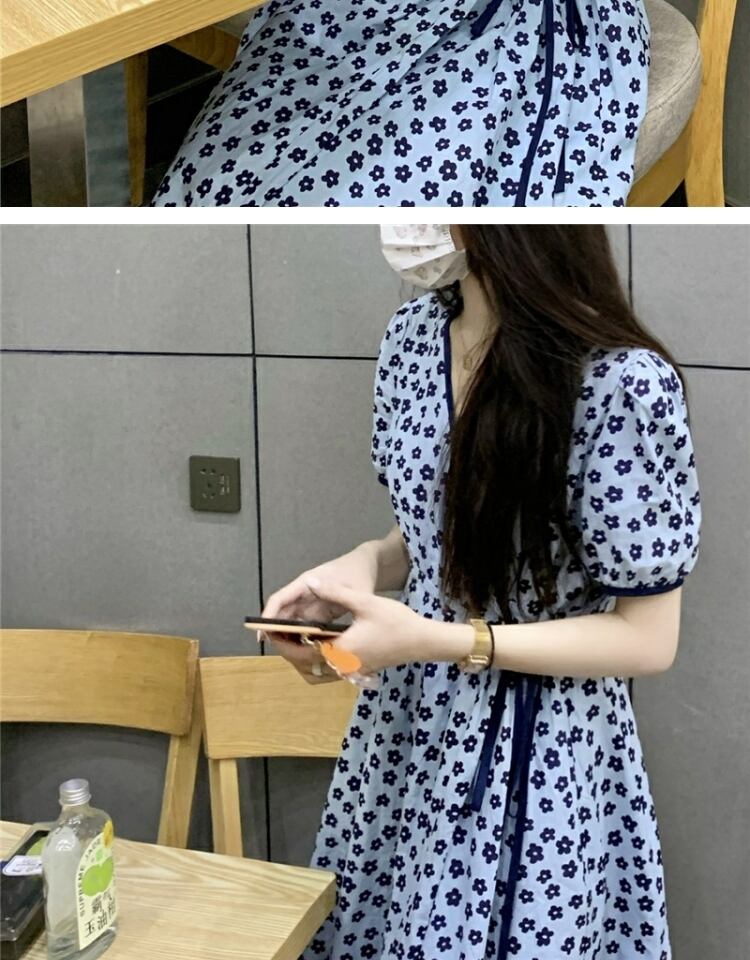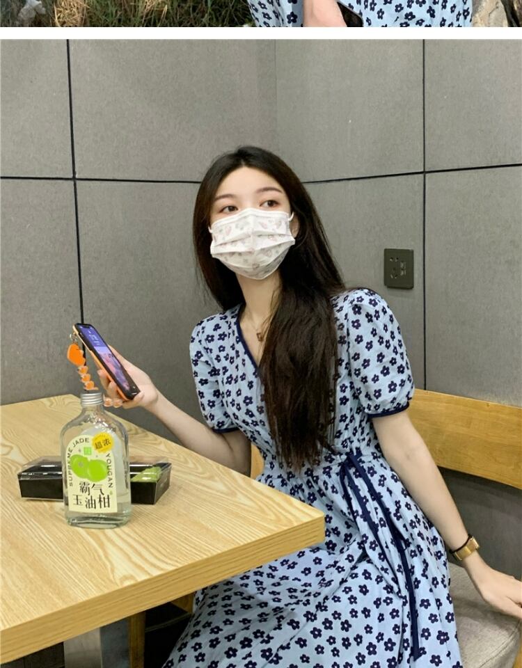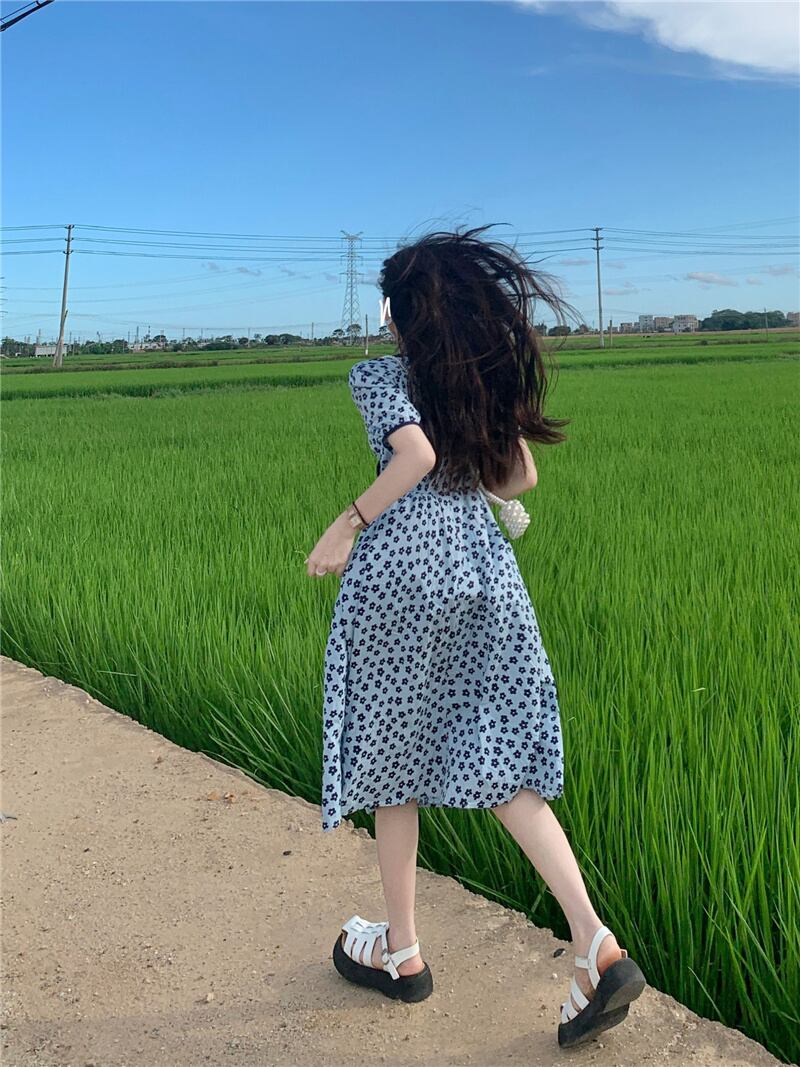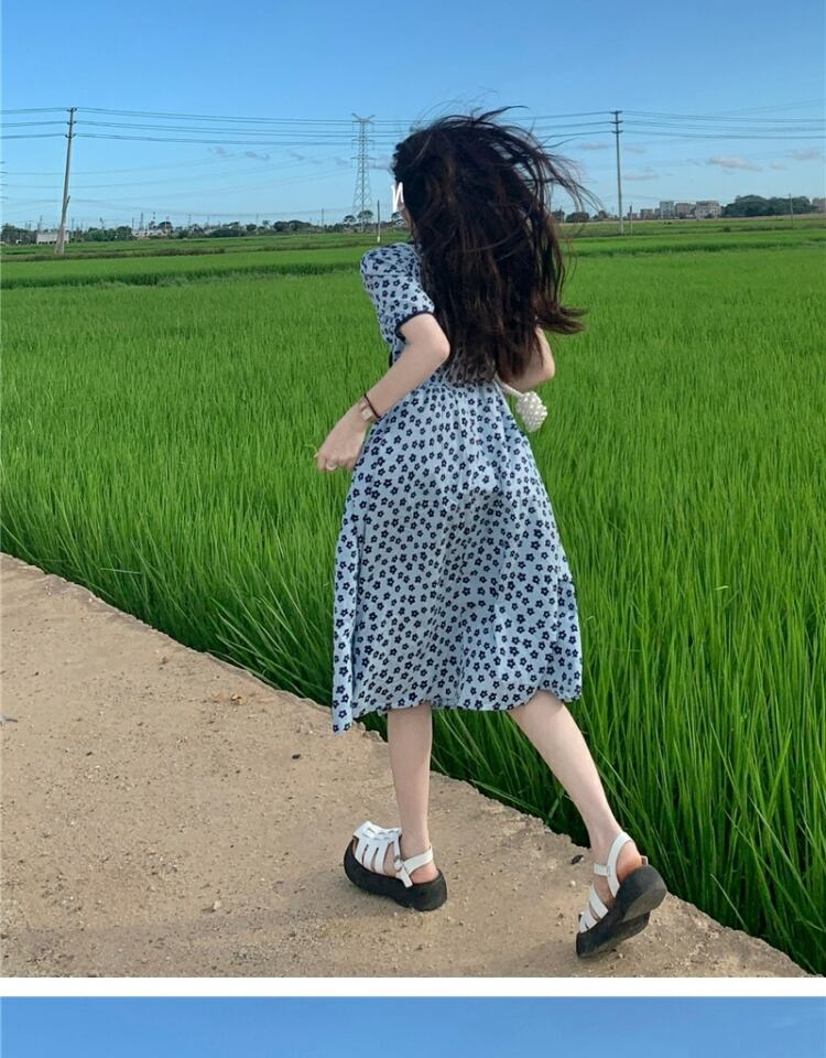 フローラル刺繍Vネックスカート ワンピーススタンダードドレス サマー レトロ 夏物 花柄 萌量不足21268760836