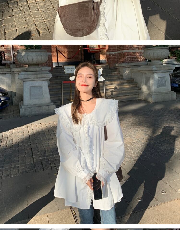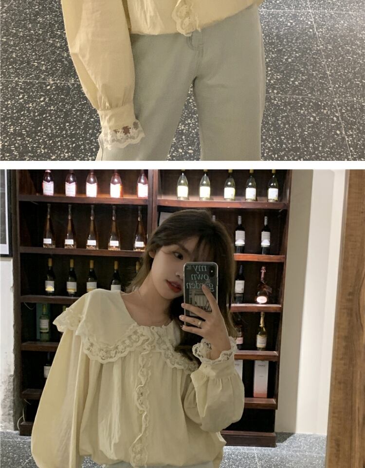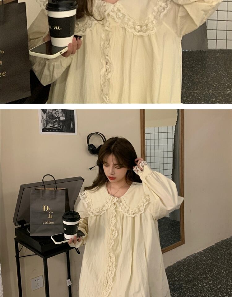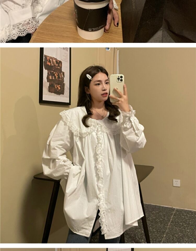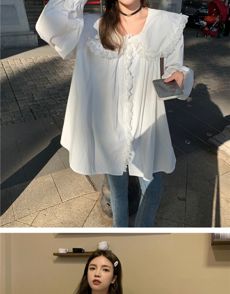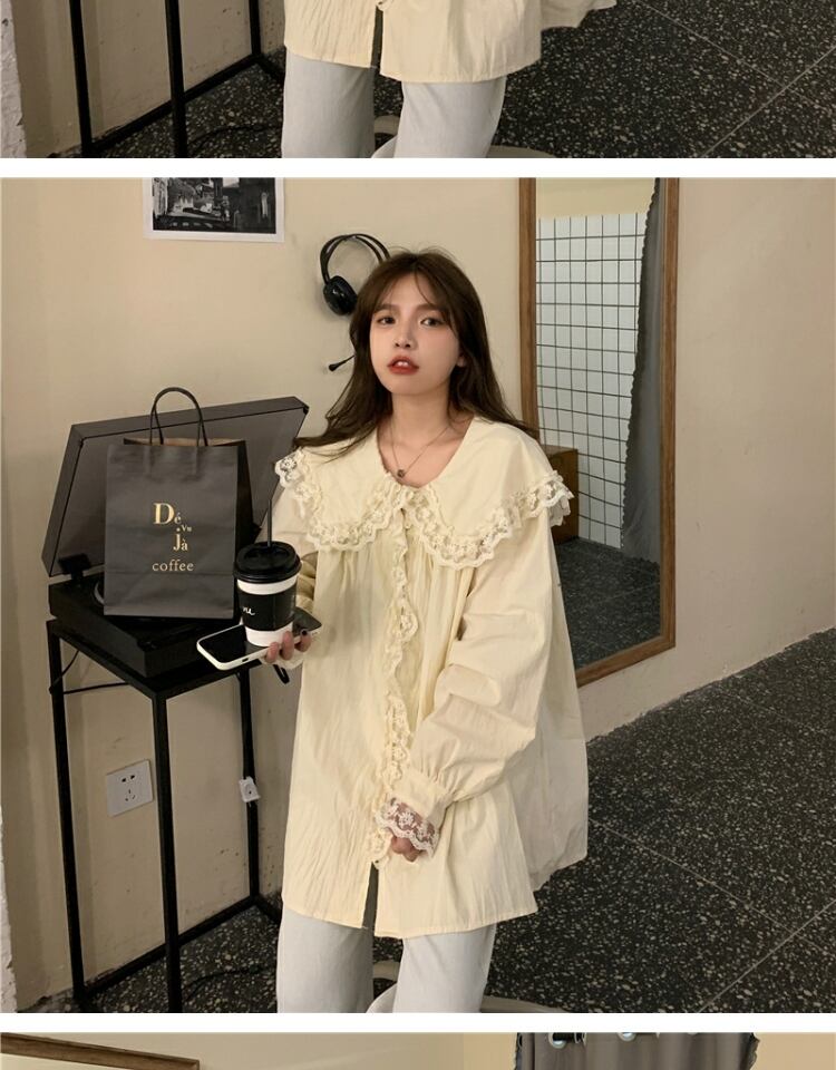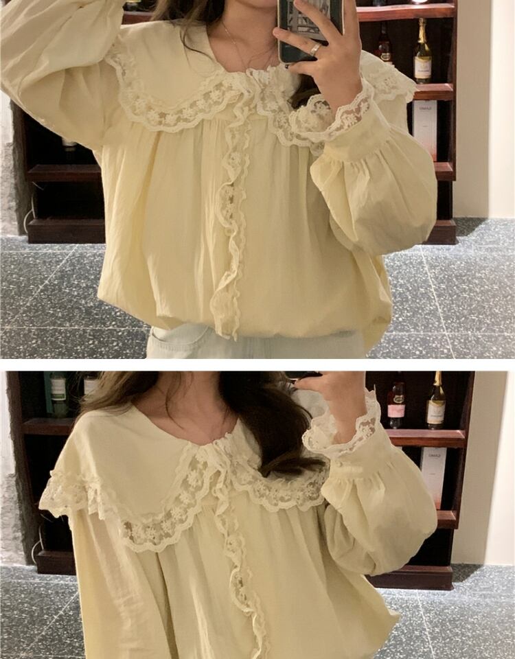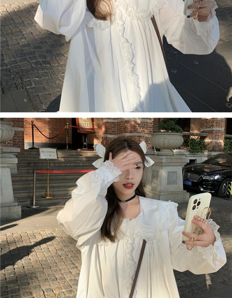 カラーシャツ スタンダードレーストップス ドレス スプリングオータム ロング レトロ 春物 秋物 萌量不足66832201040