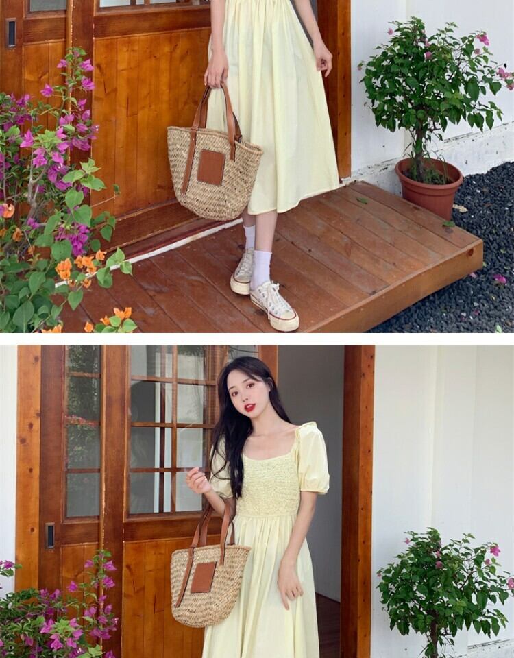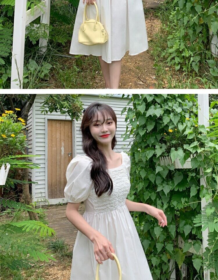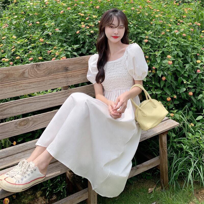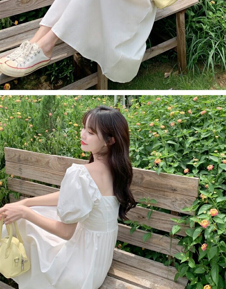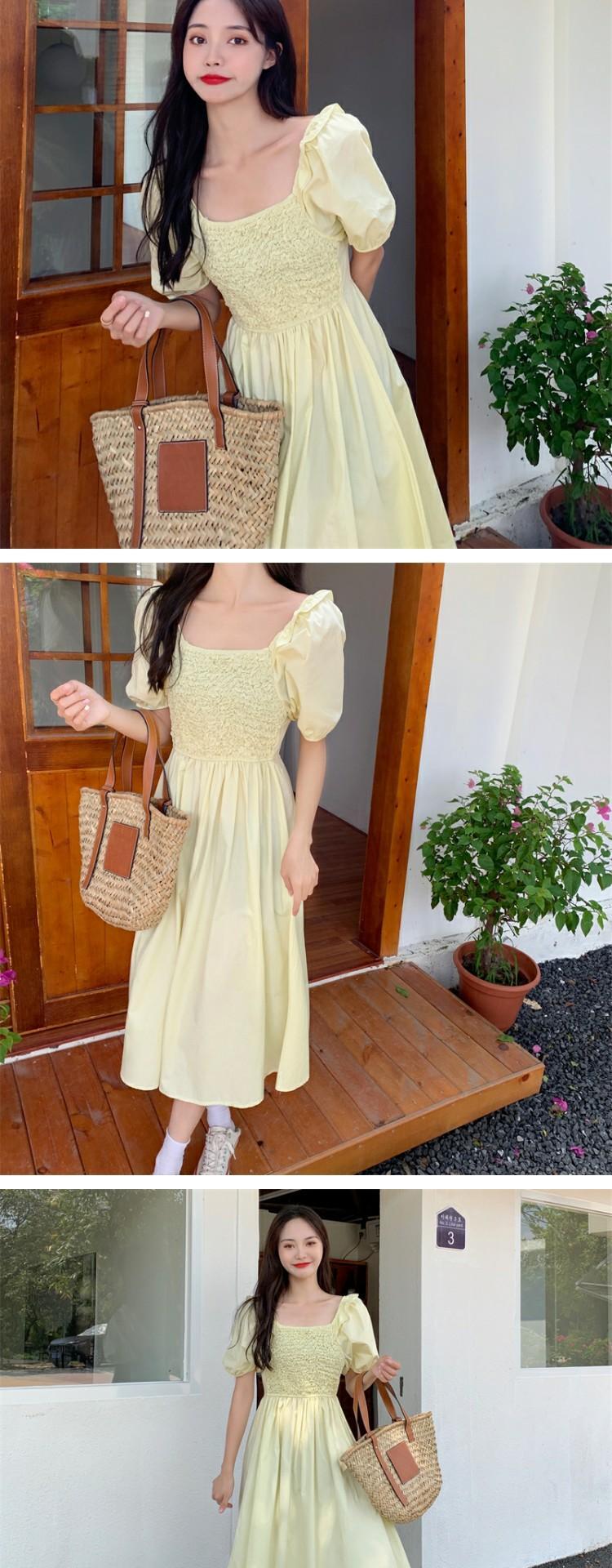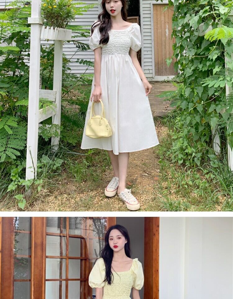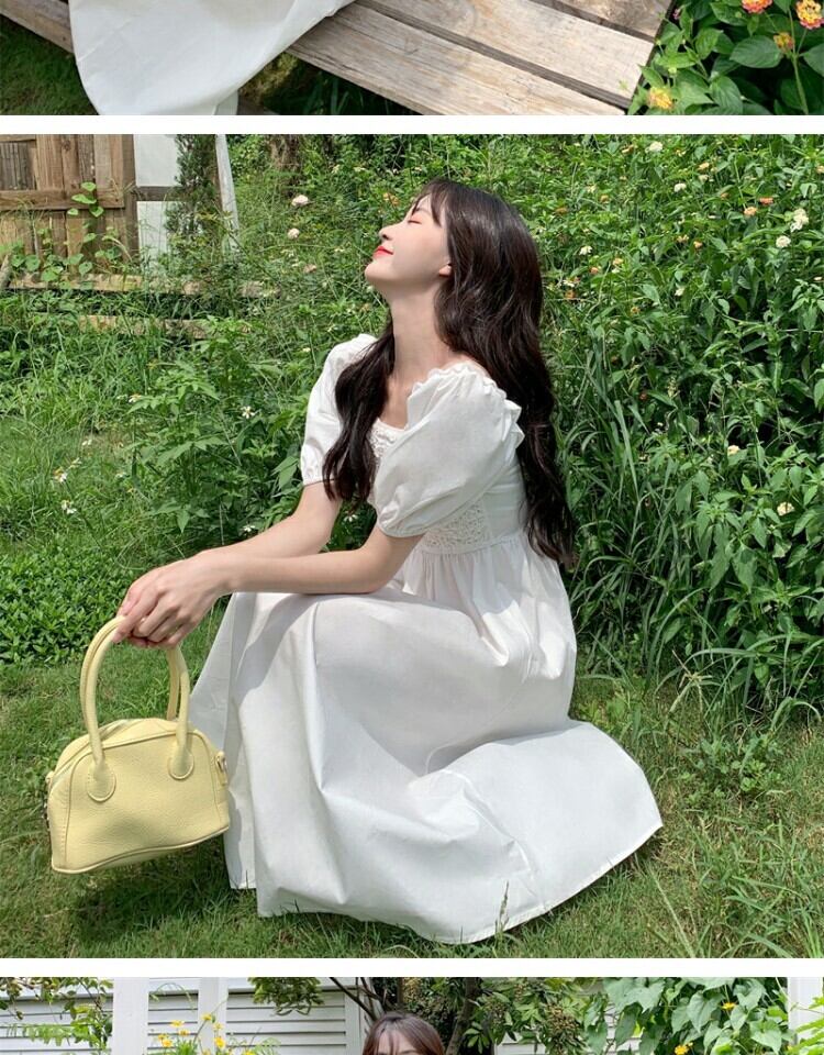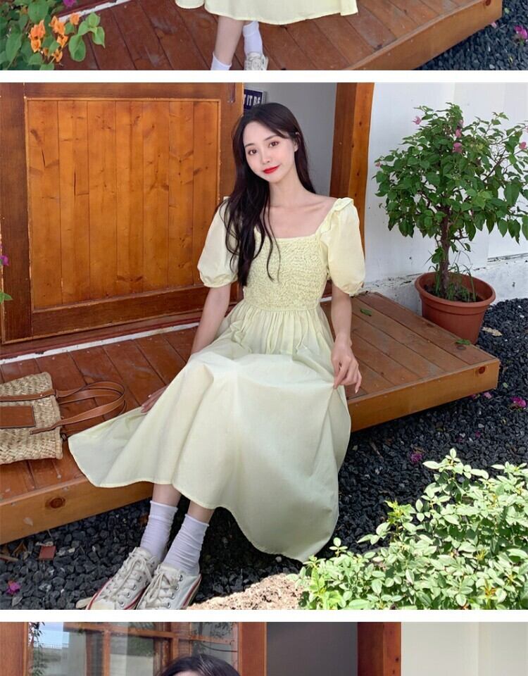 サマースタイルスリーブドレス ハイウェストウェストロングスカート カラー 大人ガーリー スウィート キュート カジュアル 夏物 スクウェア 萌量不足13940433173