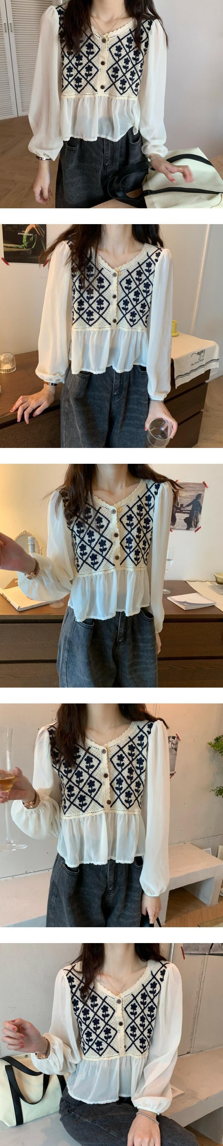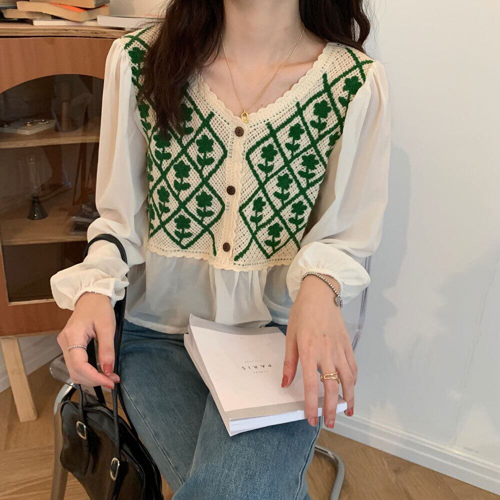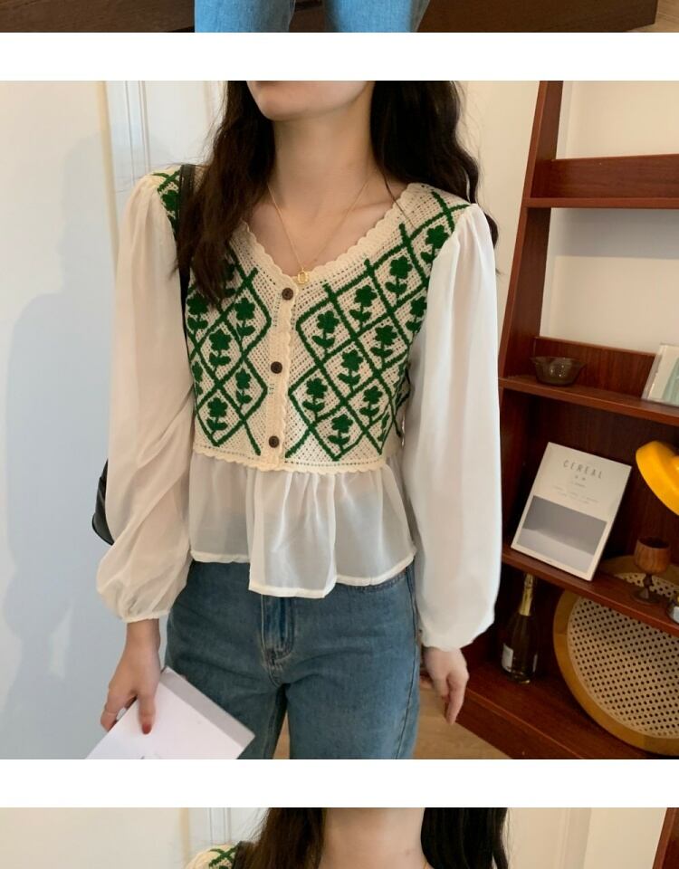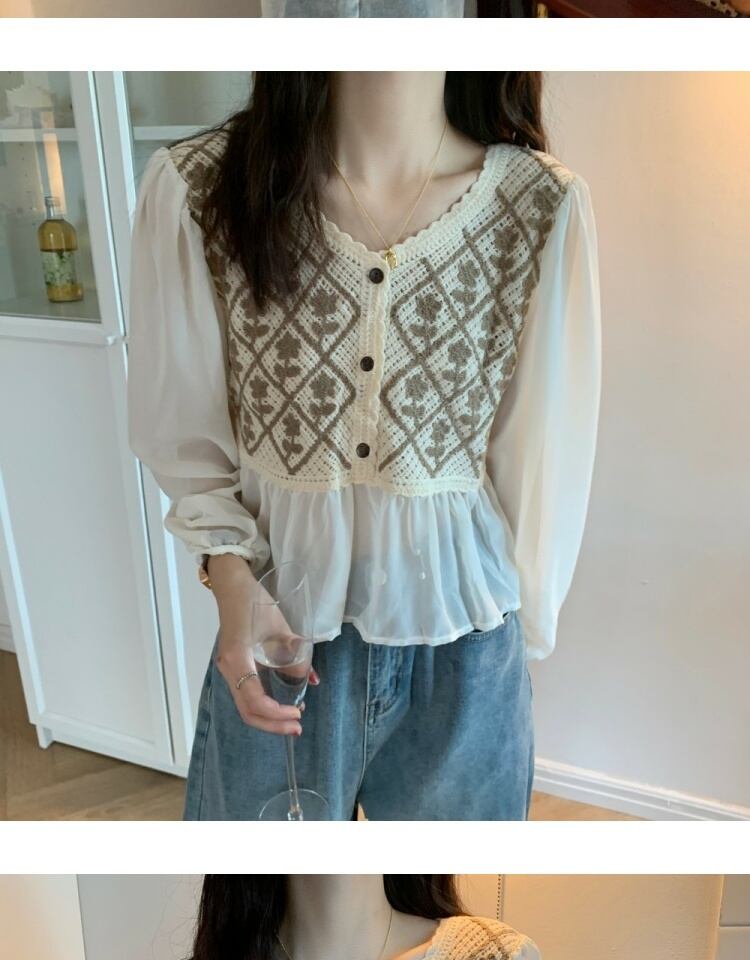 スタイルスタンダードシフォンシャツ レースレディーススプリングオータム薄手ルーズブラウス セーター トップス ロング レトロ 春物 秋物 萌量不足93253360862