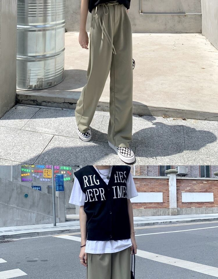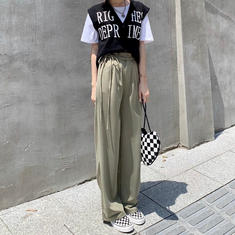 ルーズカジュアルパンツ サマーハイウェストウェストワイドレッグ 夏物 ワイドパンツ 萌量不足45326058263
