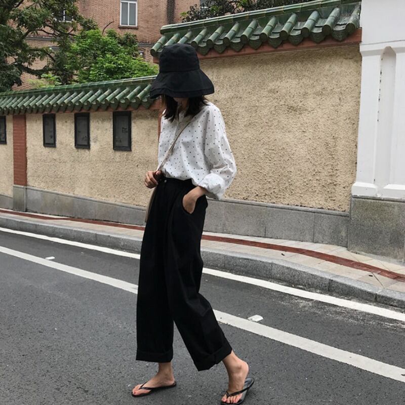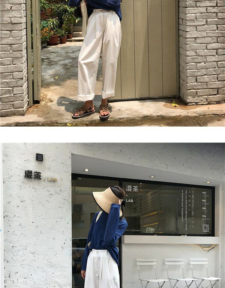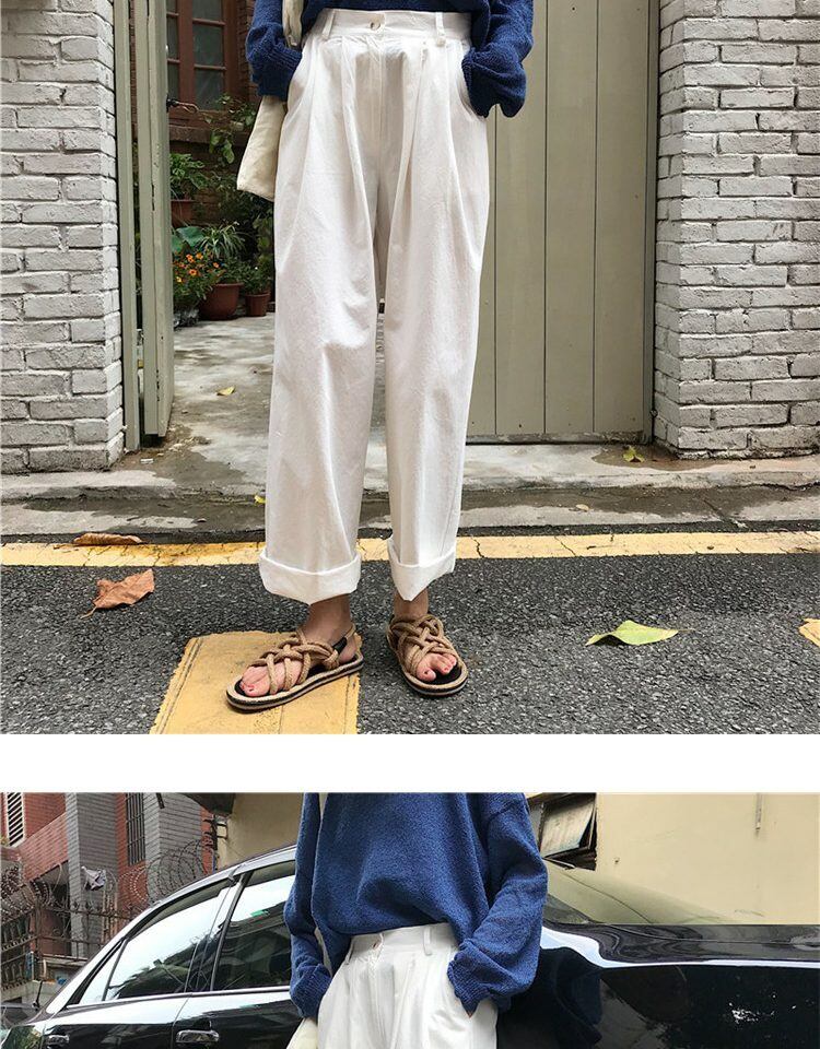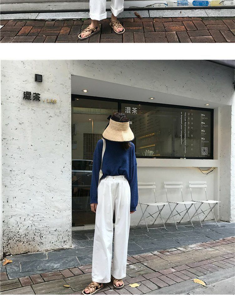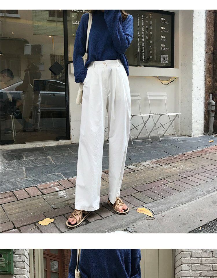 スプリングオータムルーズ薄手ワイドレッグパンツ ハイウェストウェストホワイトカジュアルサマー 春物 夏物 秋物 ワイドパンツ 萌量不足90922060719