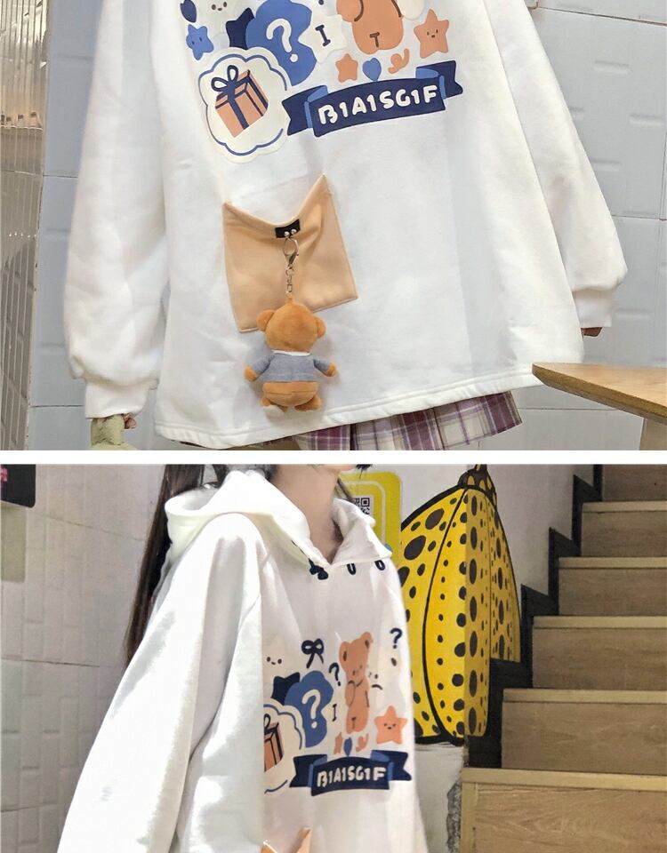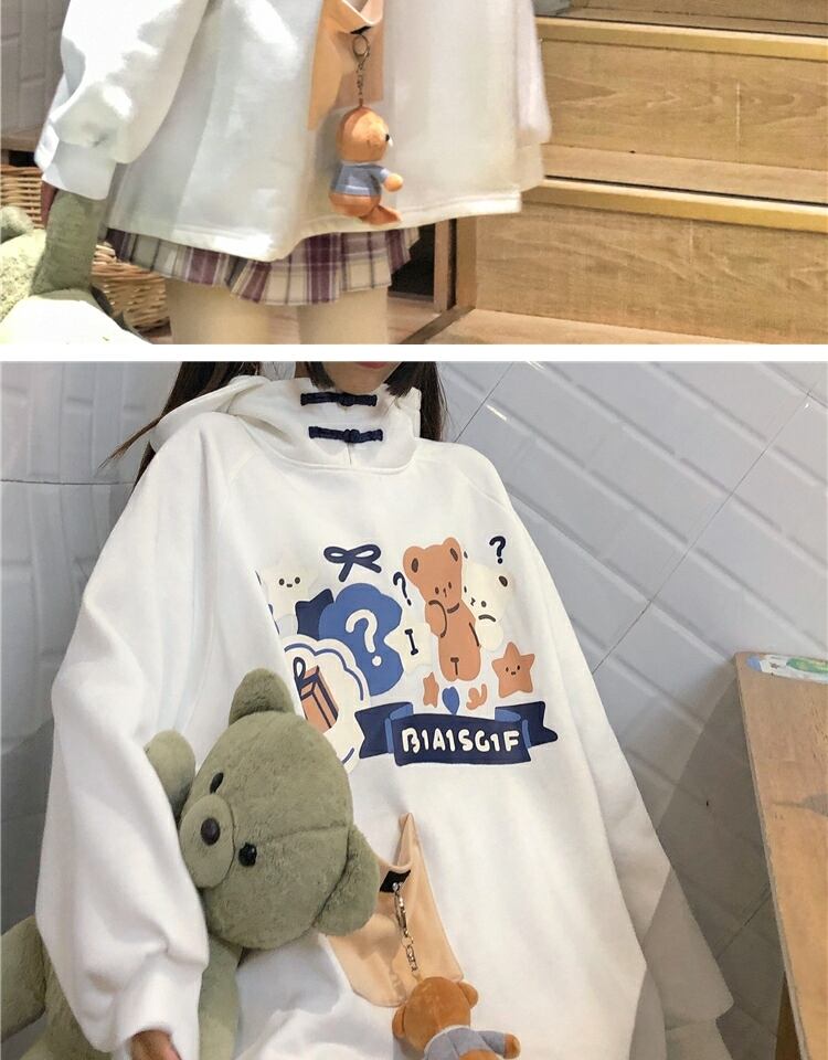 セーター スプリングオータムルーズプリント柄フードプルオーバー ジャケット 大人ガーリー スウィート キュート カジュアル 春物 秋物 萌量不足20731277244