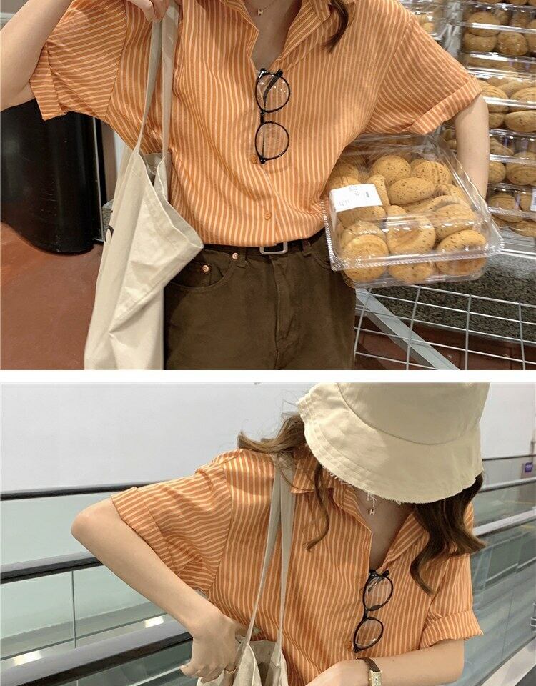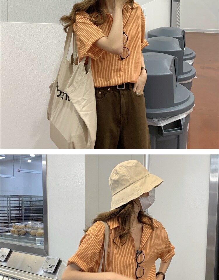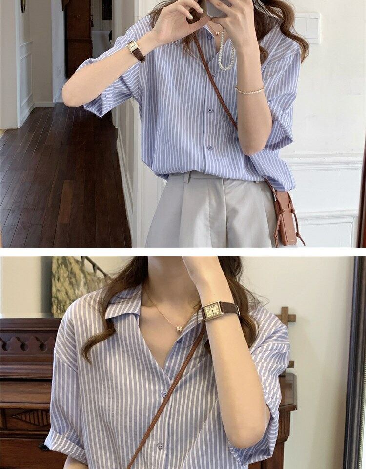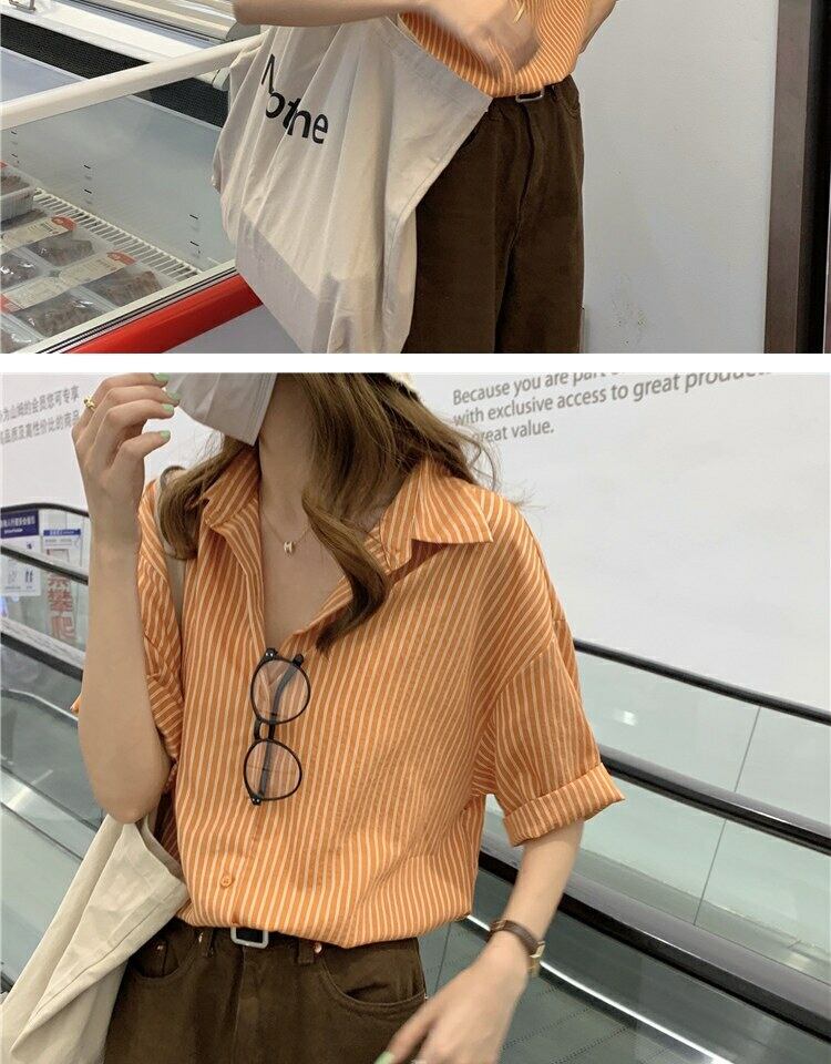 スタイルトップス サマーストライプカーディガンシャツ ルーズ 夏物 萌量不足41758870314