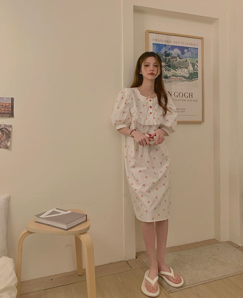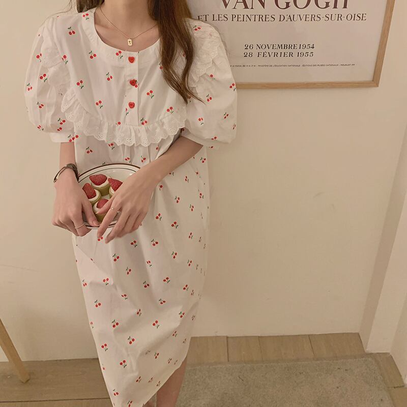 プリント柄スリーブレディースサマー薄手レースカラースカート 夏物 萌量不足9778731674