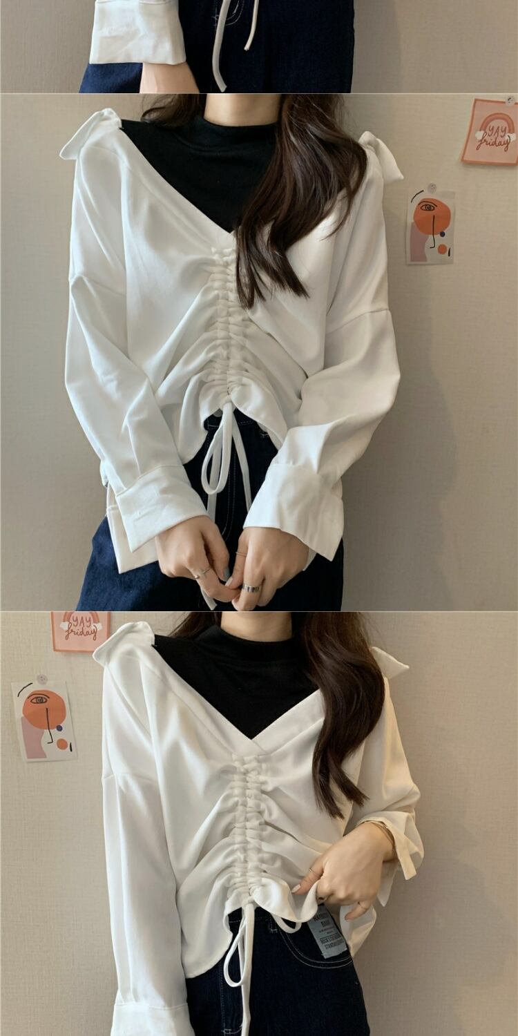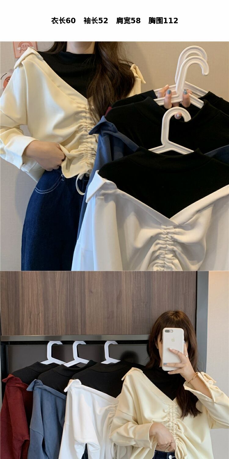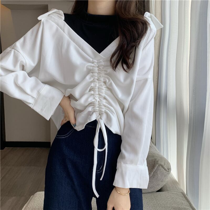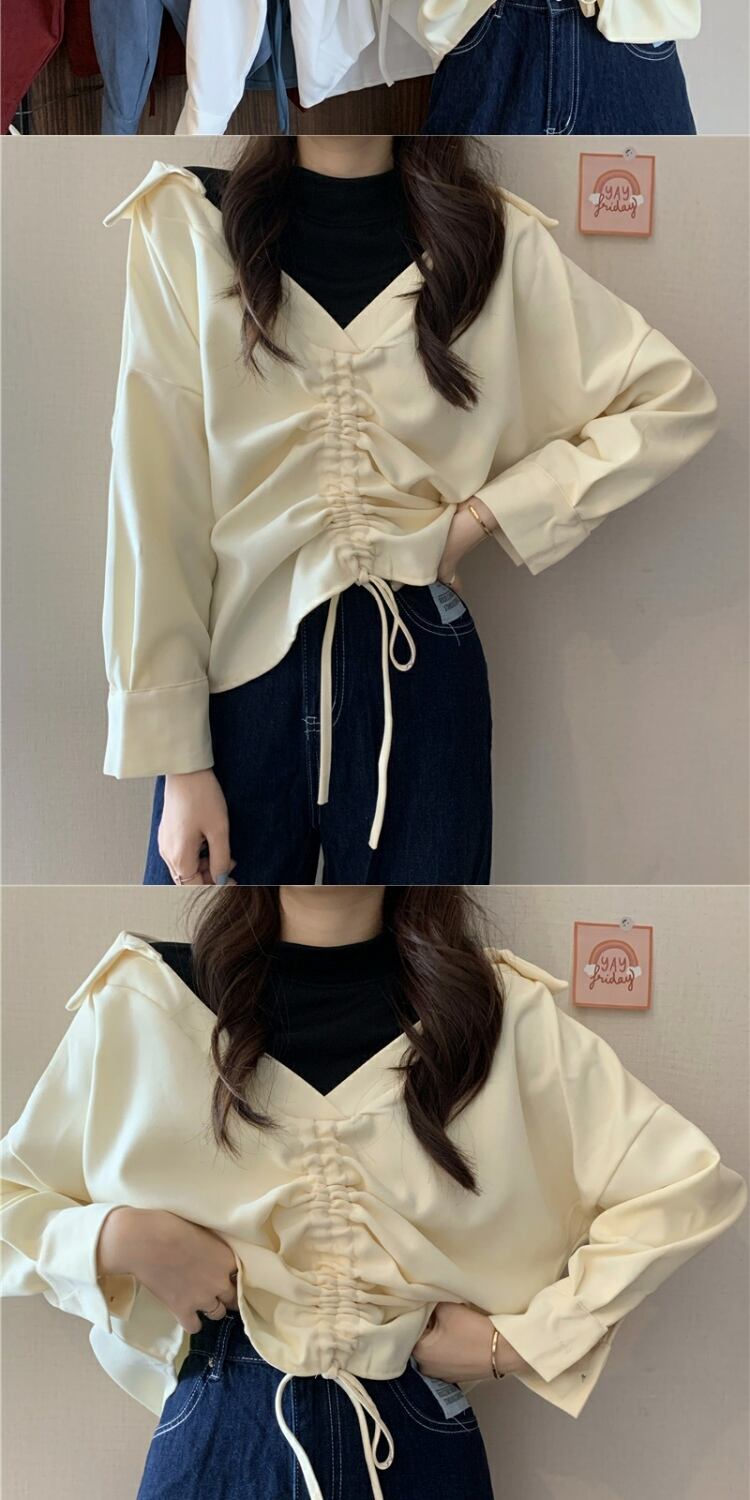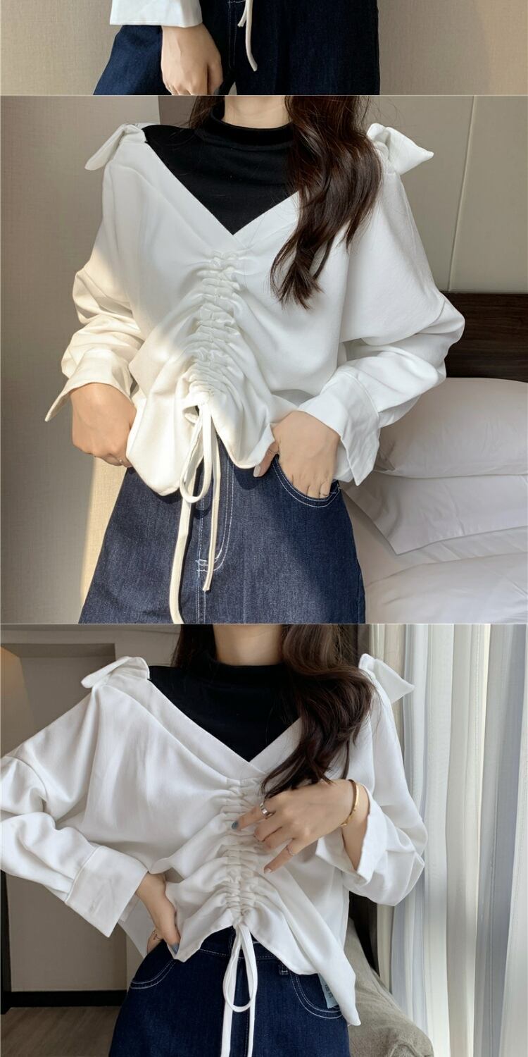 ギャザーセーター レディーススプリングVネックオータムトップス 春物 秋物 ステッチ 萌量不足55185871108