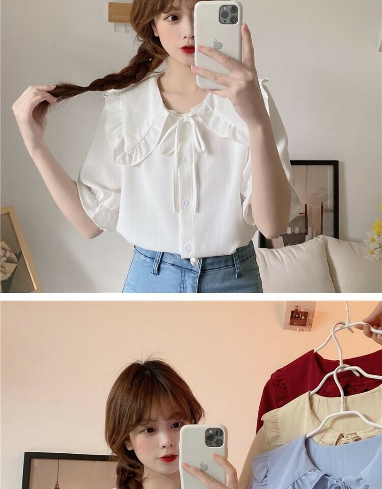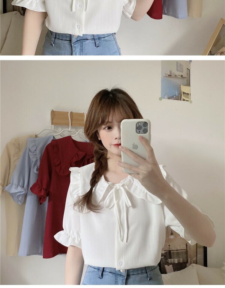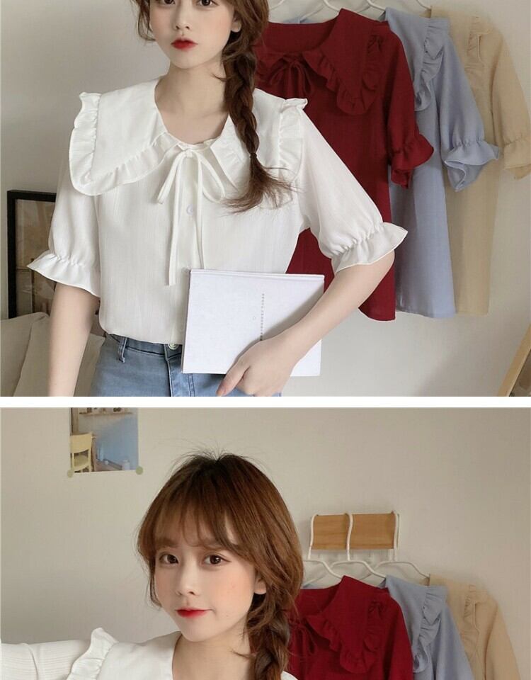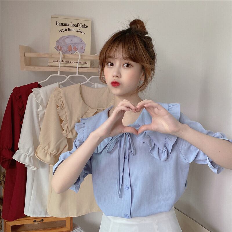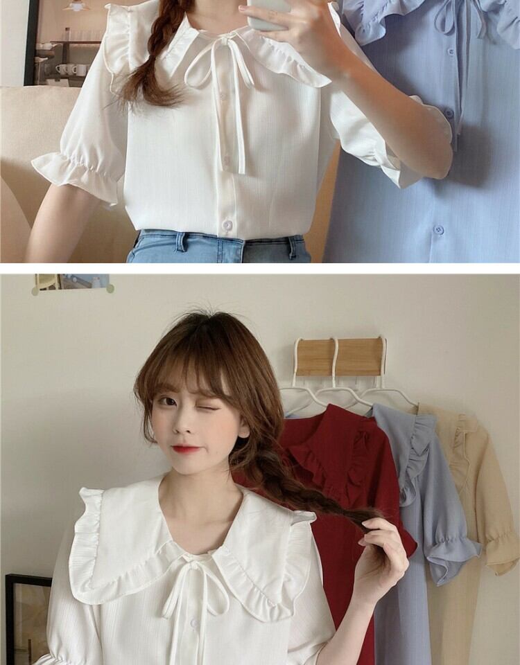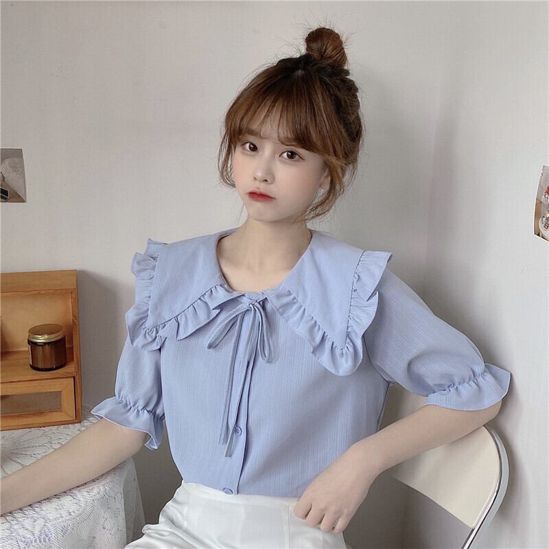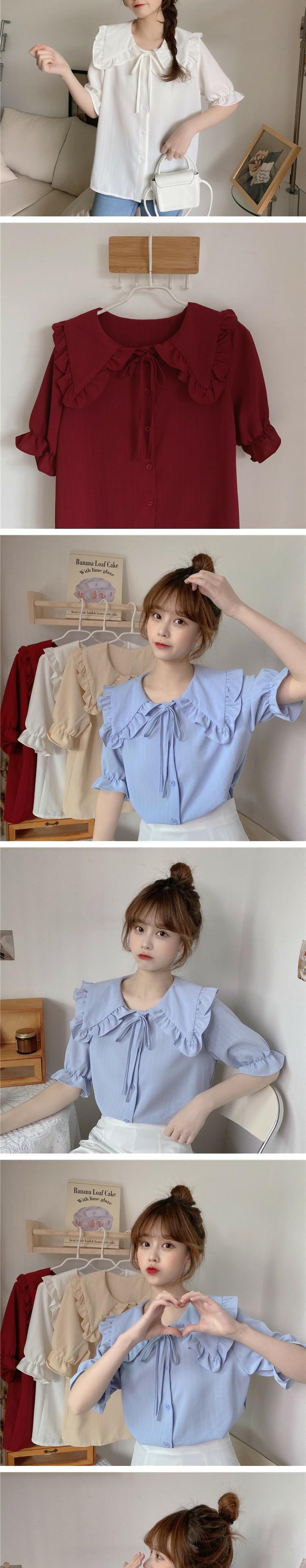カラーショートブラウス シャツ サマー 大人ガーリー スウィート キュート カジュアル 夏物 萌量不足57420961898
