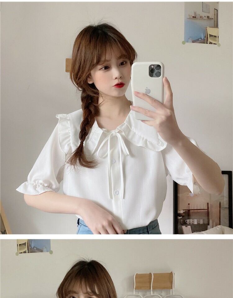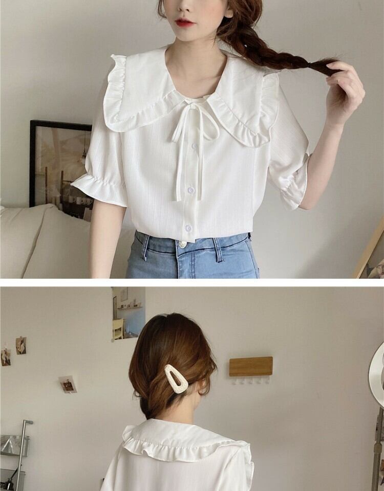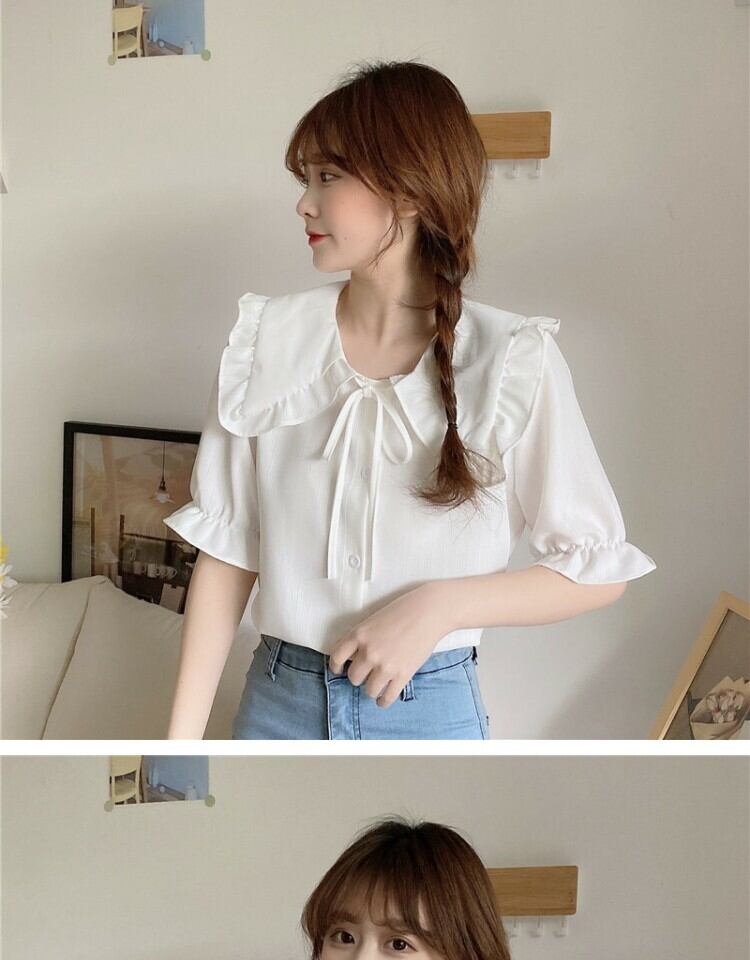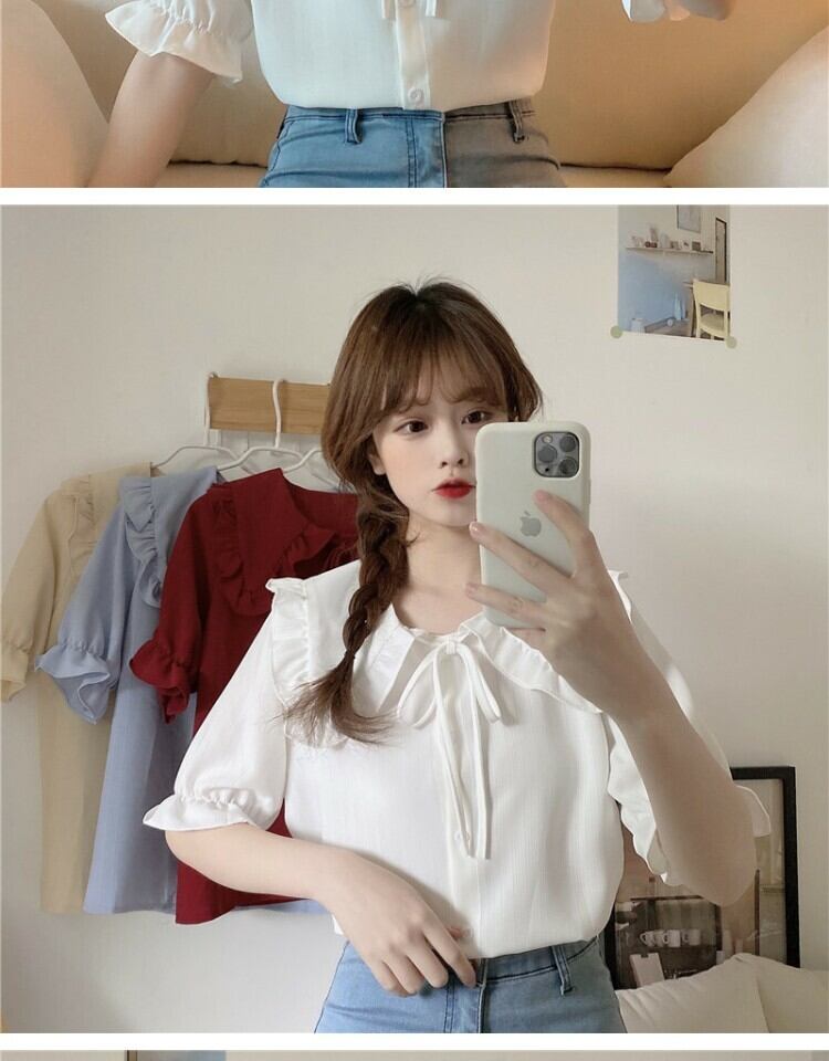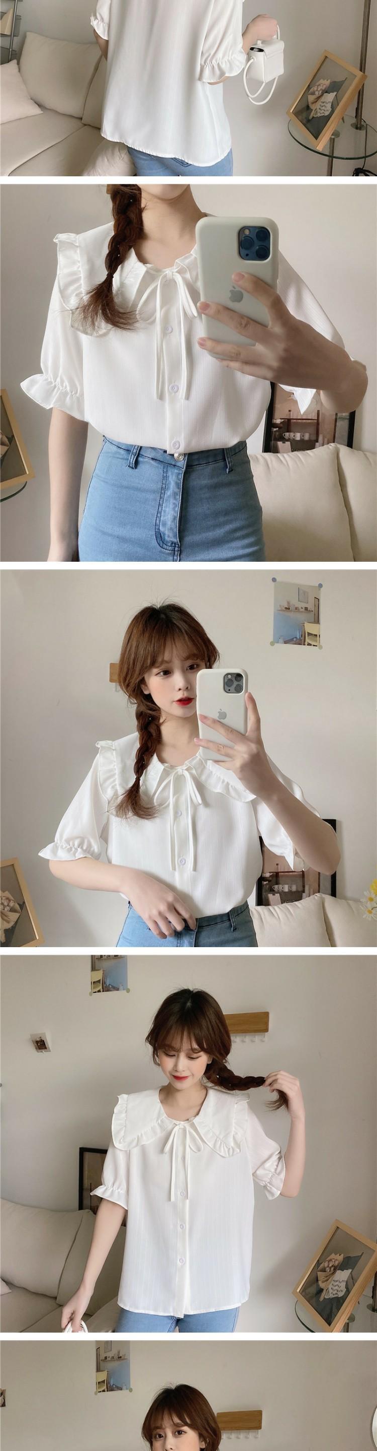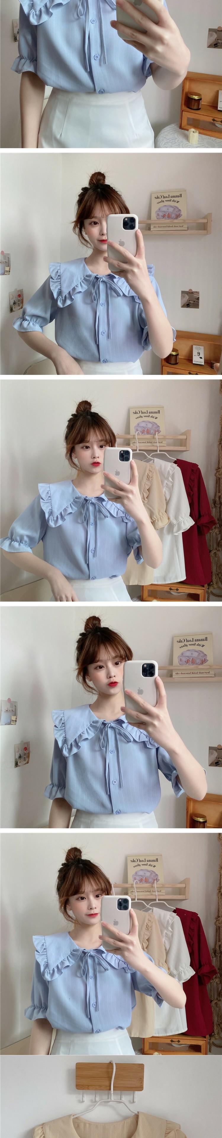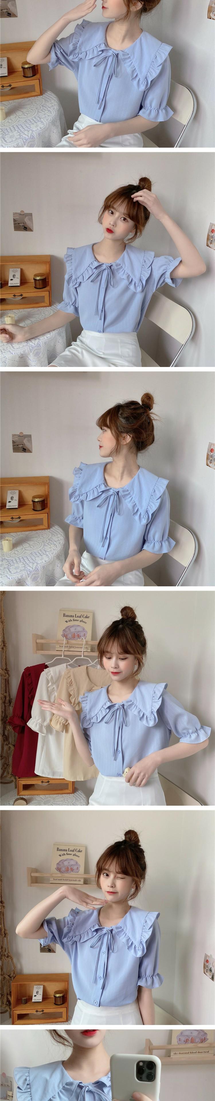 カラーショートブラウス シャツ サマー 大人ガーリー スウィート キュート カジュアル 夏物 萌量不足57420961898