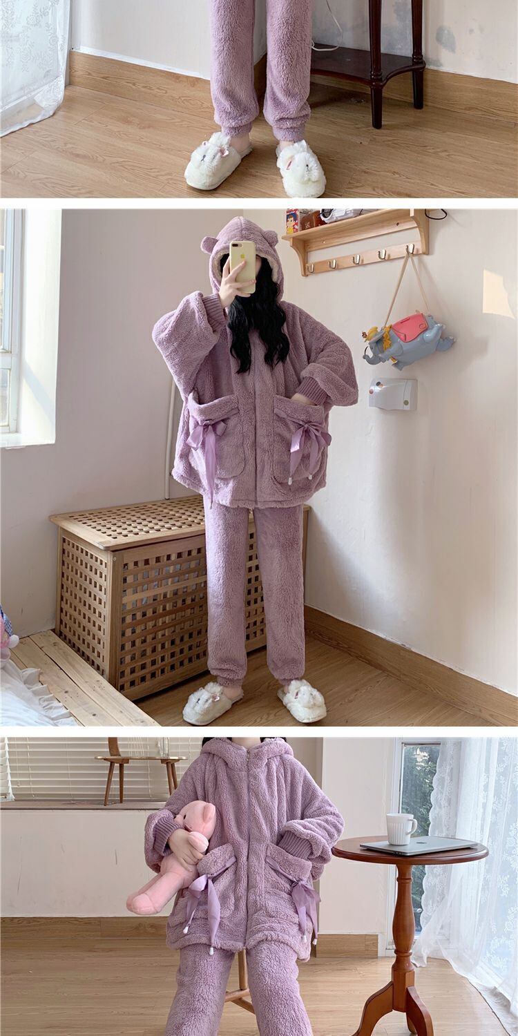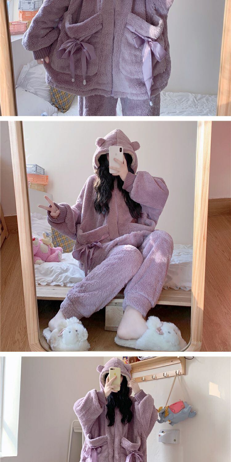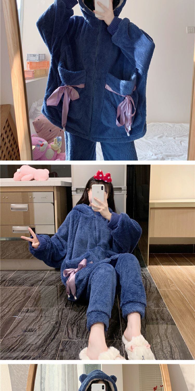 フードポケットレディースオータムウィンターベルベット ロング リボン 大人ガーリー スウィート キュート カジュアル 秋物 冬物 萌量不足85999597228