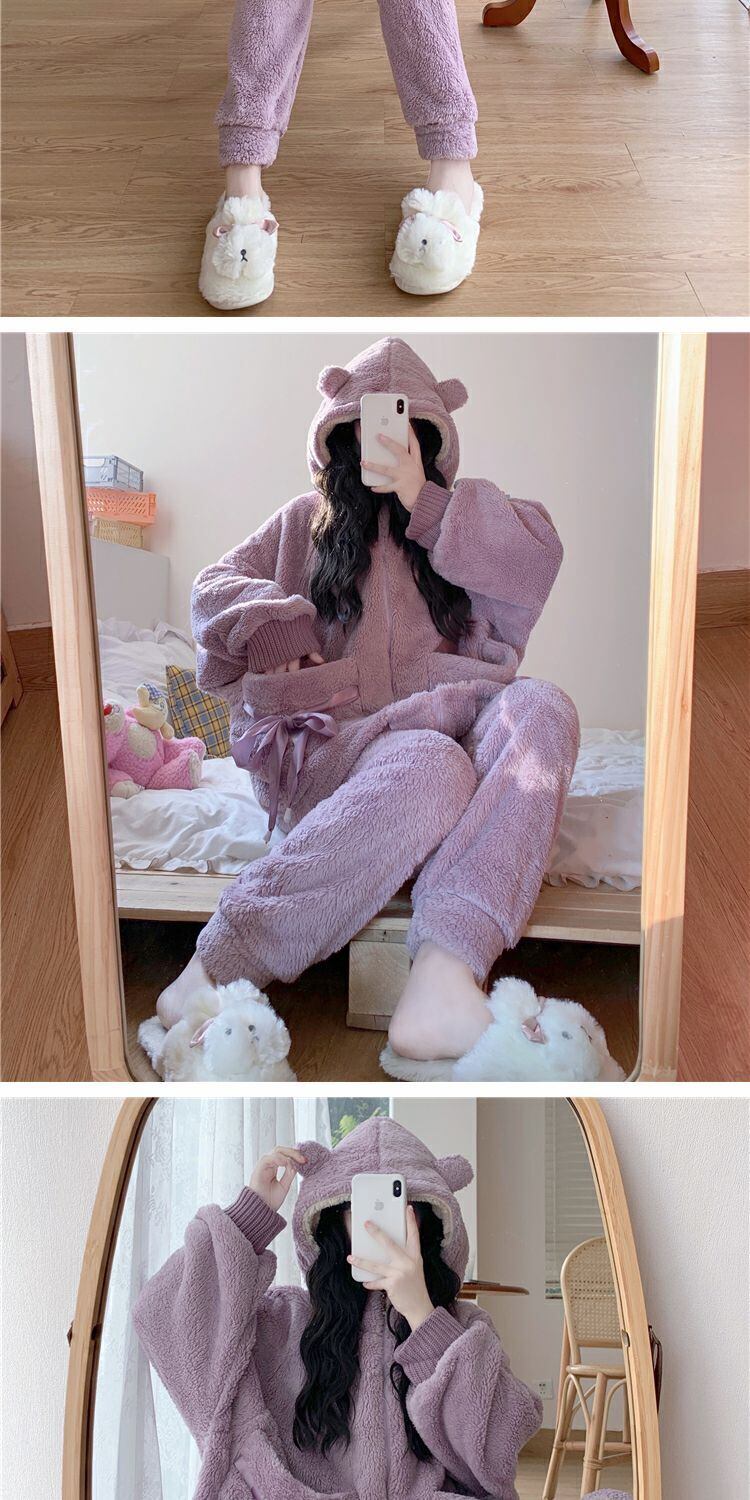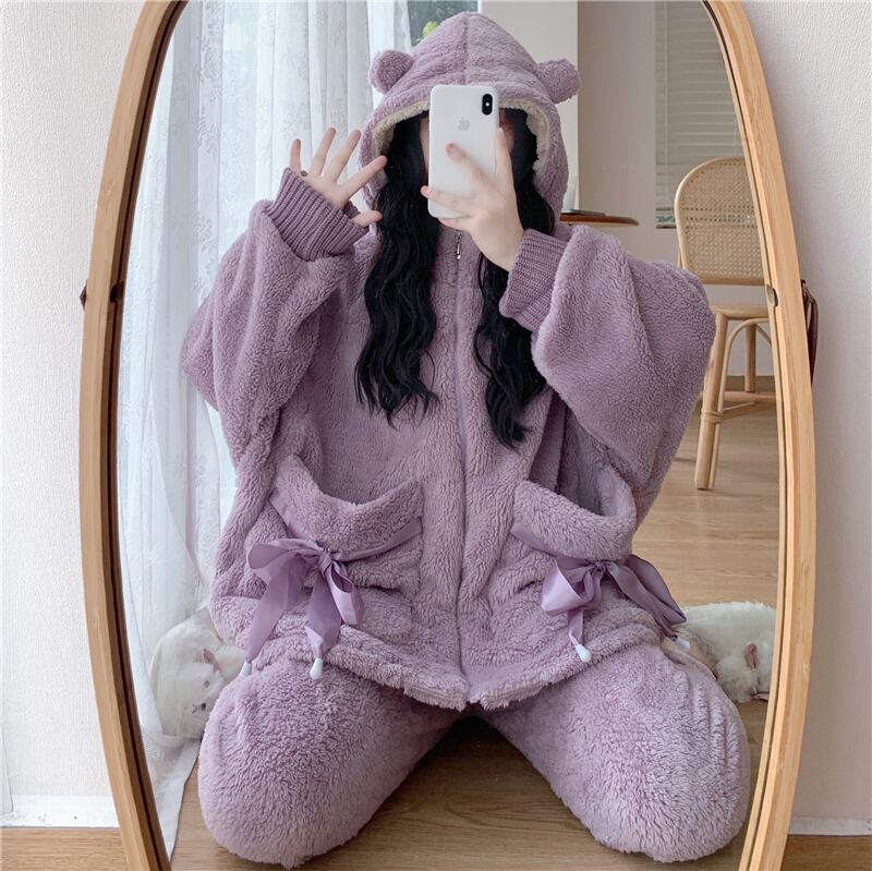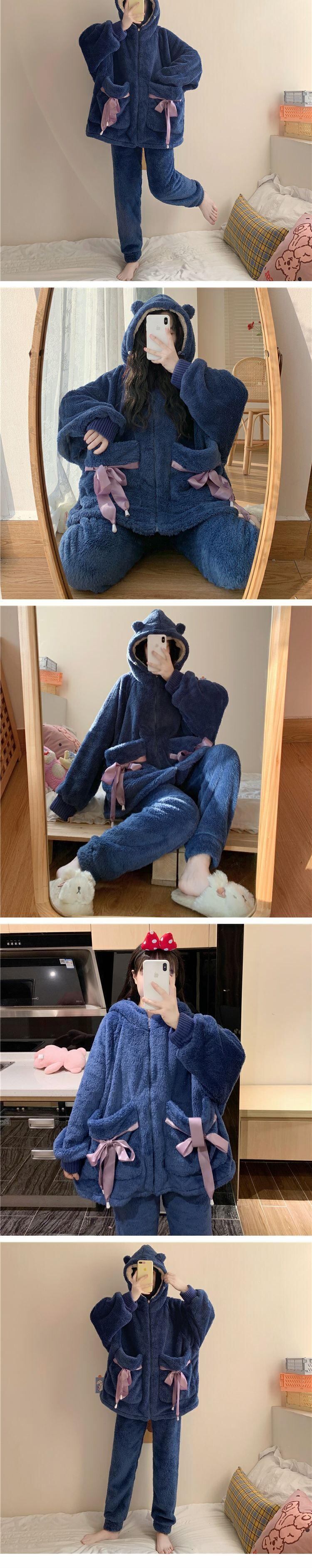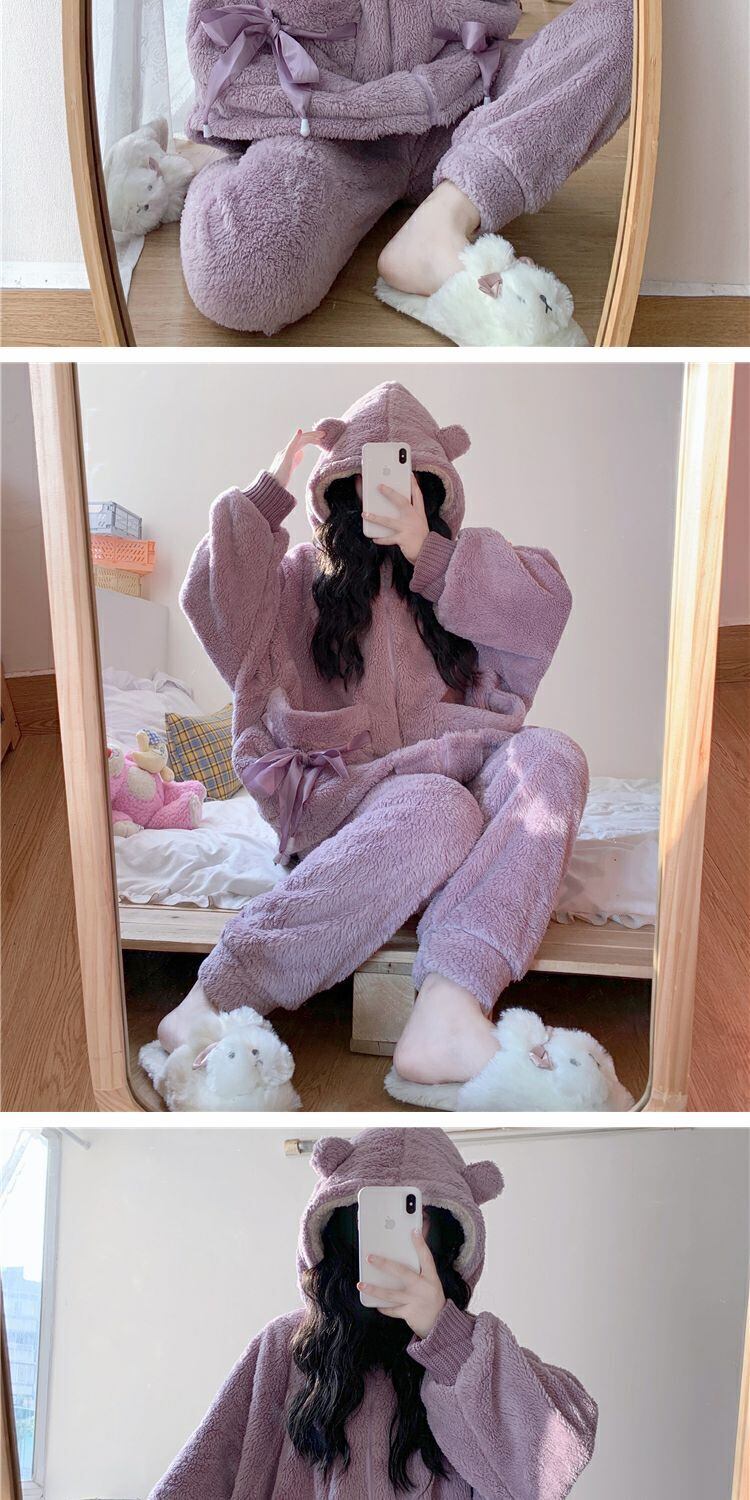 フードポケットレディースオータムウィンターベルベット ロング リボン 大人ガーリー スウィート キュート カジュアル 秋物 冬物 萌量不足85999597228