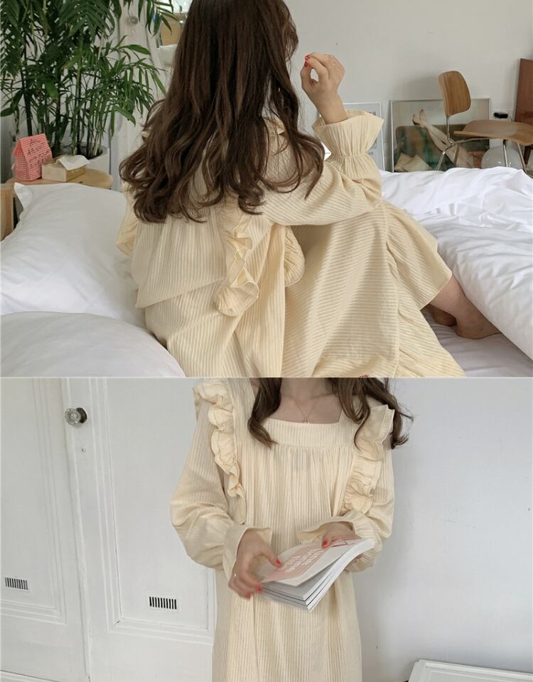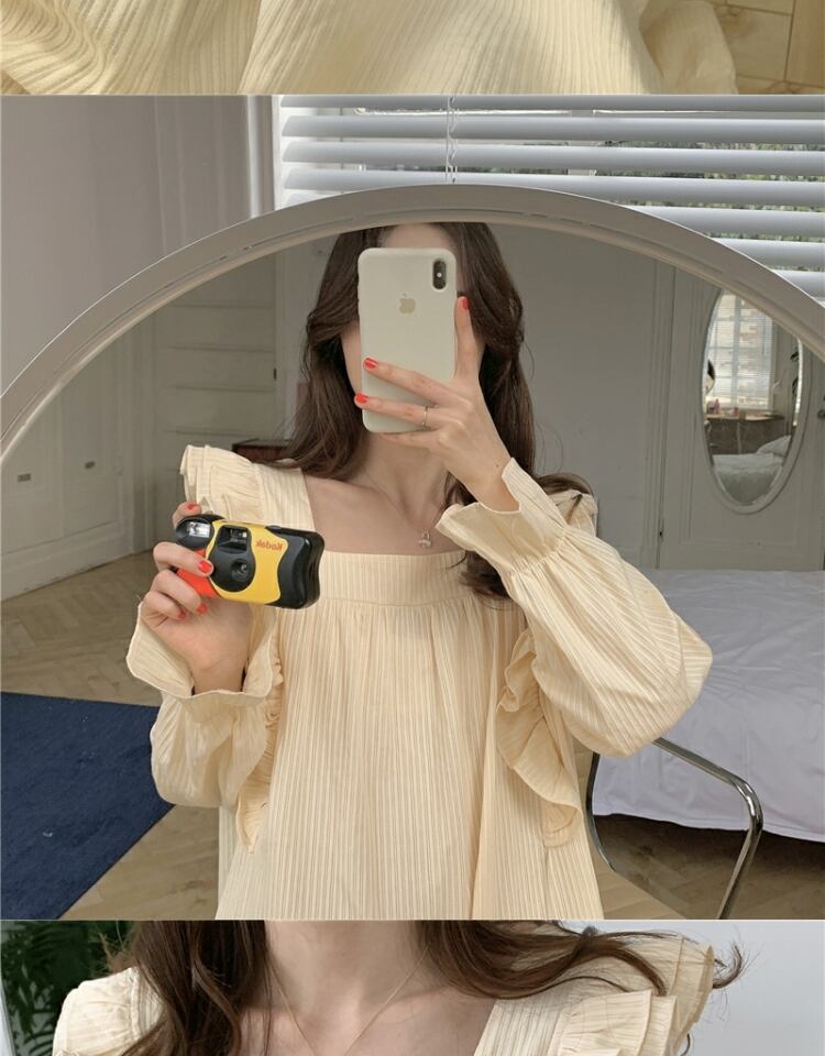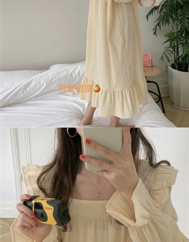 長袖スリーブスカート ドレス スプリングオータムスタイルラッフル ロング コットン 春物 秋物 ピュア 萌量不足72192759463
