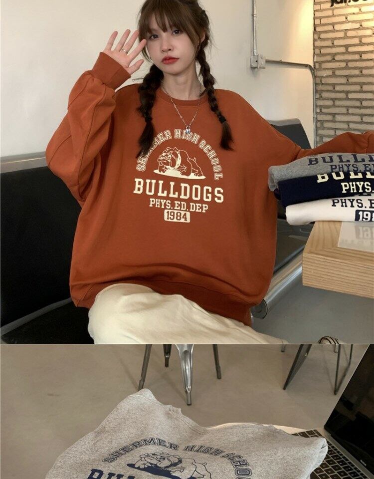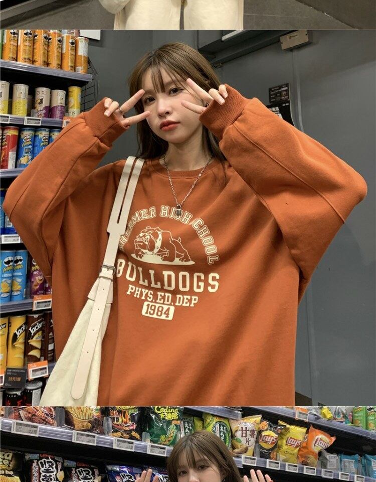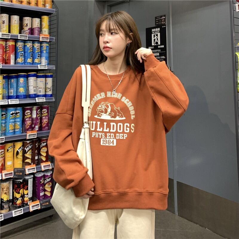 スタンダードプリント柄プルオーバー セーター レディーススプリングオータムスタイルルーズブラウス ロング レトロ 春物 秋物 萌量不足37793241540