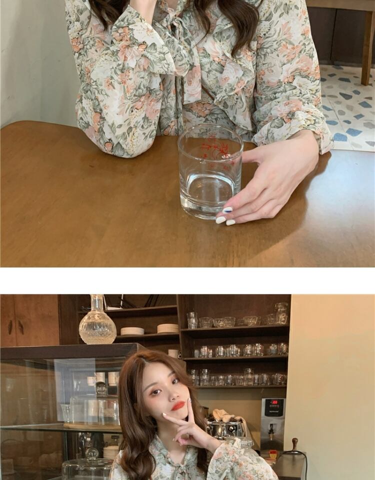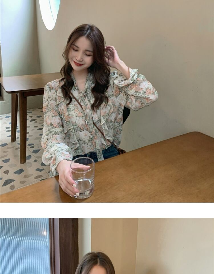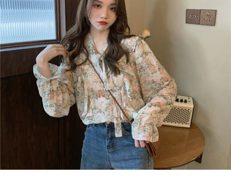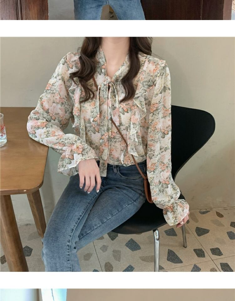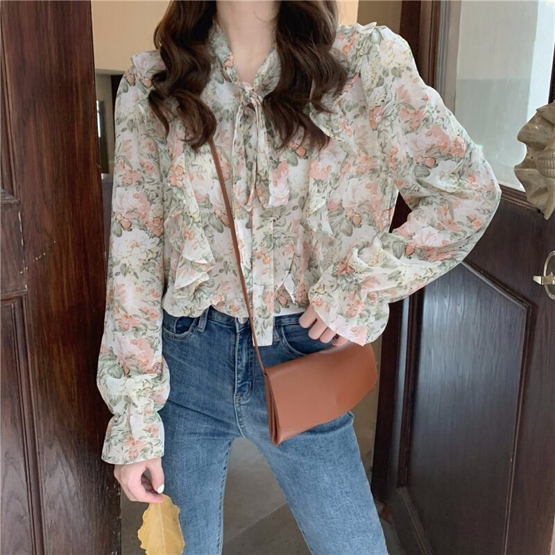 スプリングオータムフローラルレースルーズ長袖スリーブシフォンシャツ トップス レディース ロング 大人ガーリー スウィート キュート カジュアル 春物 秋物 花柄 萌量不足11799521320