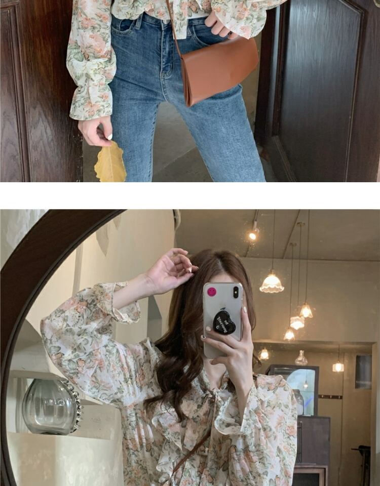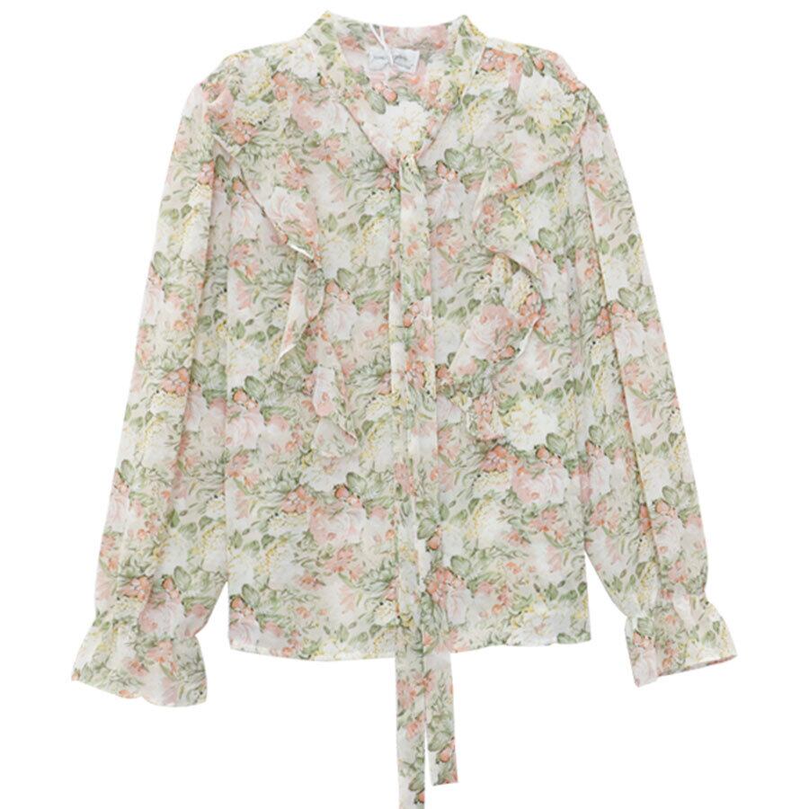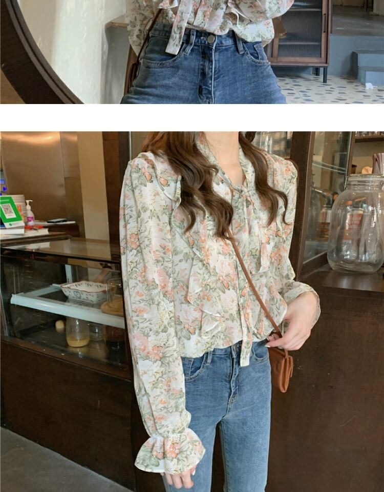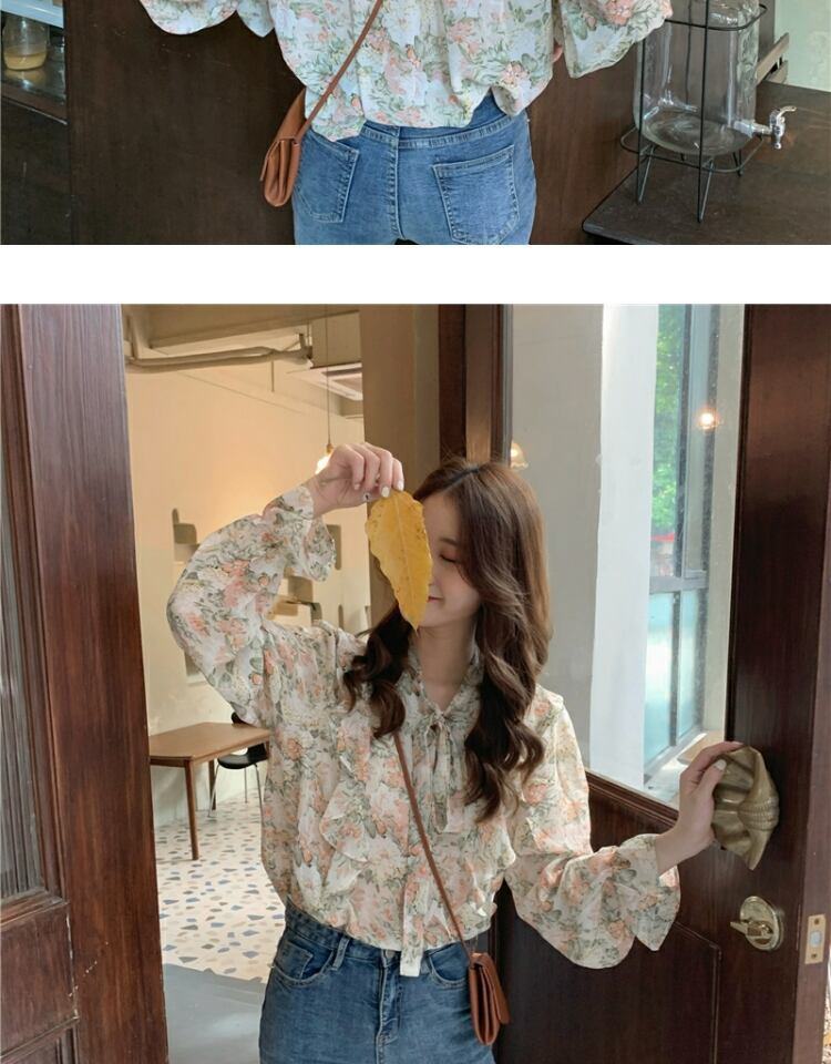 スプリングオータムフローラルレースルーズ長袖スリーブシフォンシャツ トップス レディース ロング 大人ガーリー スウィート キュート カジュアル 春物 秋物 花柄 萌量不足11799521320