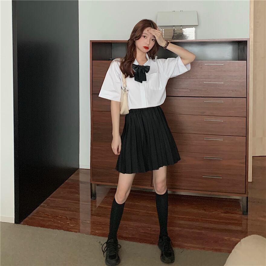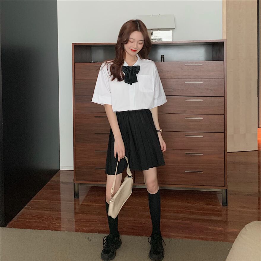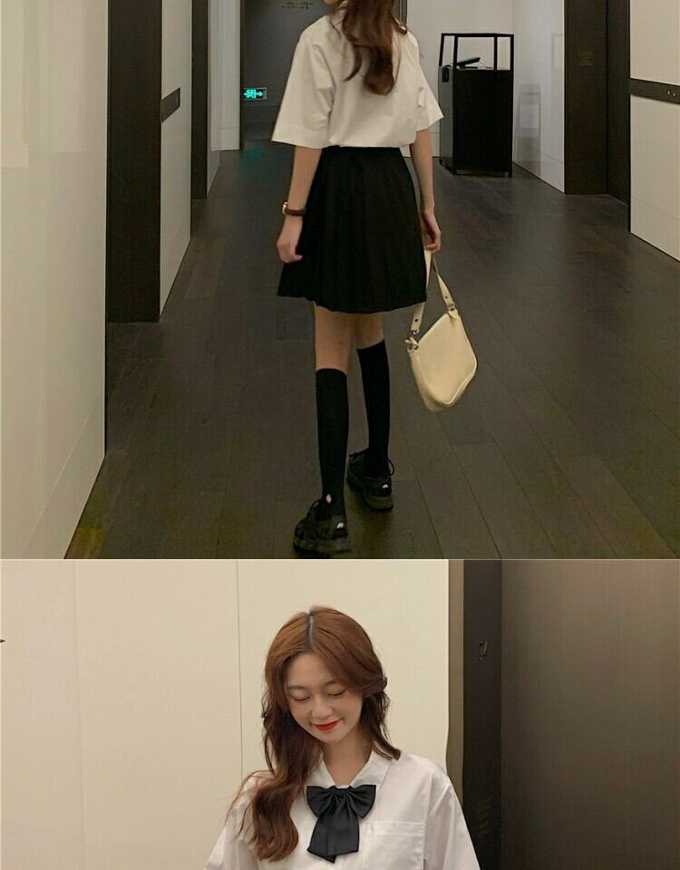 色:ワンピースプリーツスカート,蝶ネクタイシャツ