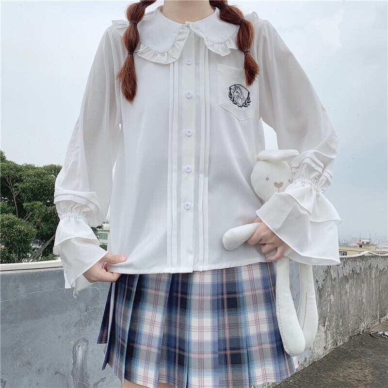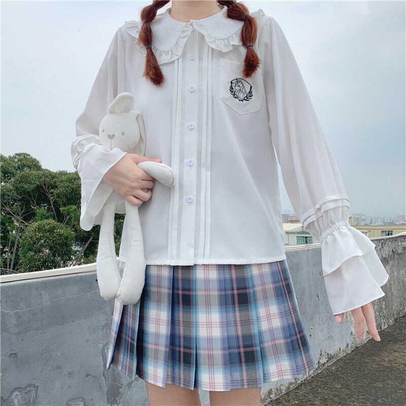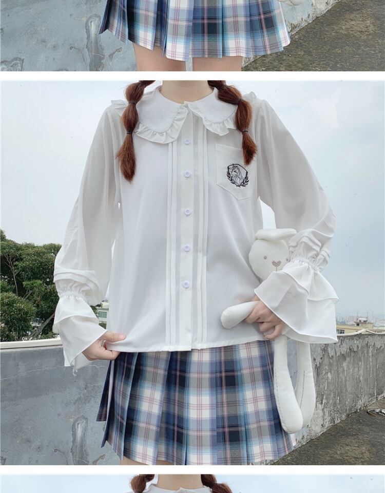 カラーシャツ トップス スプリングオータムホワイトスリーブ 春物 秋物 萌量不足32828098405