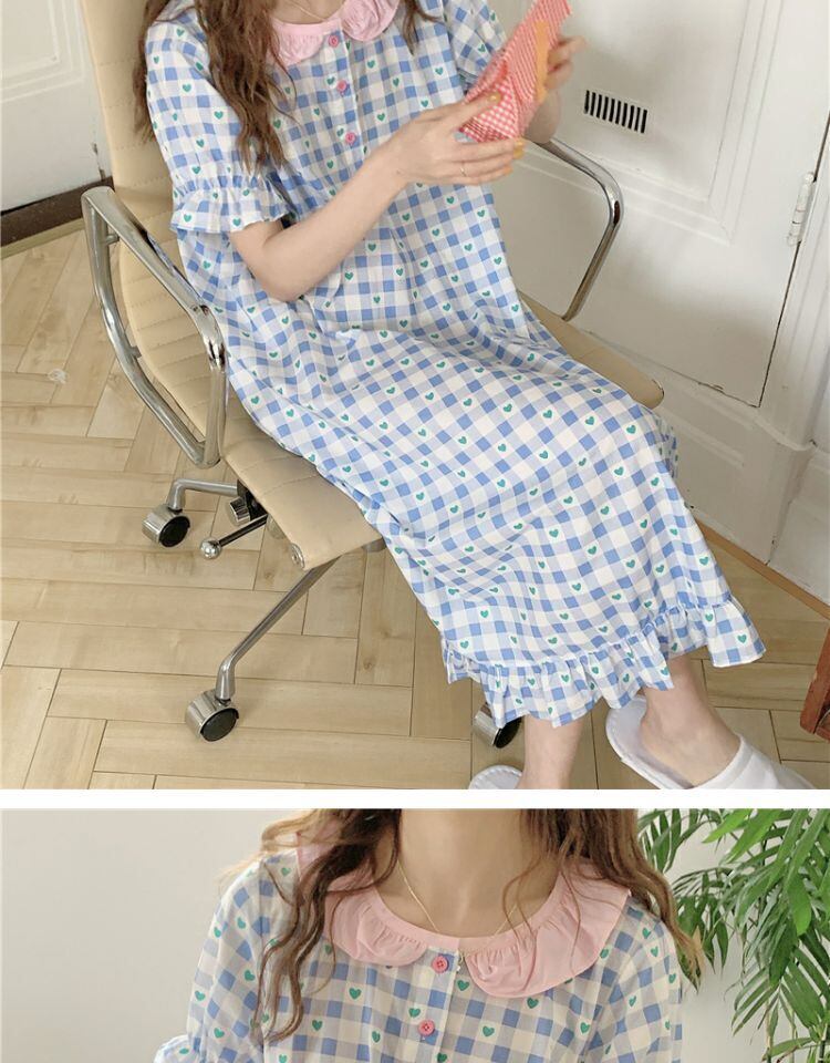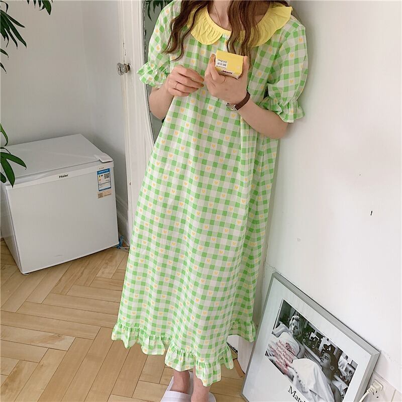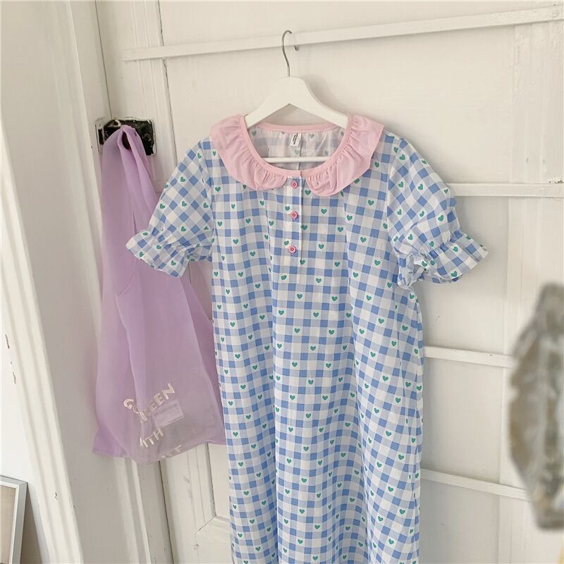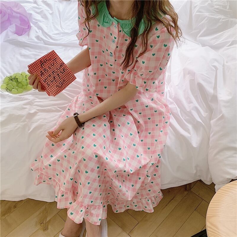 ルーズ格子柄カラーロングスカート サマー 大人ガーリー スウィート キュート カジュアル 夏物 萌量不足42938151515