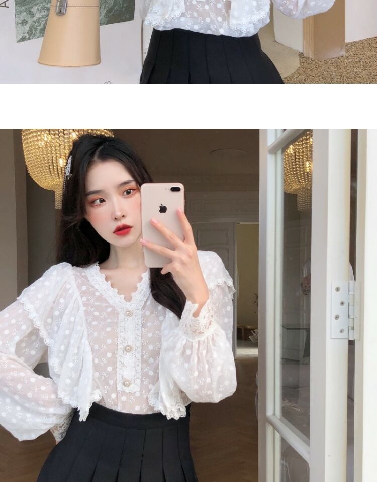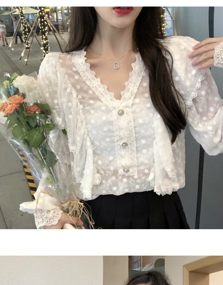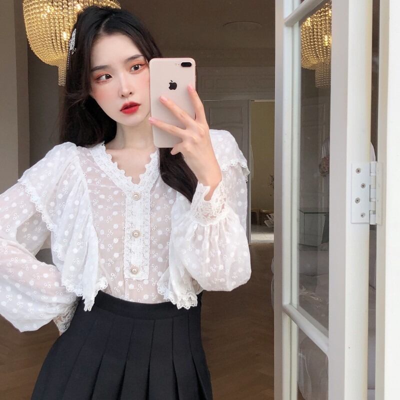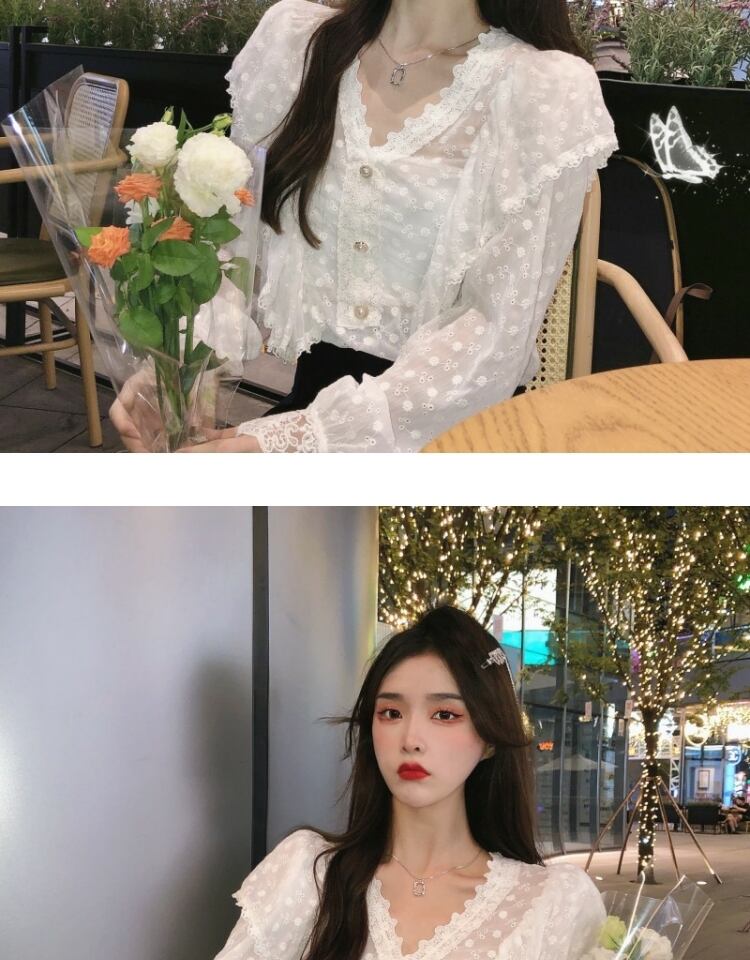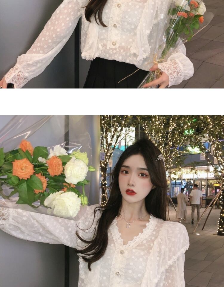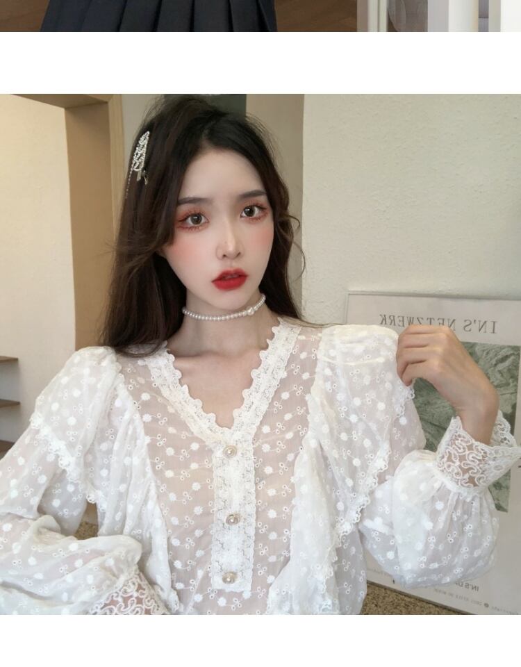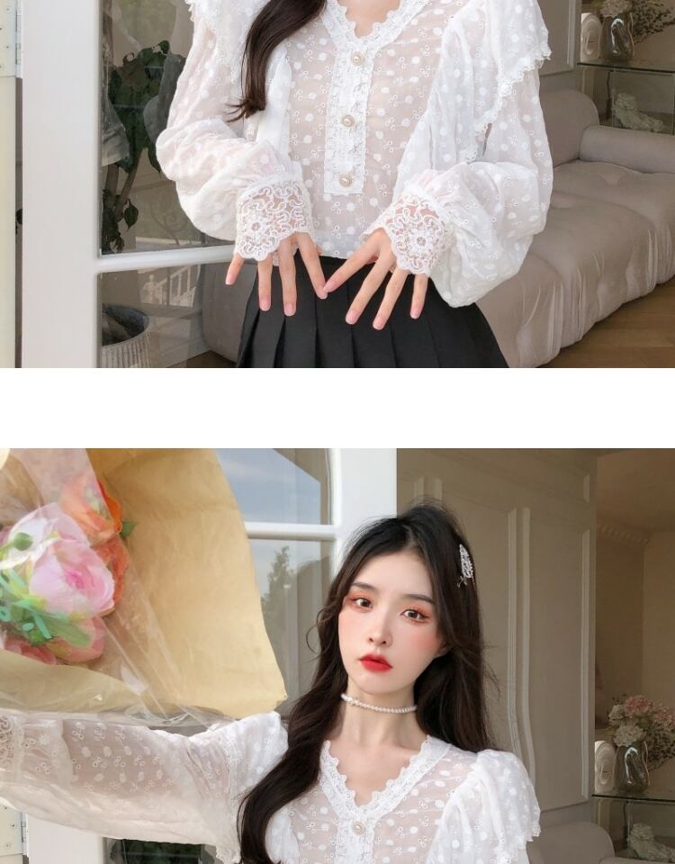 レース刺繍シフォンシャツ レディース薄手オータムトップス ロング 大人ガーリー スウィート キュート カジュアル 秋物 萌量不足46191813892