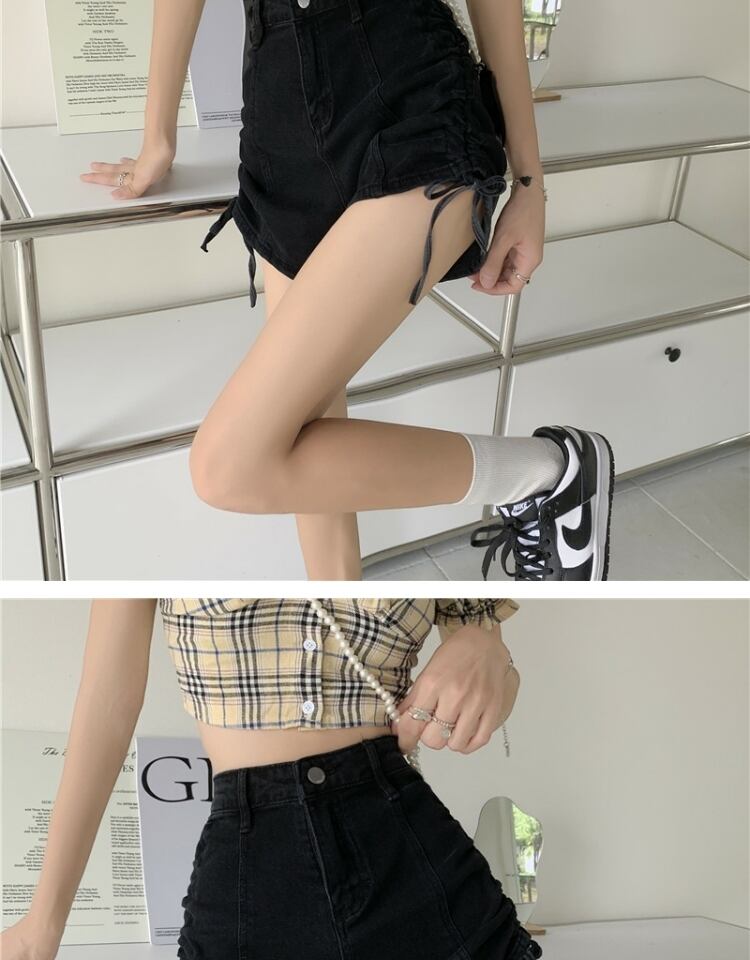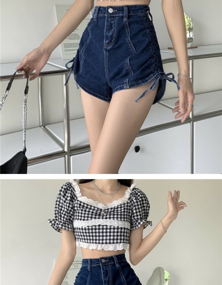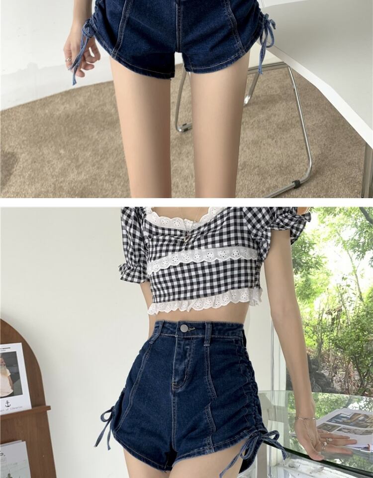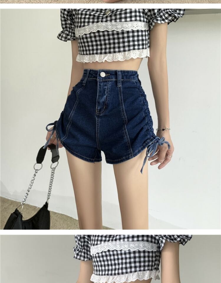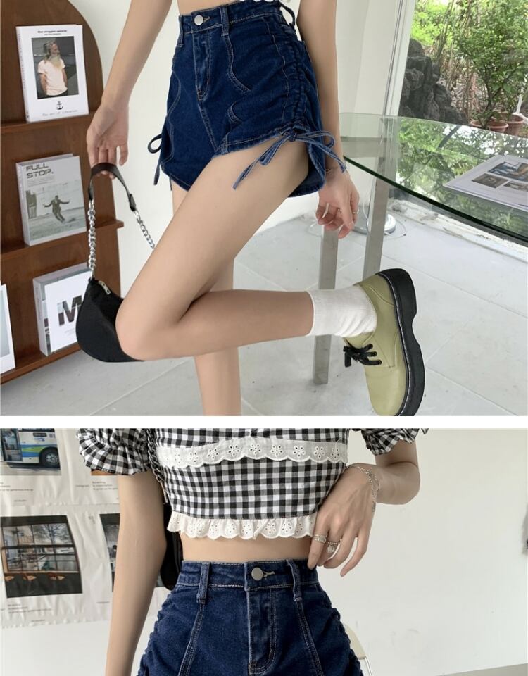 ギャザースタイルショーツ ジーンズ サマーハイウェストウェストAラインパンツ 夏物 ブルマー 萌量不足94198156206