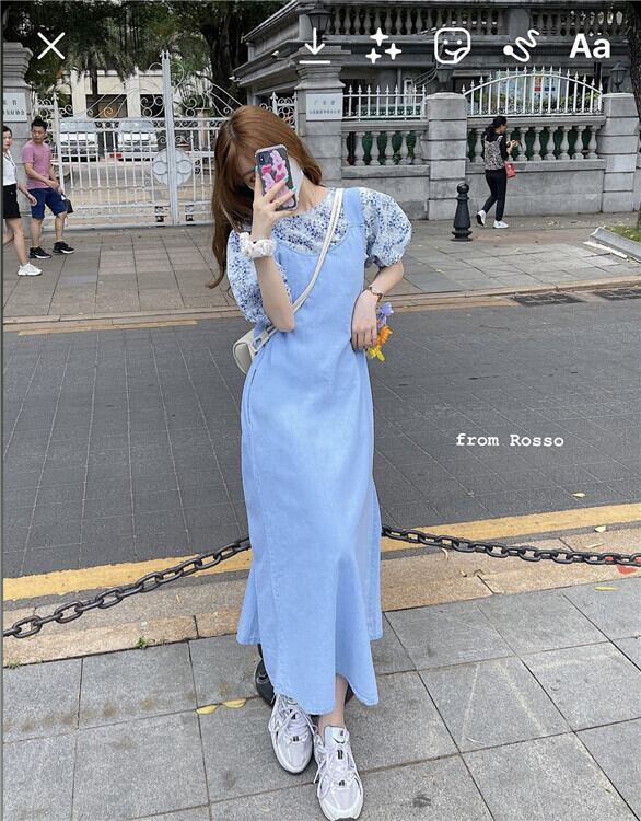 スタンダードスタイルルーズ薄手スカート ドレス サマーロング レトロ 夏物 萌量不足76335632043
