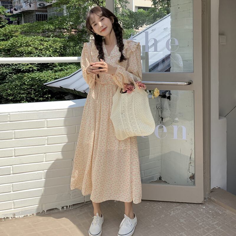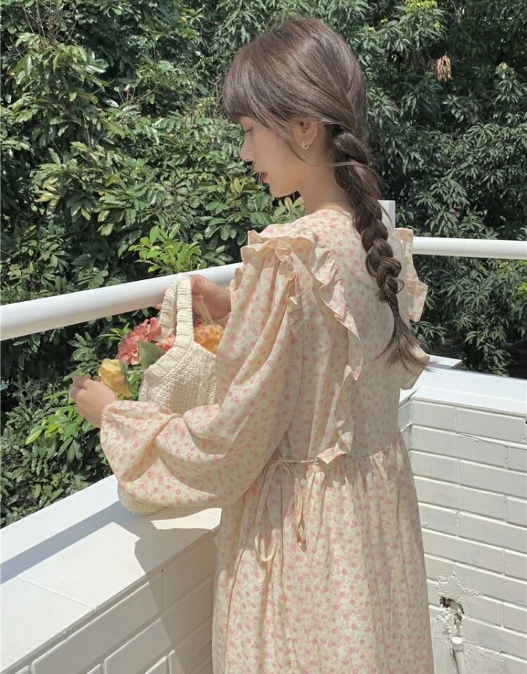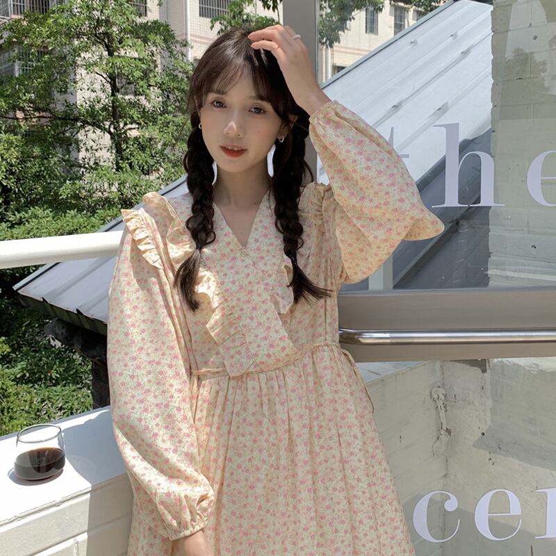 フローラルドレス スプリングオータムスカート 大人ガーリー スウィート キュート カジュアル 春物 秋物 花柄 萌量不足82562219032