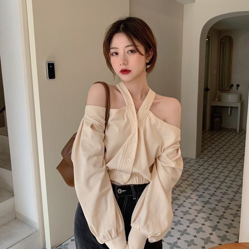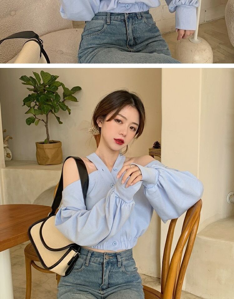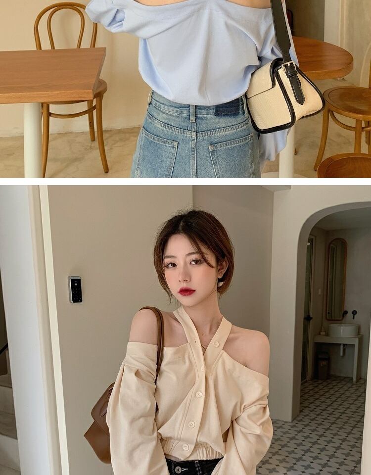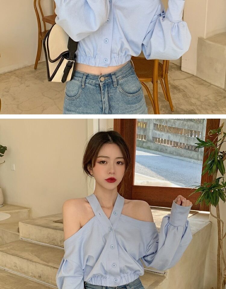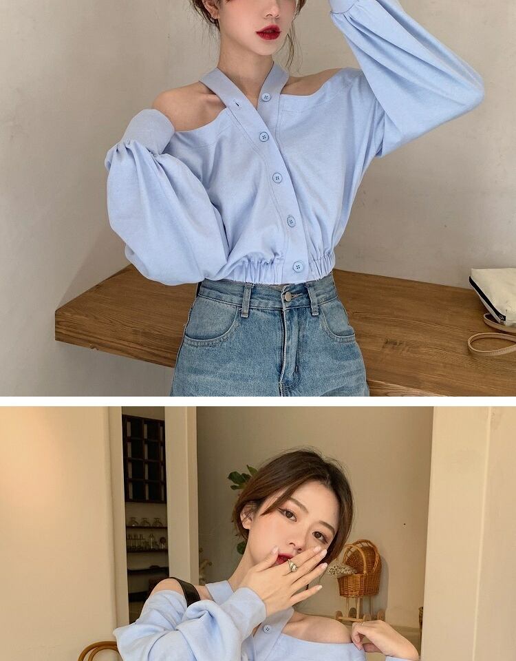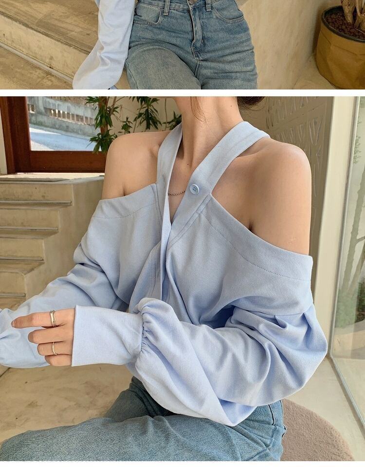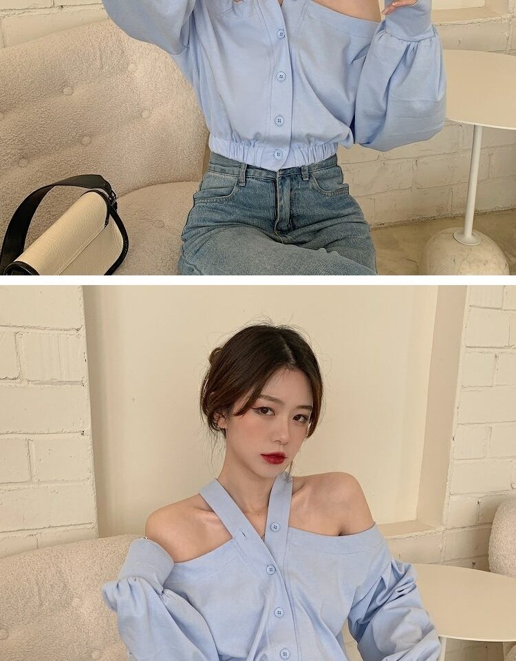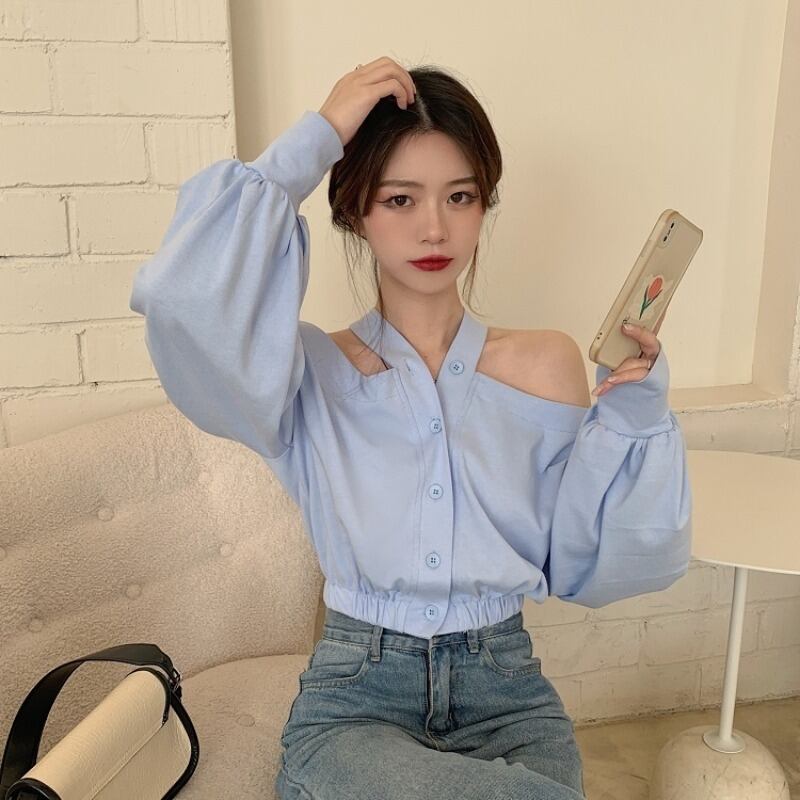 ブラウス スタンダードスプリングオータムルーズブルーシャツ ロング レトロ 春物 秋物 萌量不足37098254155