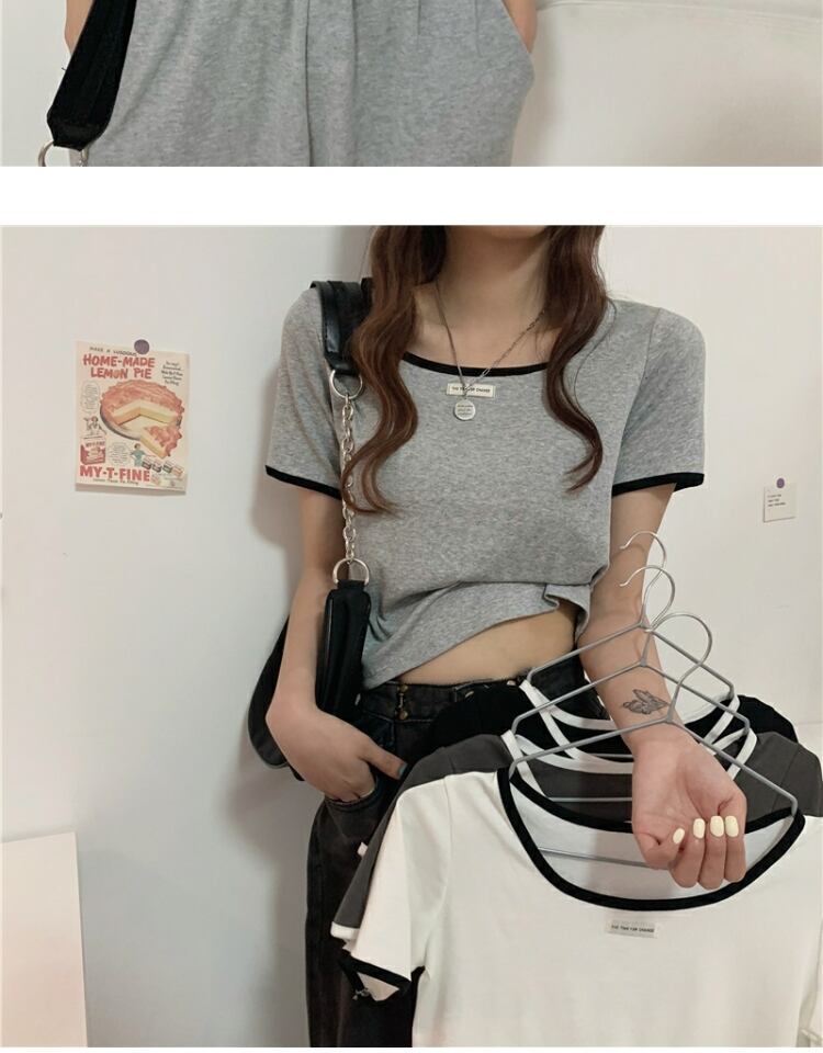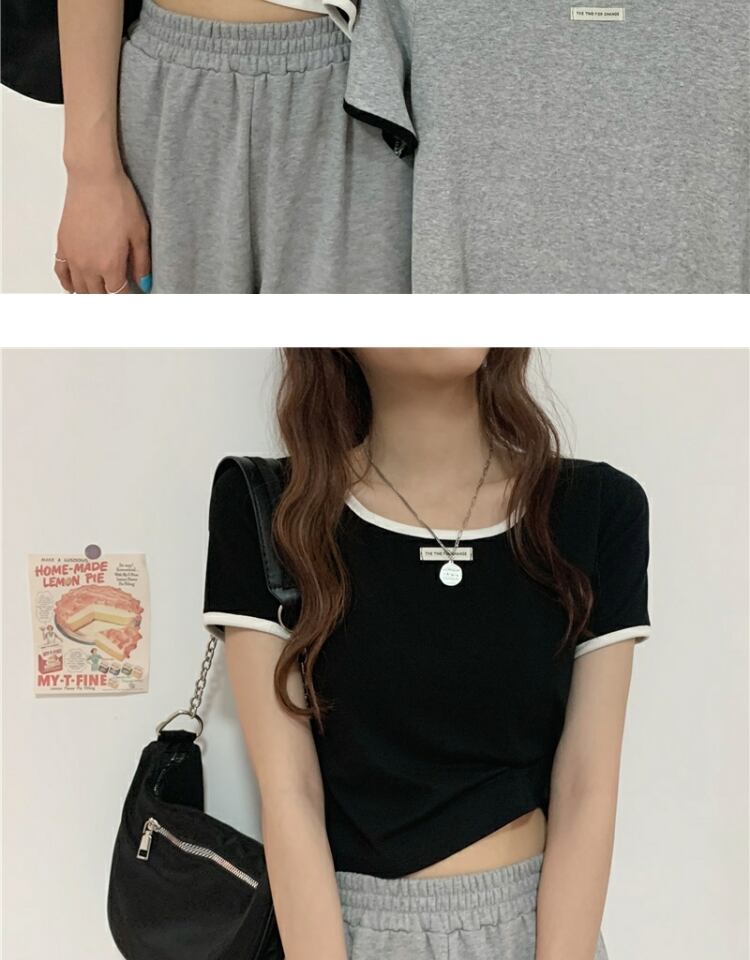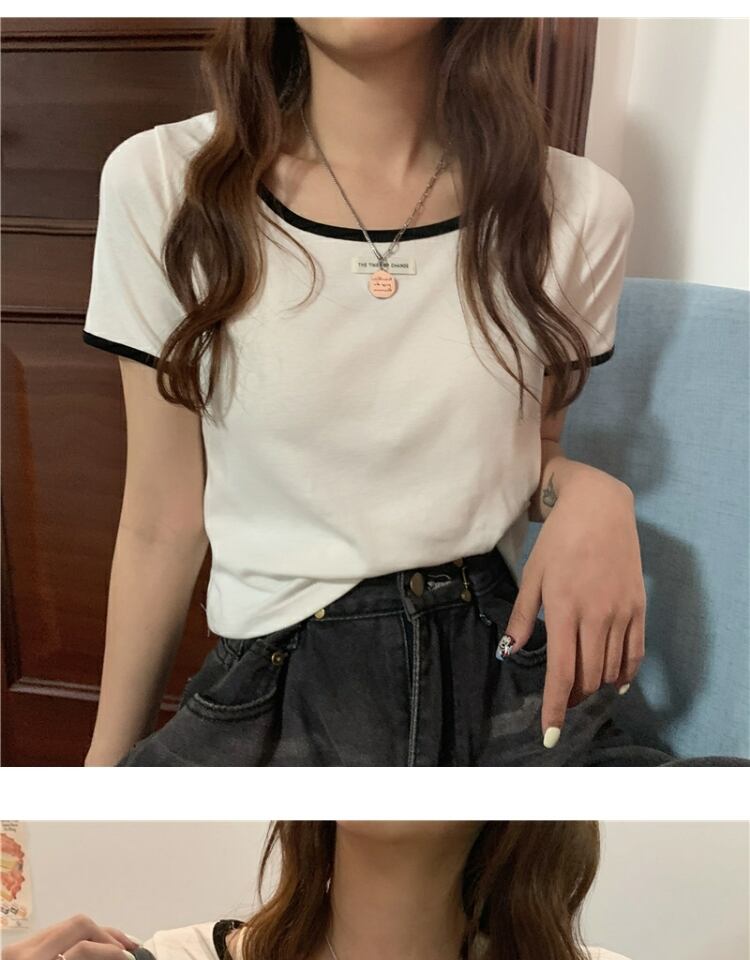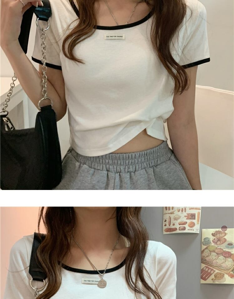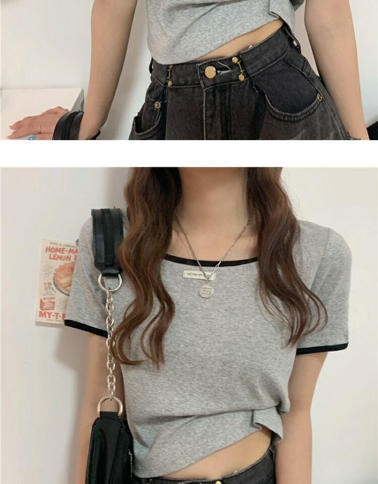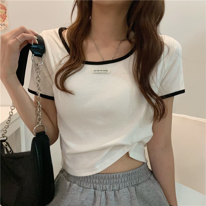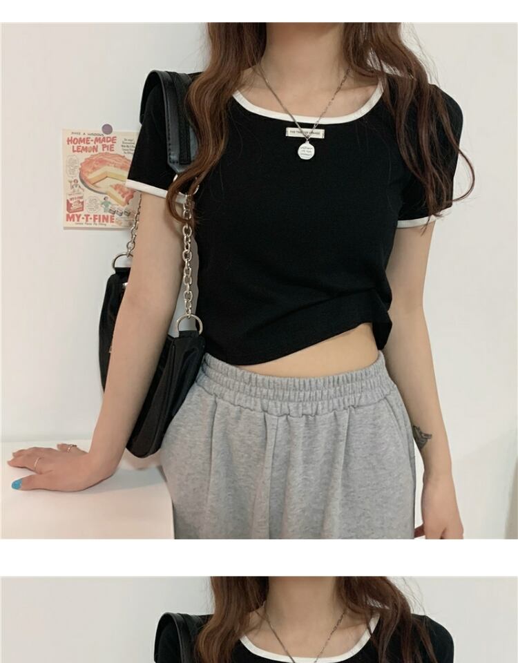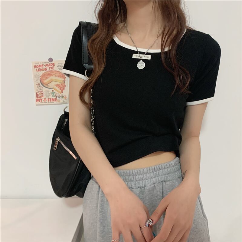 ショートトップス サマー薄手スタイルカラーハイウェストウェストホワイトTシャツ 大人ガーリー スウィート キュート カジュアル 夏物 萌量不足61574497548