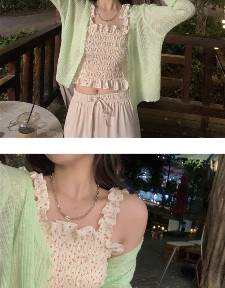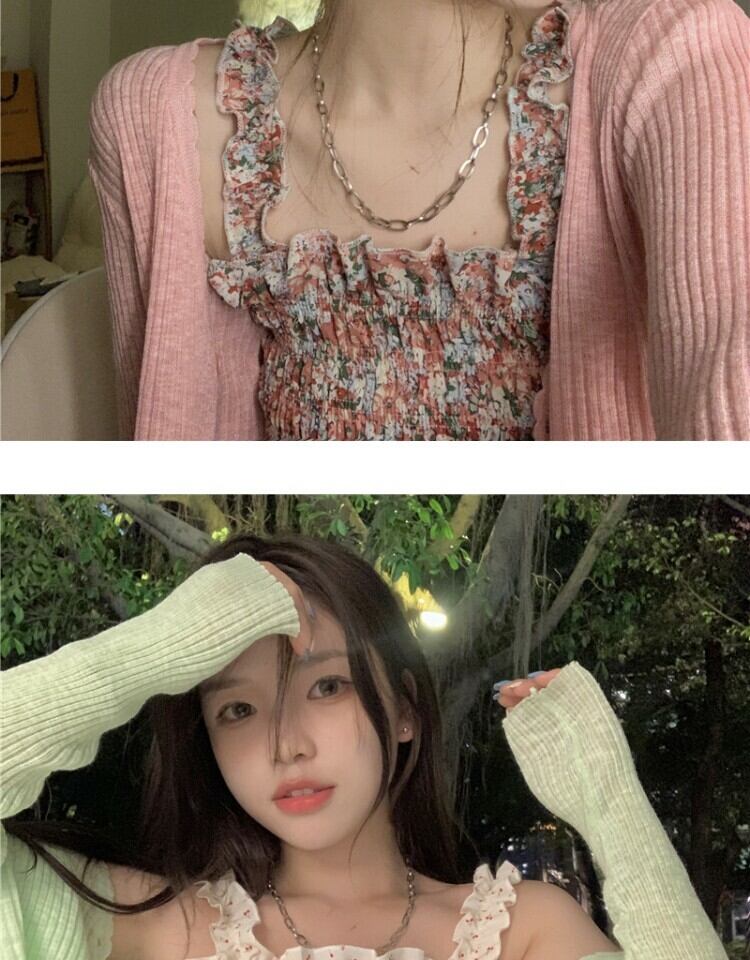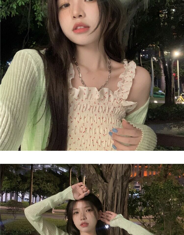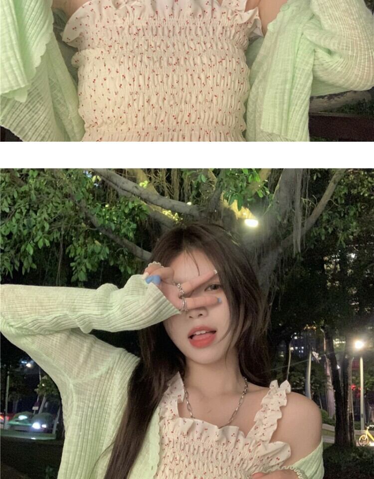 色:赤いサスペンダー,アプリコットスリング,赤いカーディガン,グリーンカーディガン