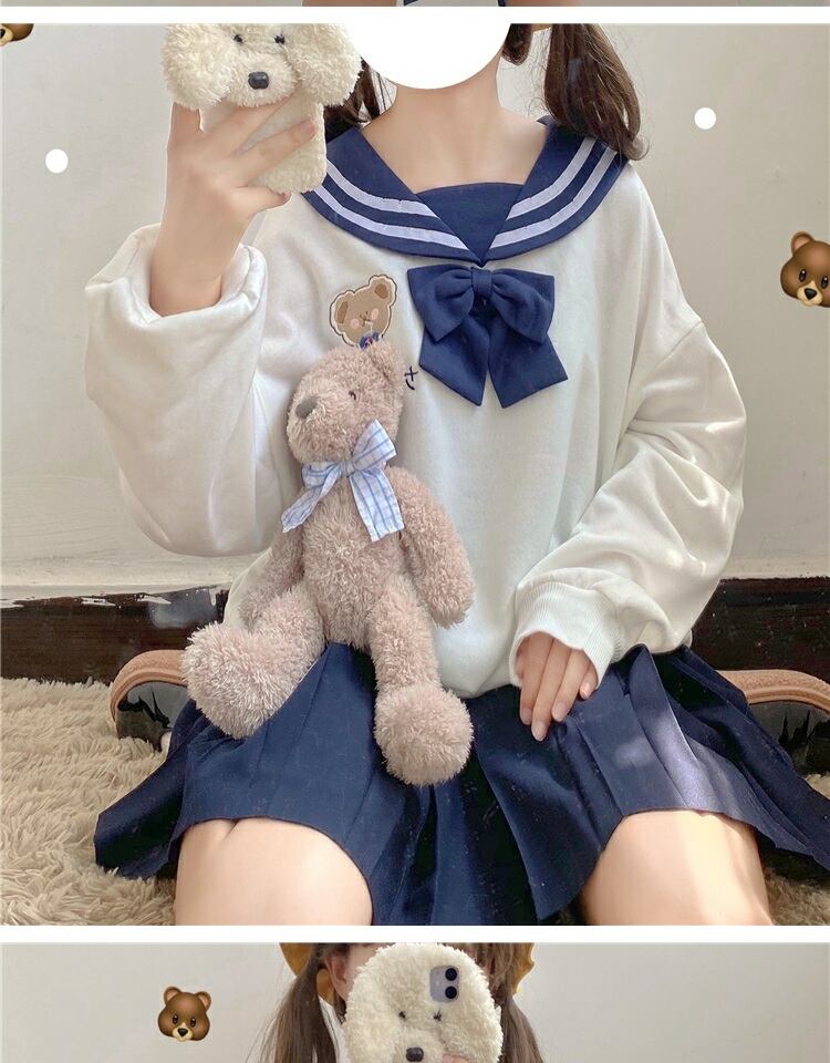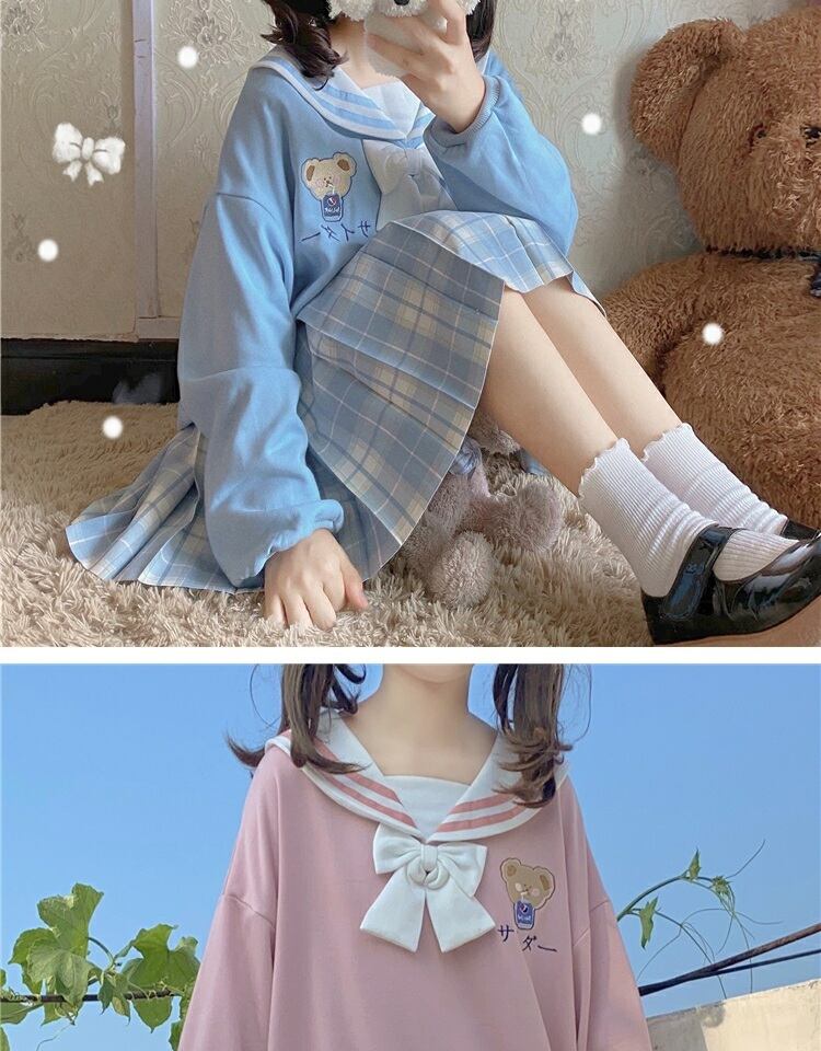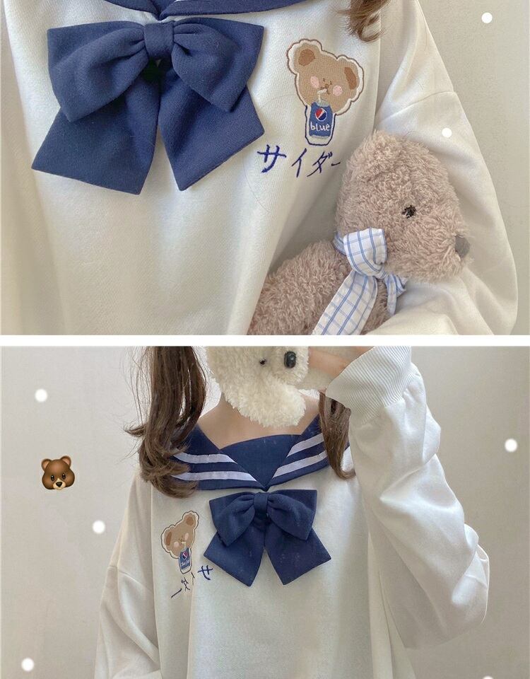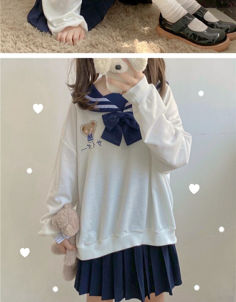 刺繍ネイビーカラープルオーバー セーター レディーススプリングオータムルーズブラウス 大人ガーリー スウィート キュート カジュアル 春物 秋物 萌量不足67741284419