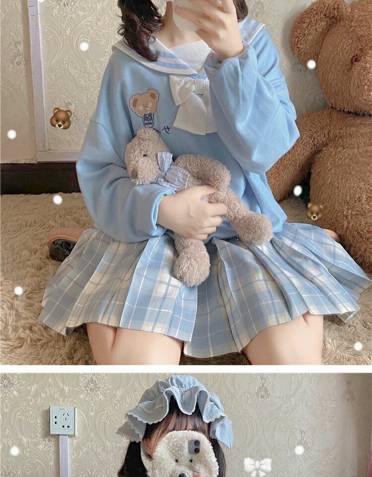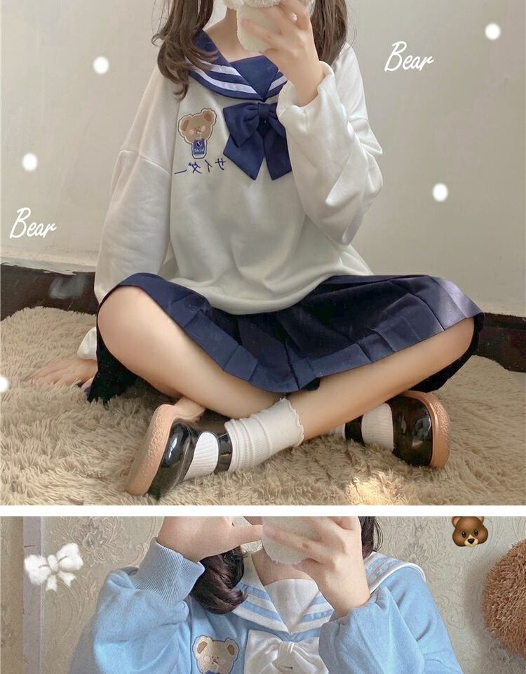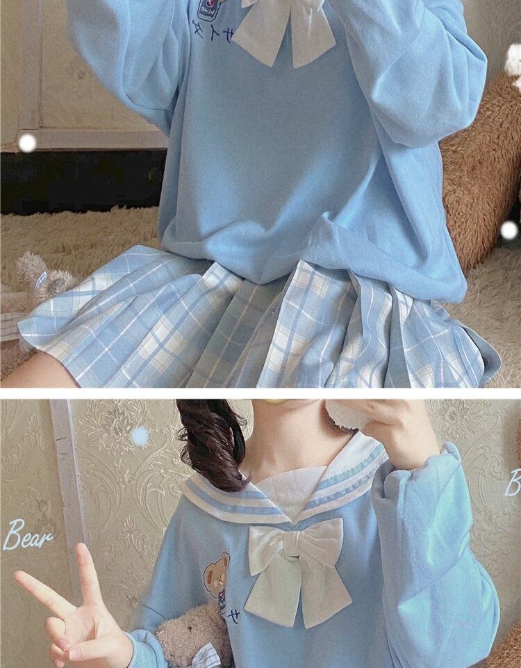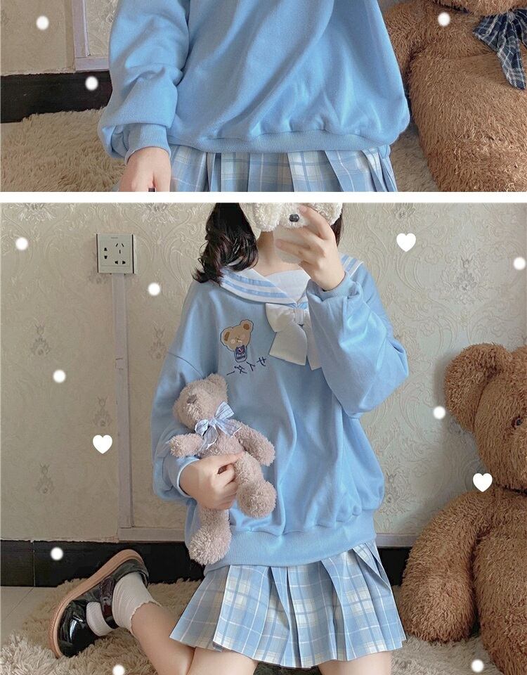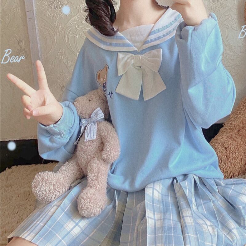 刺繍ネイビーカラープルオーバー セーター レディーススプリングオータムルーズブラウス 大人ガーリー スウィート キュート カジュアル 春物 秋物 萌量不足67741284419