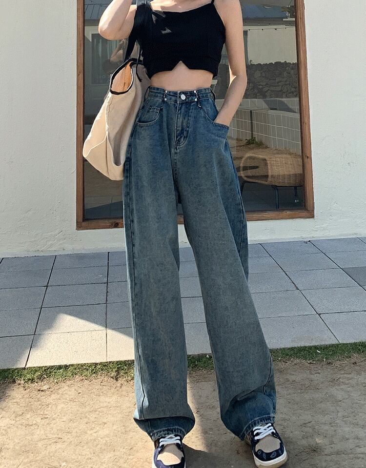 薄手ジーンズ レディーススタンダードルーズパンツ レトロ 萌量不足76031210891