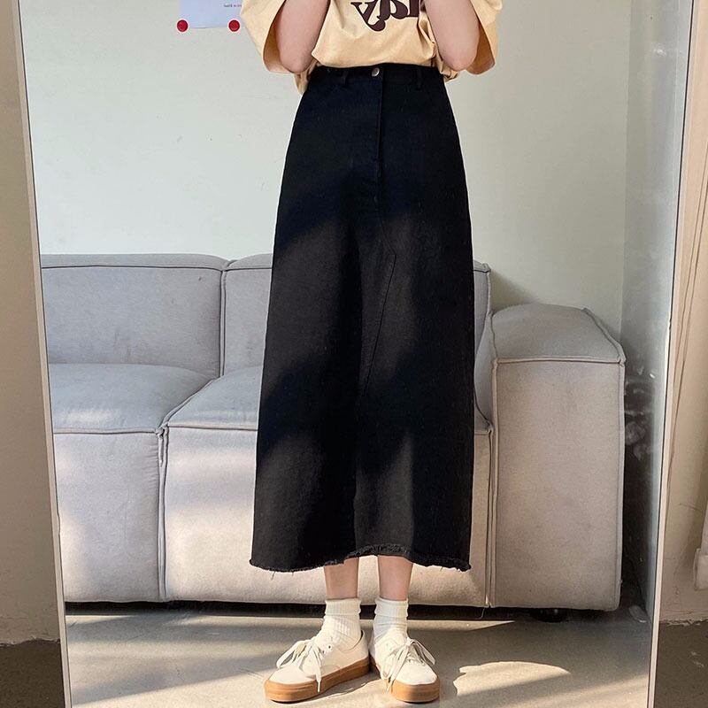 ホワイトスカート オータムハイウェストAラインロング薄手 秋物 萌量不足4030663589