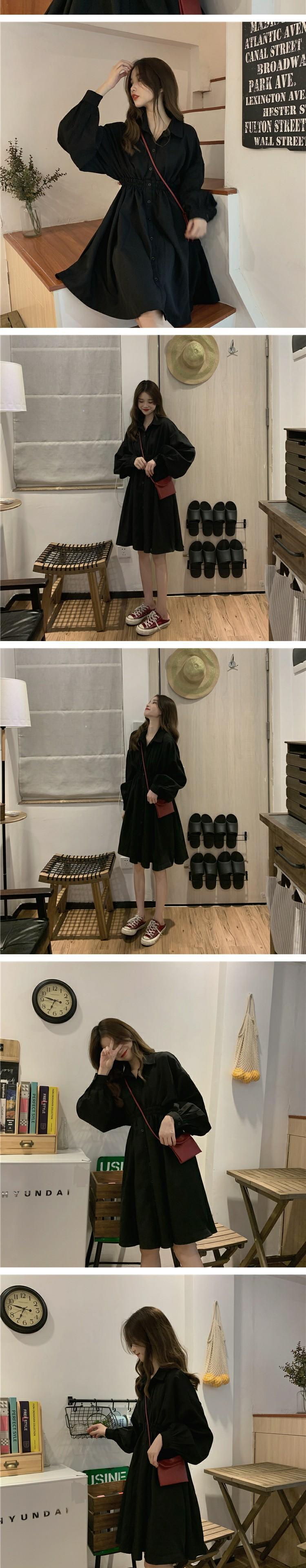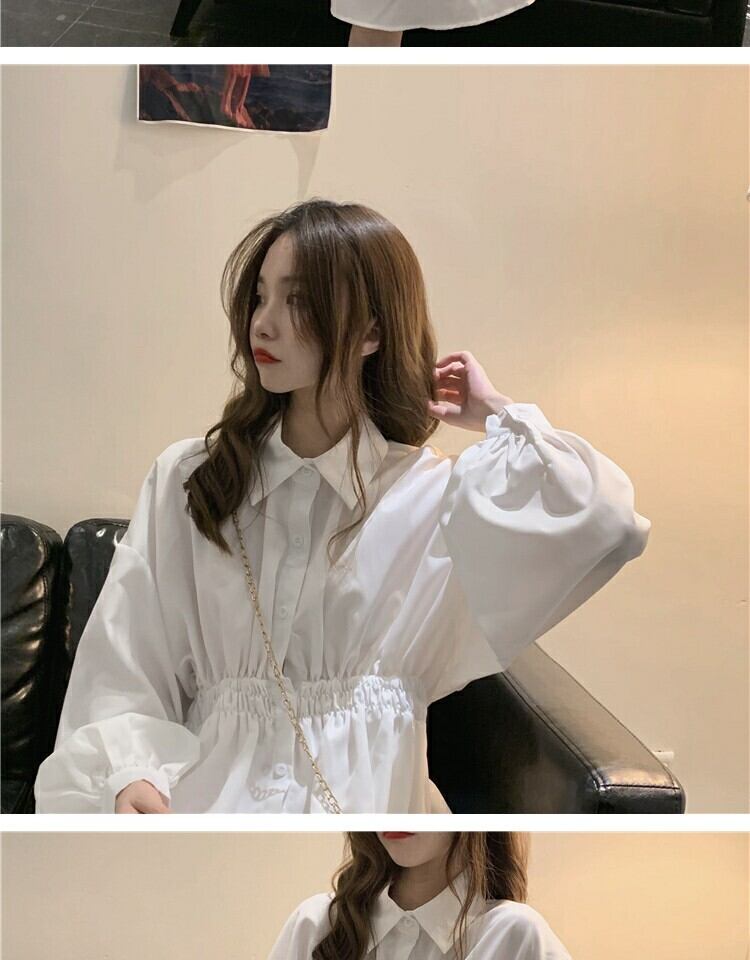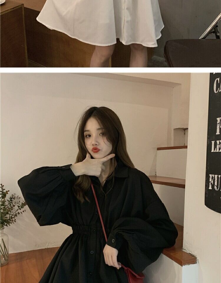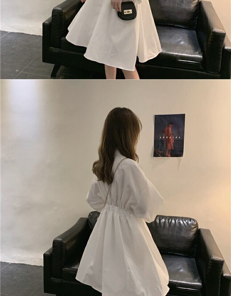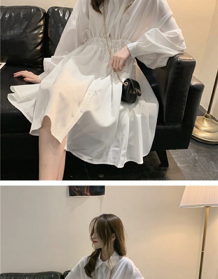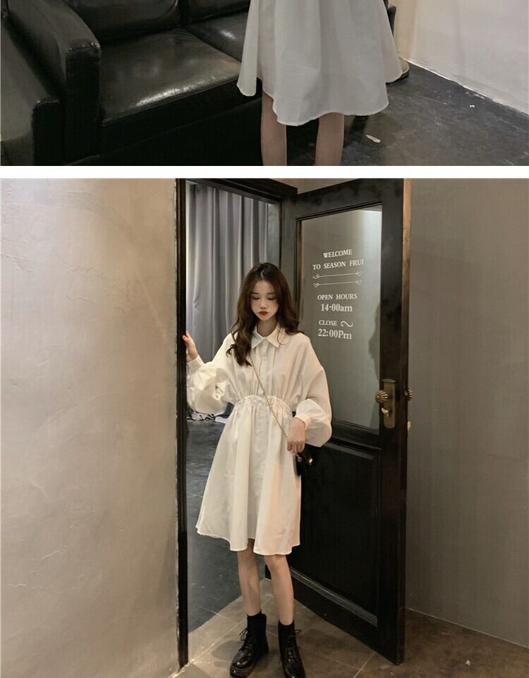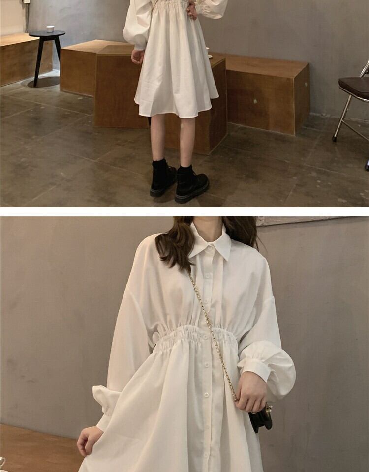 スタンダードシャツ スタイルホワイトドレス スプリングオータムウェストスリムスカート ロング レトロ 春物 秋物 萌量不足30545115690