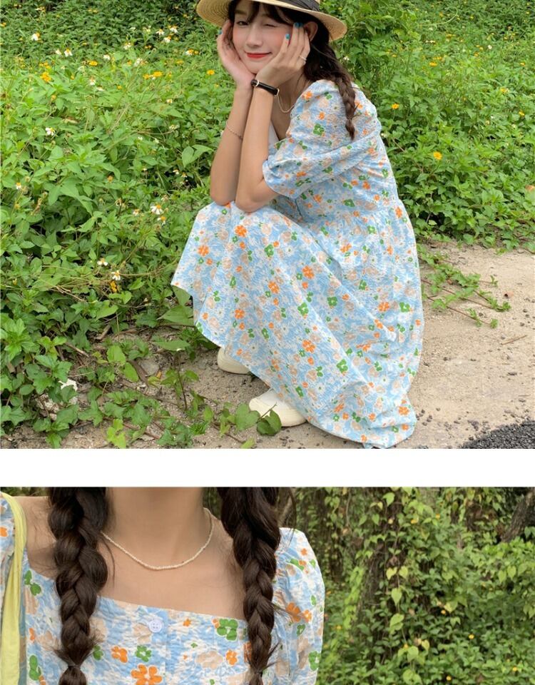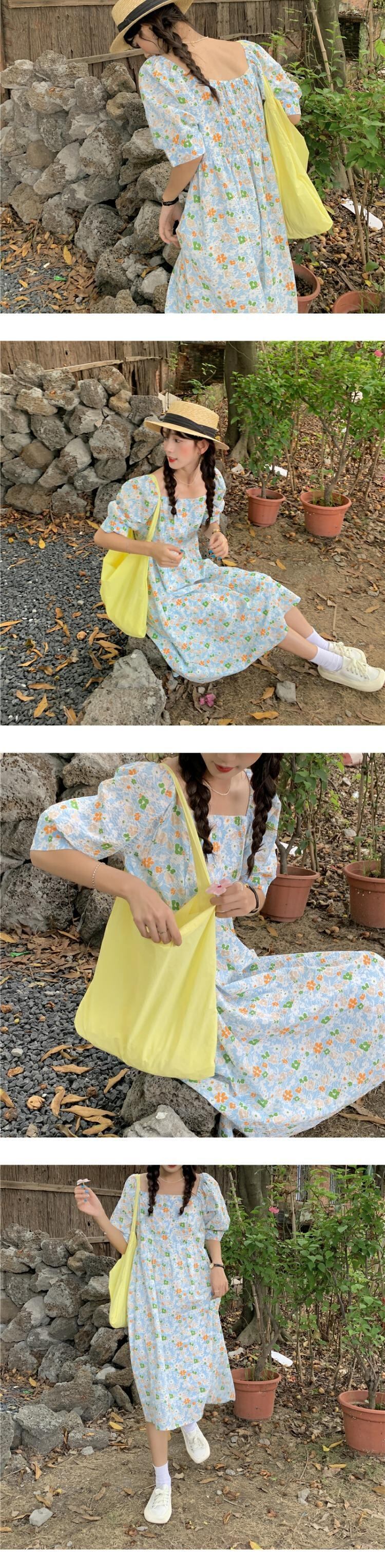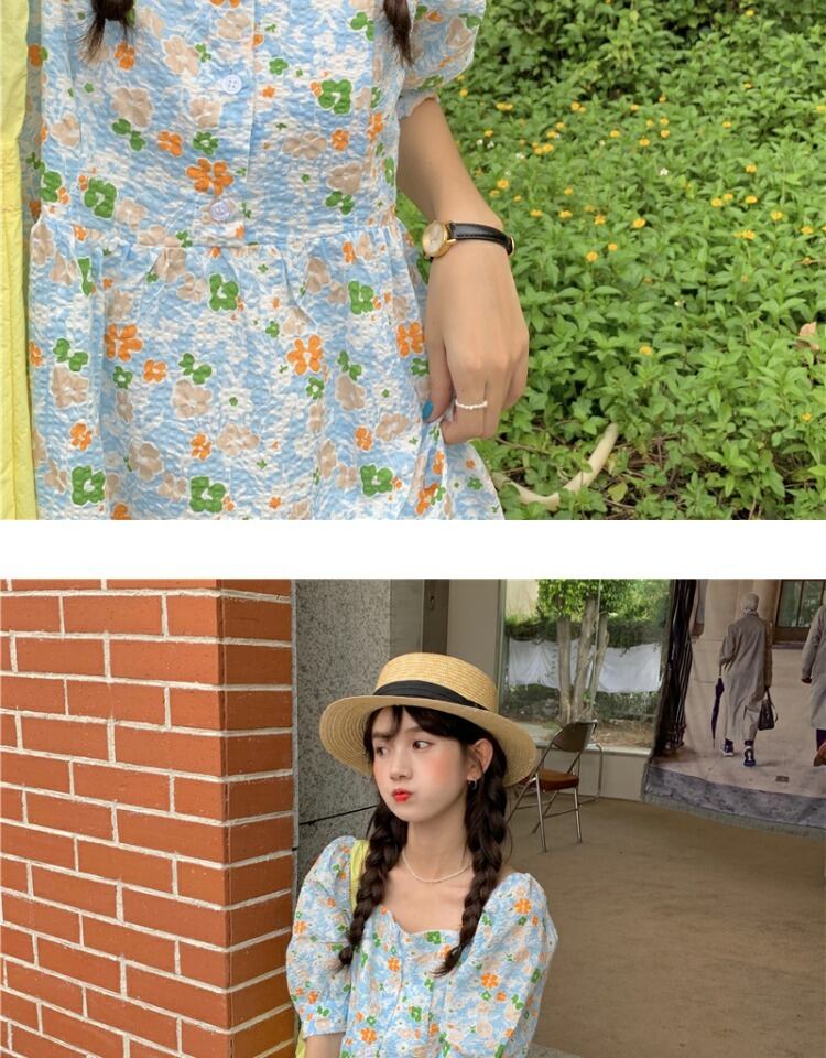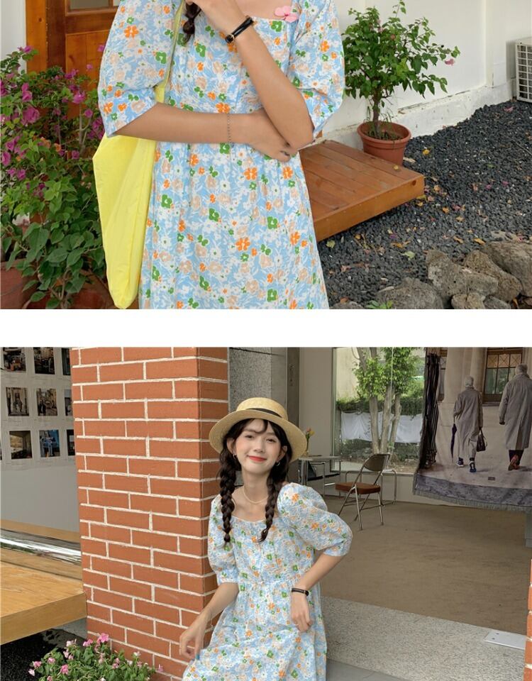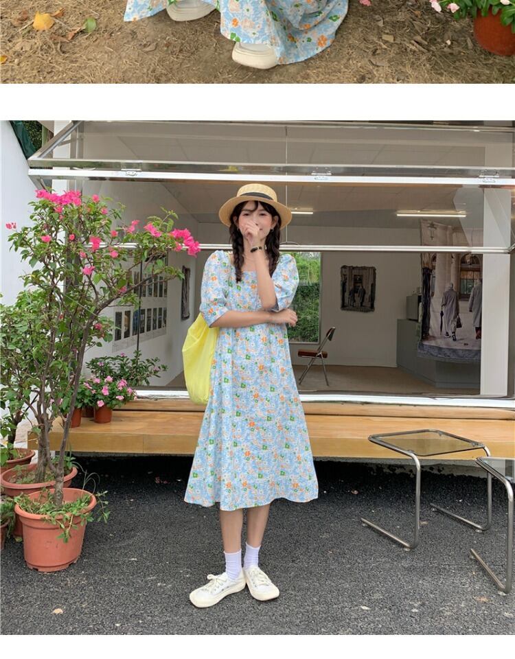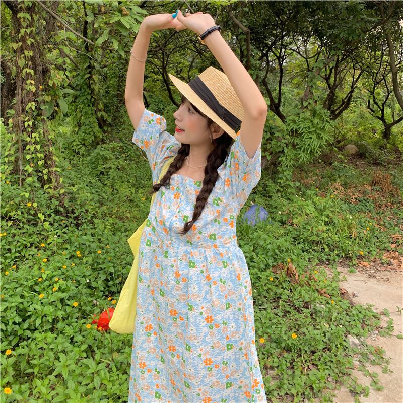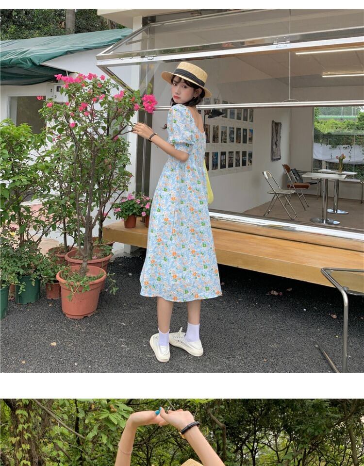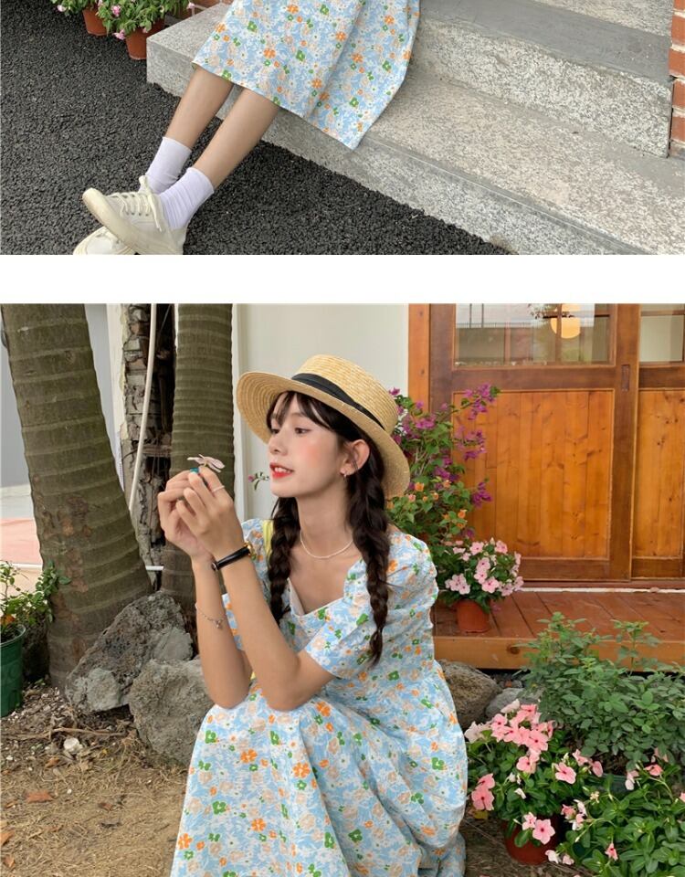 フローラルスカート スリーブドレス サマーバック 夏物 花柄 萌量不足34668689523
