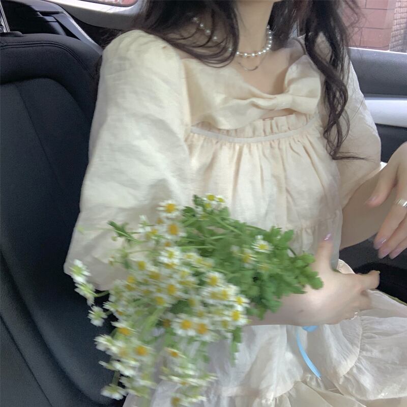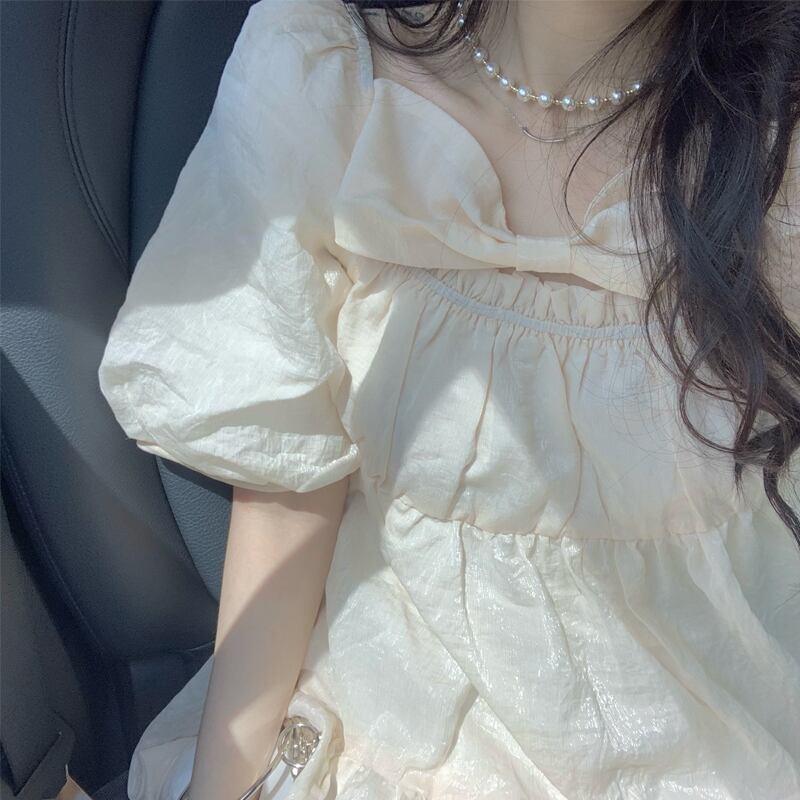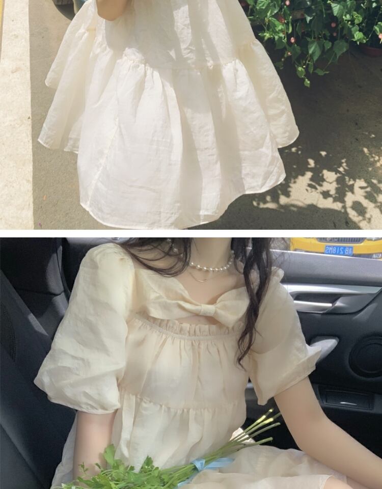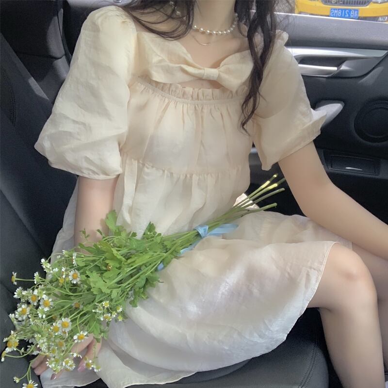 ドレス リボンスリーブスタイルサマースカート 大人ガーリー スウィート キュート カジュアル 夏物 スクウェア 萌量不足37553981112