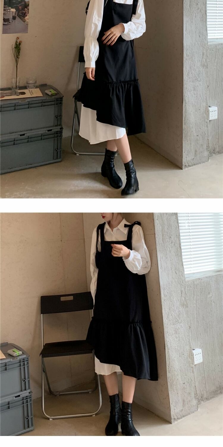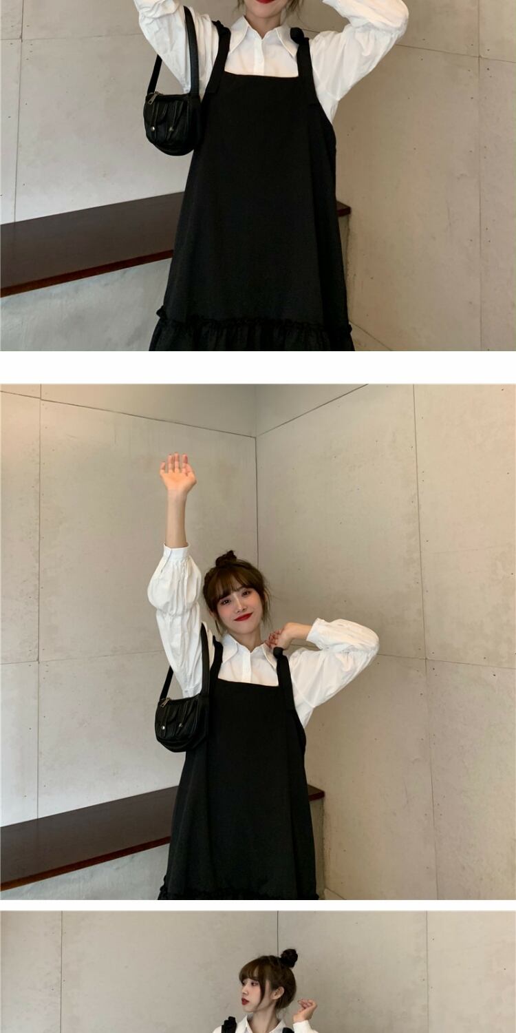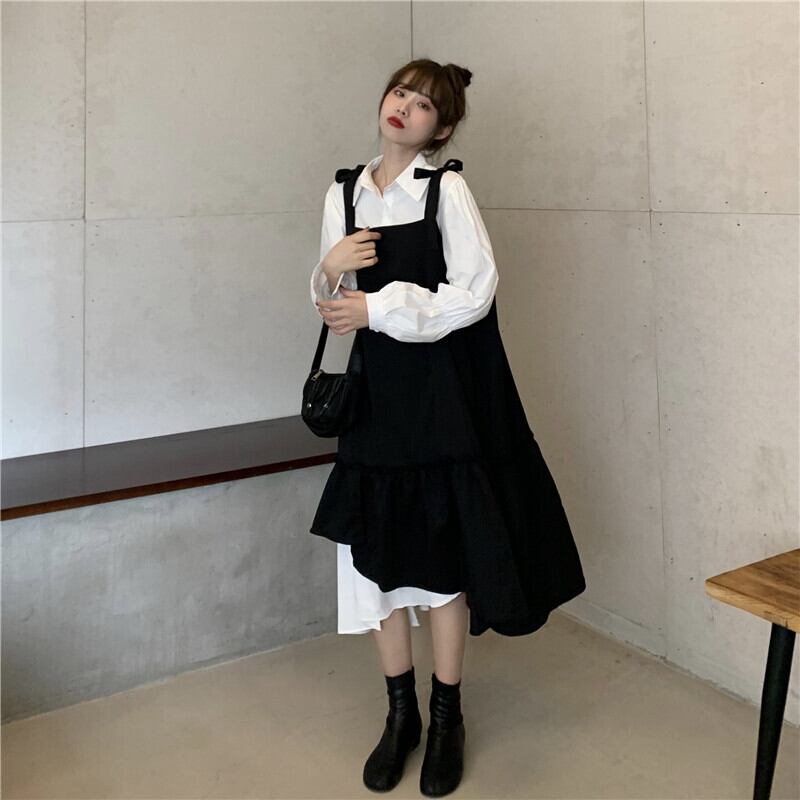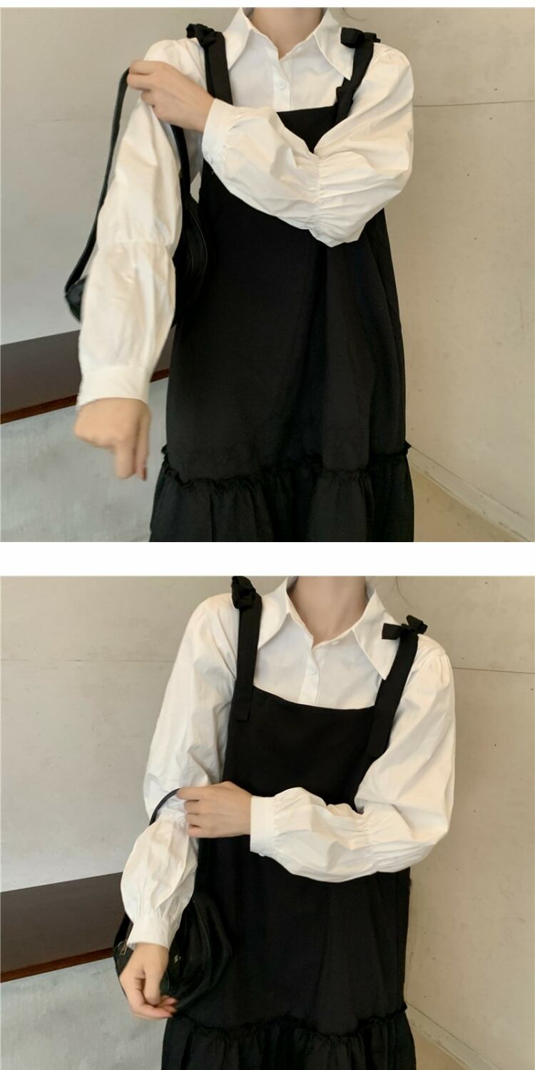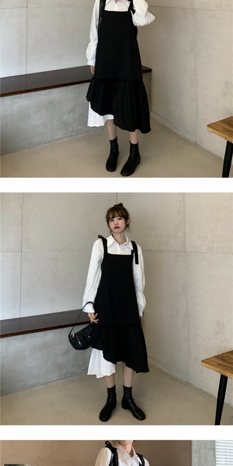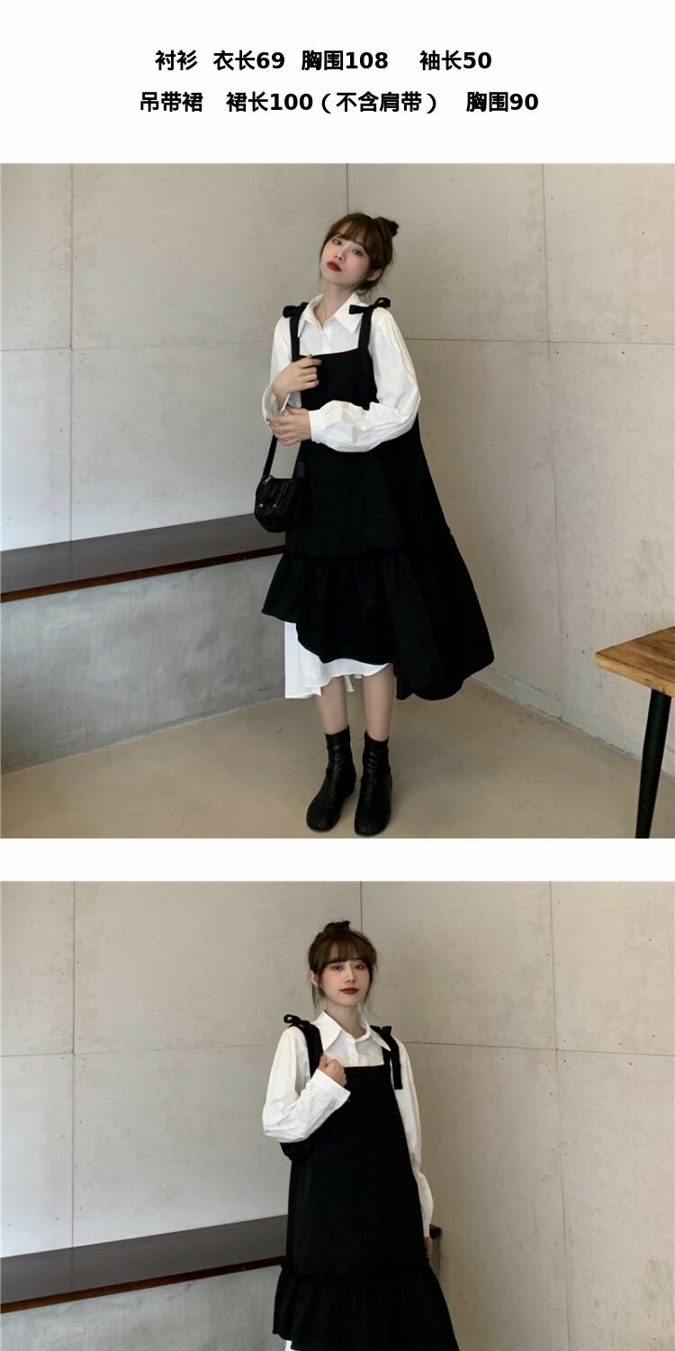色:白いシャツ(シングルピース),スプライシングサスペンダースカート(ワンピース)
