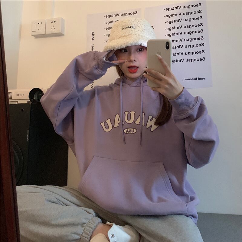 刺繍ベルベットセーター レディースオータムウィンターフードルーズブラウス 秋物 冬物 萌量不足57048377327