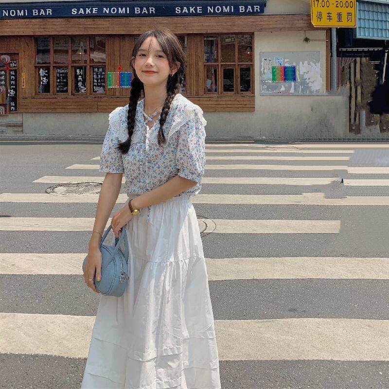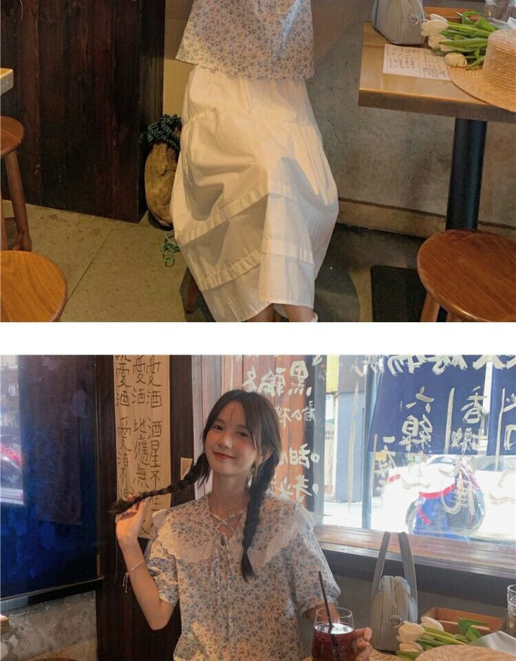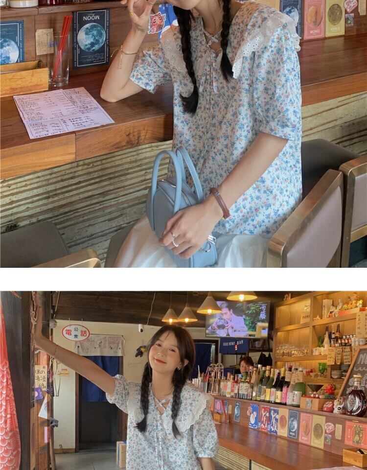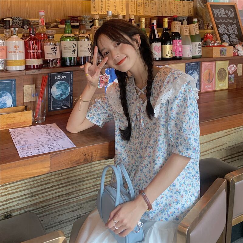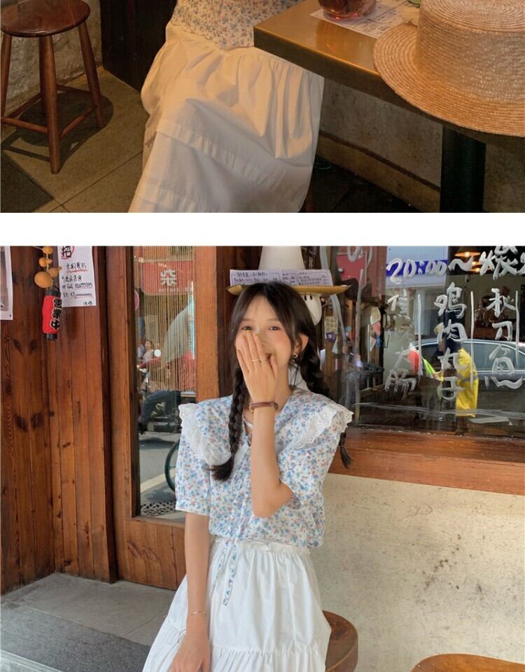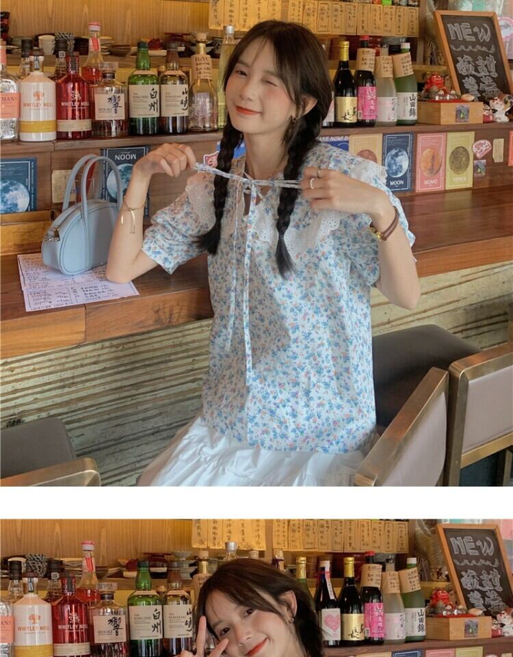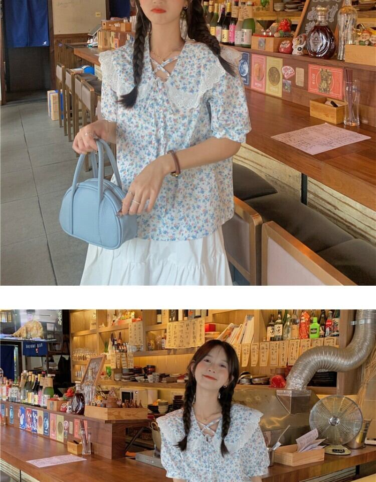 スタイルレースフローラルシャツ サマーブラウス 夏物 花柄 レースアップ 萌量不足24505782826