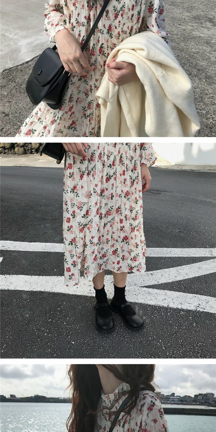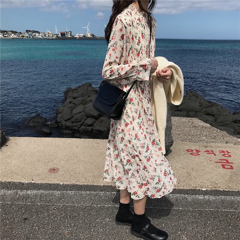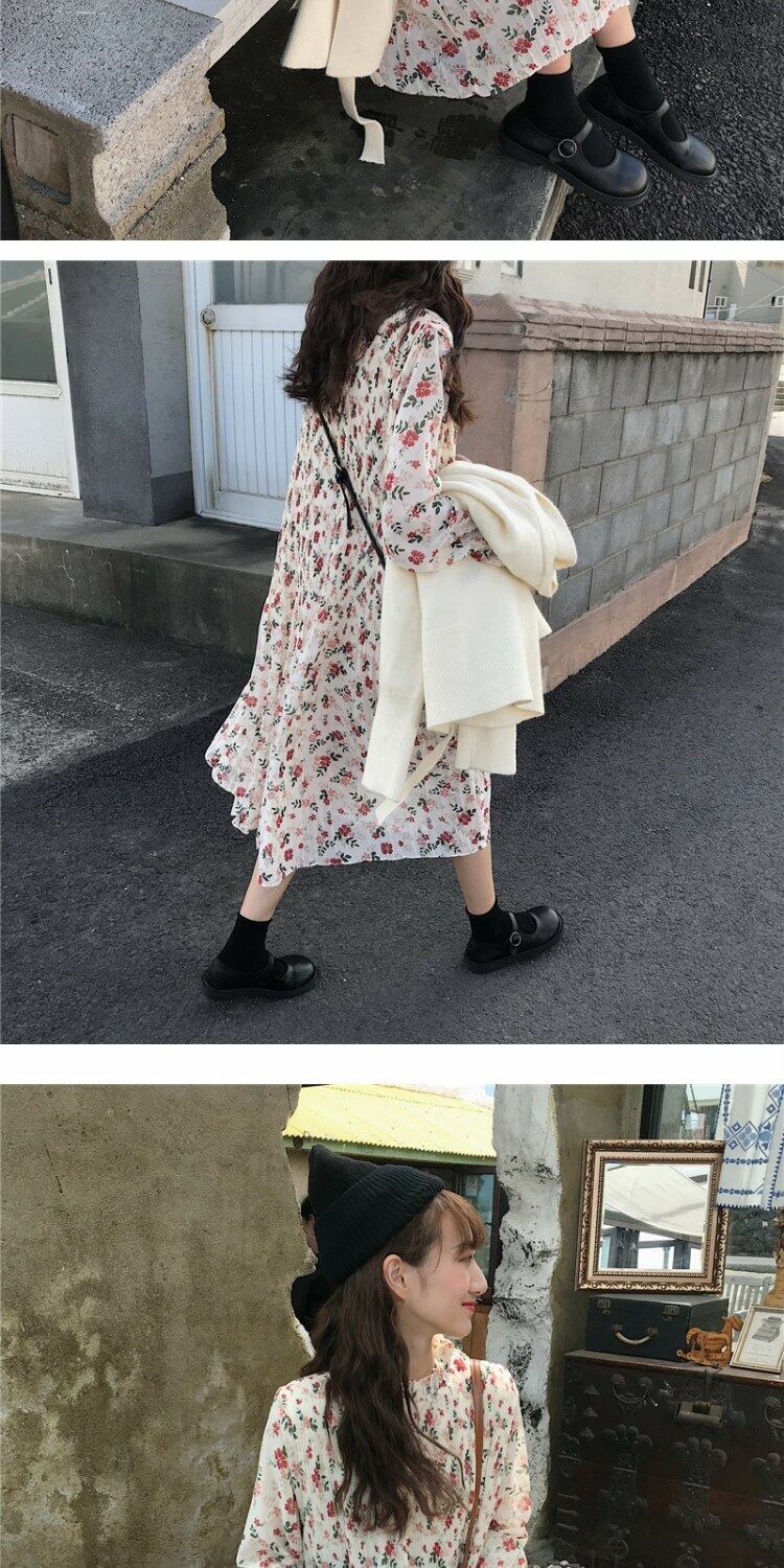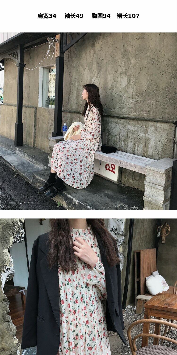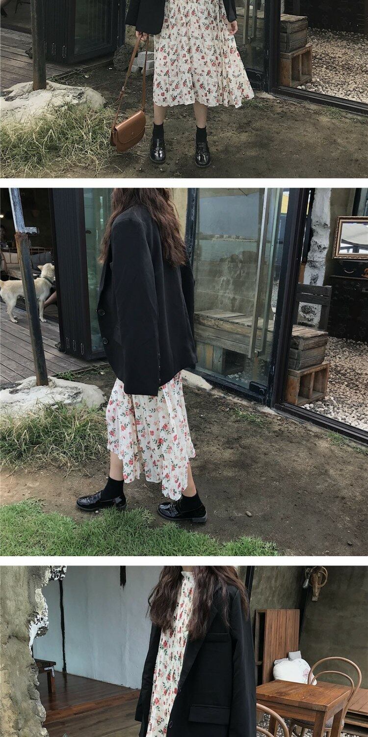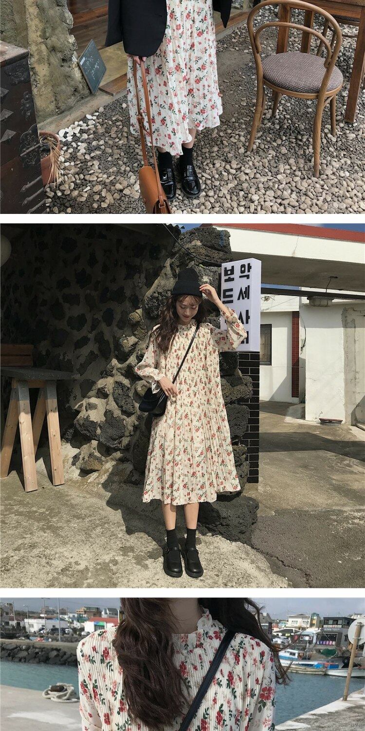 スタイルスカート オータムルーズプリーツフローラルドレス 秋物 花柄 萌量不足56695459319