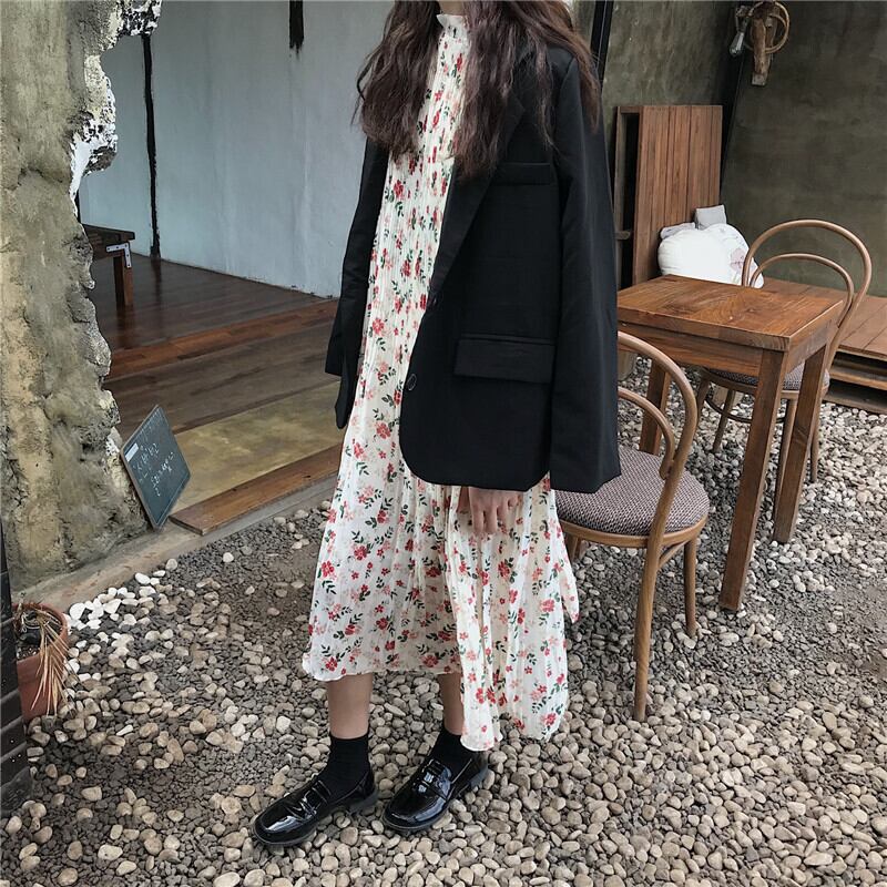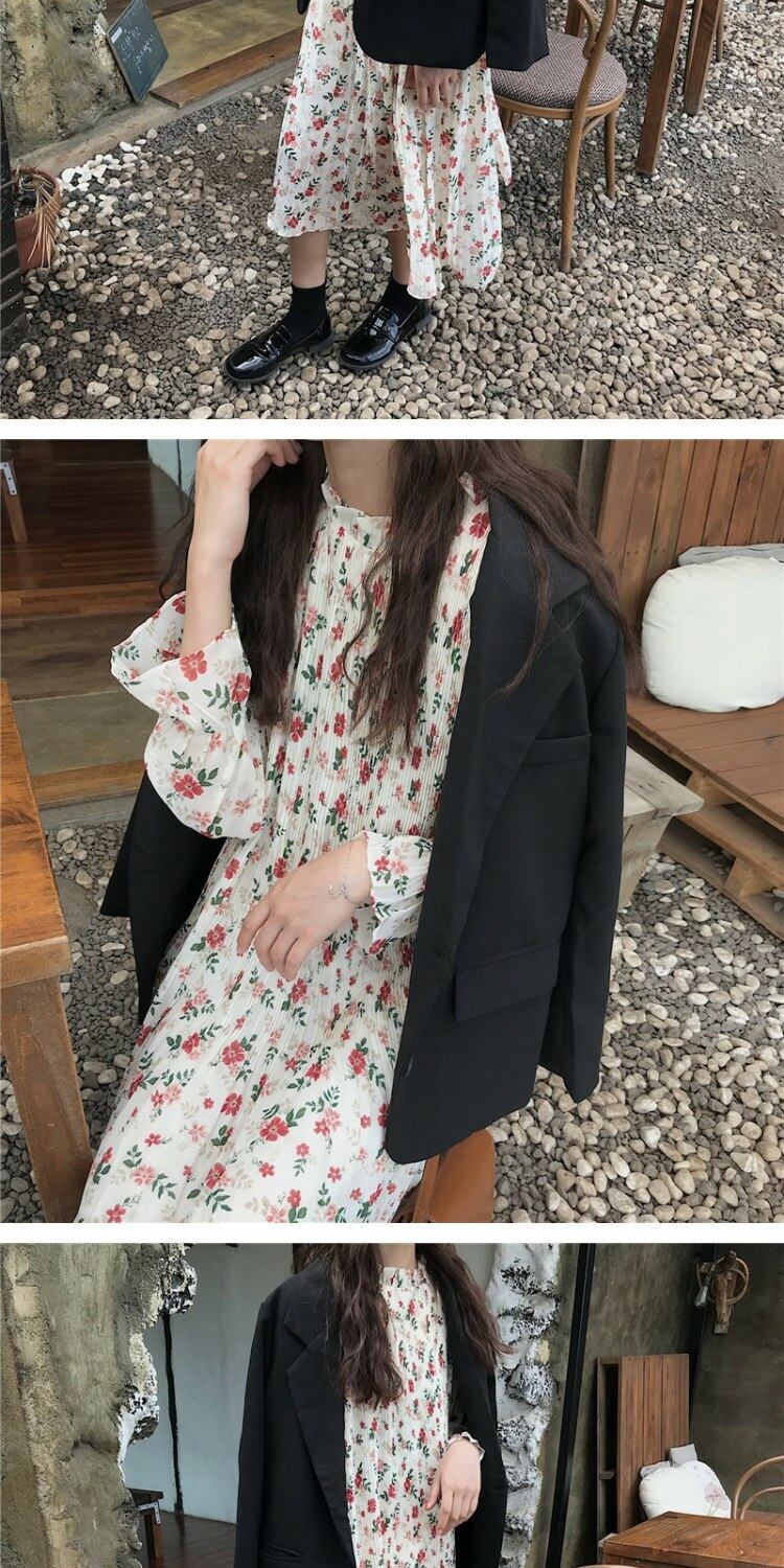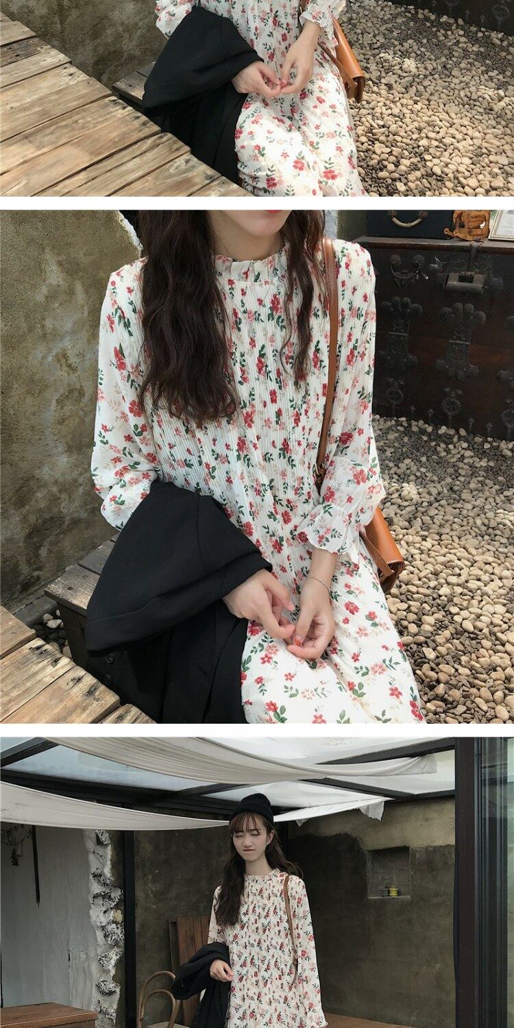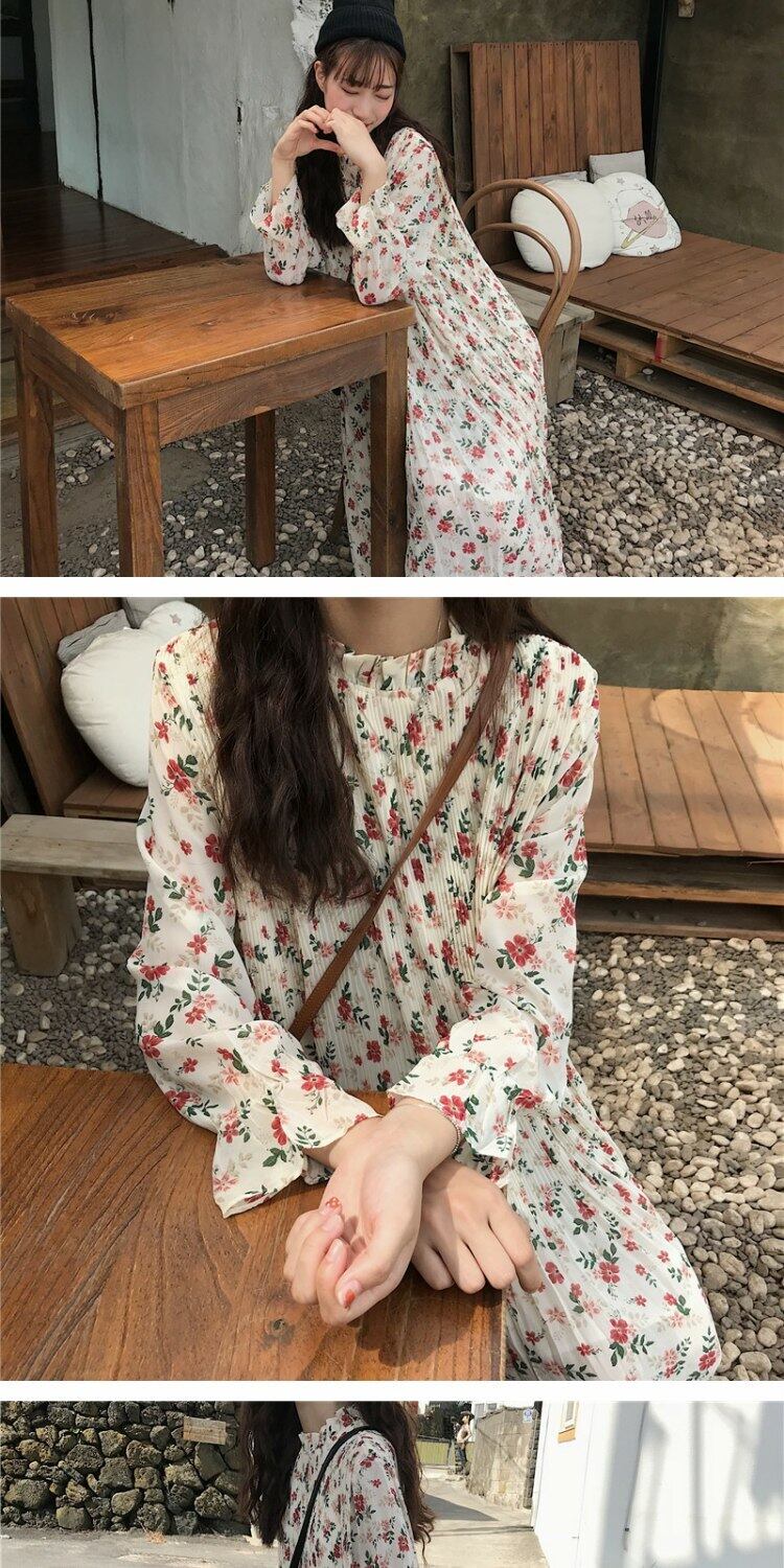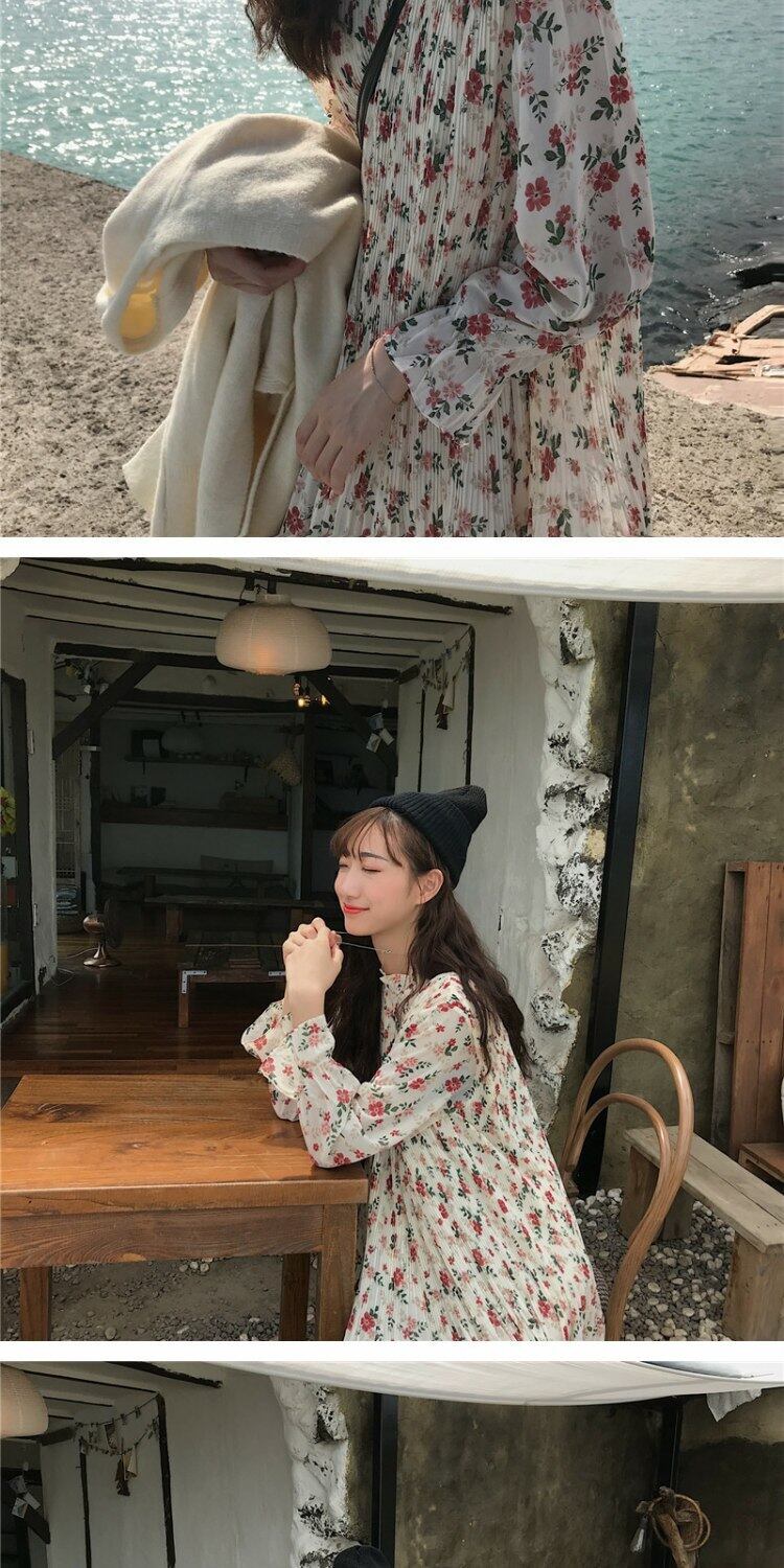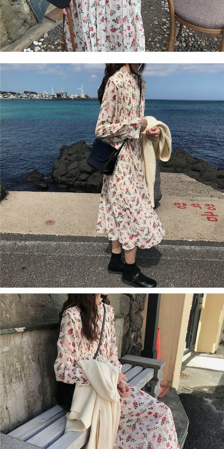 スタイルスカート オータムルーズプリーツフローラルドレス 秋物 花柄 萌量不足56695459319