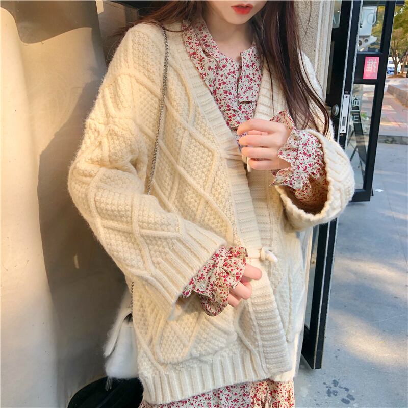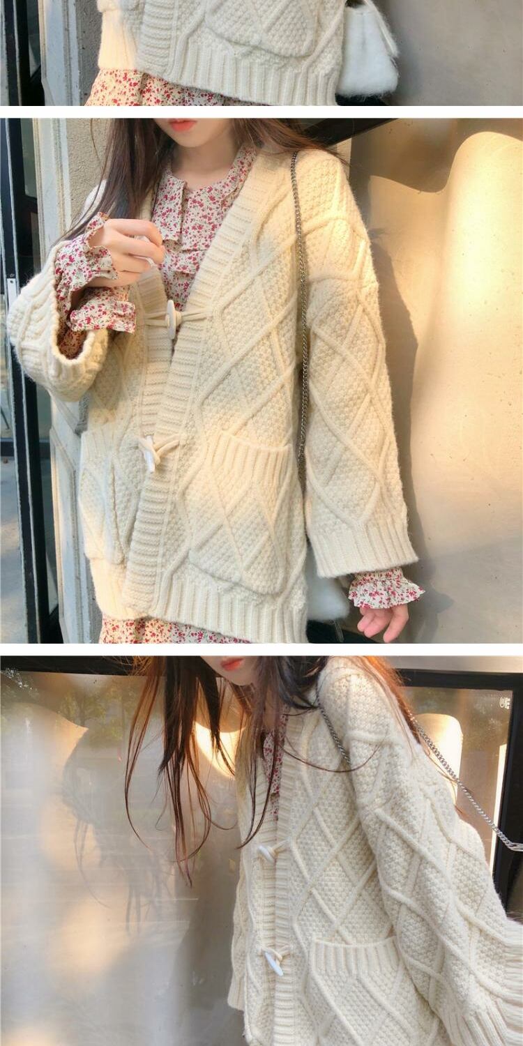 ウィンタースタンダードスタイルバックルセーター ニットコート トップス レトロ 冬物 萌量不足32422520164