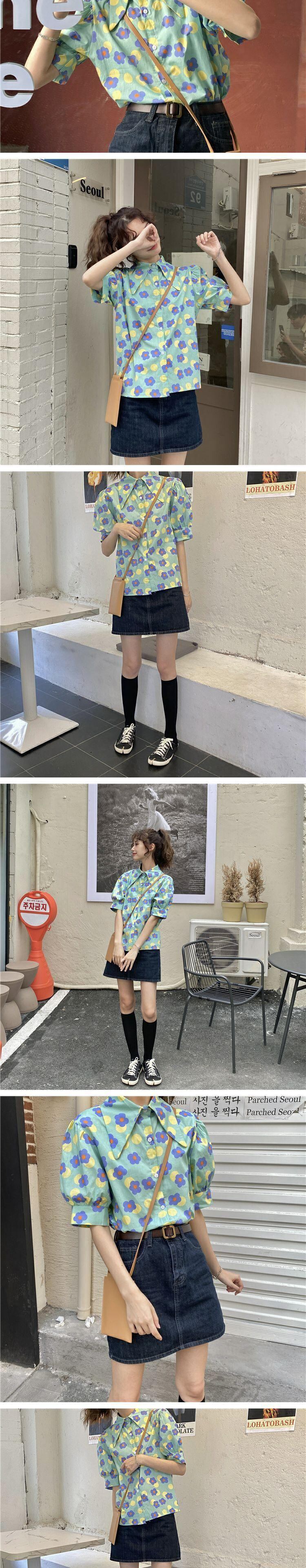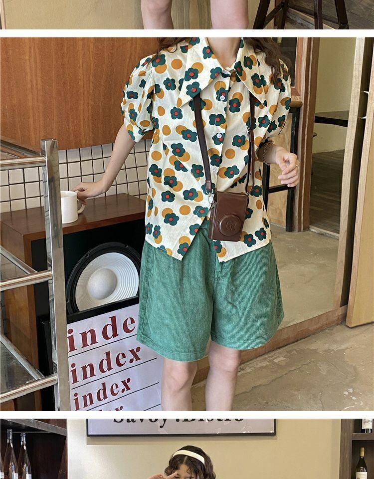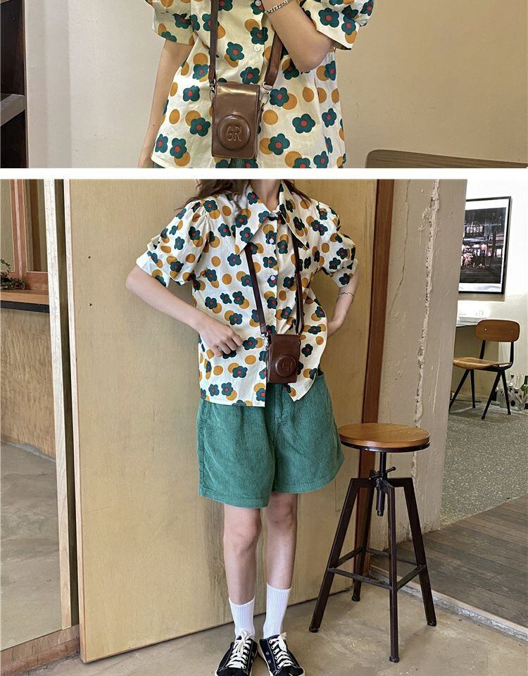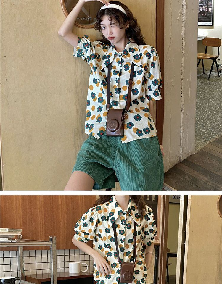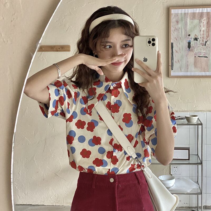 トップス サマーカラースタンダードFlowerデザイン プリント柄シャツ レトロ 夏物 フラワーデザイン 萌量不足19085824280